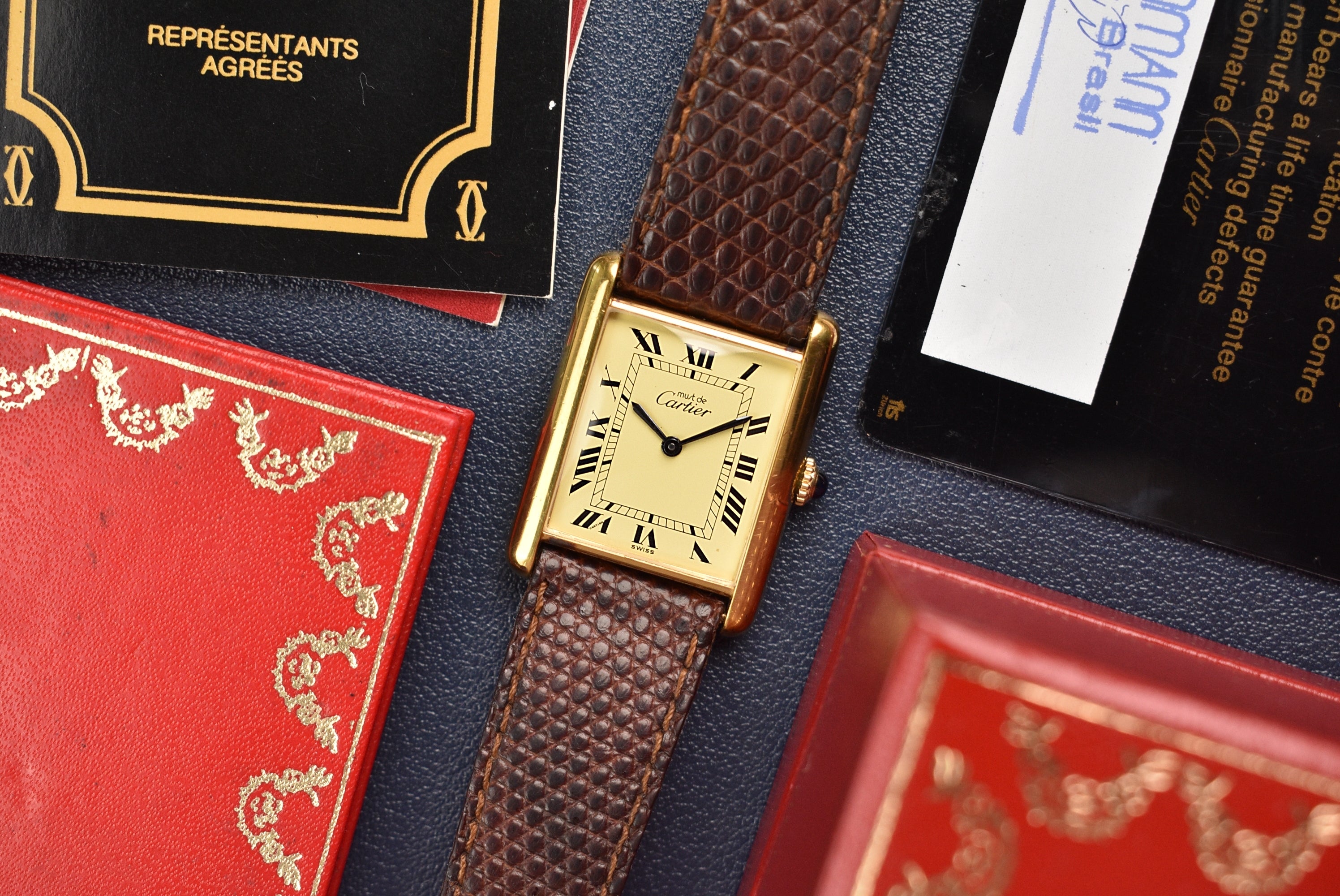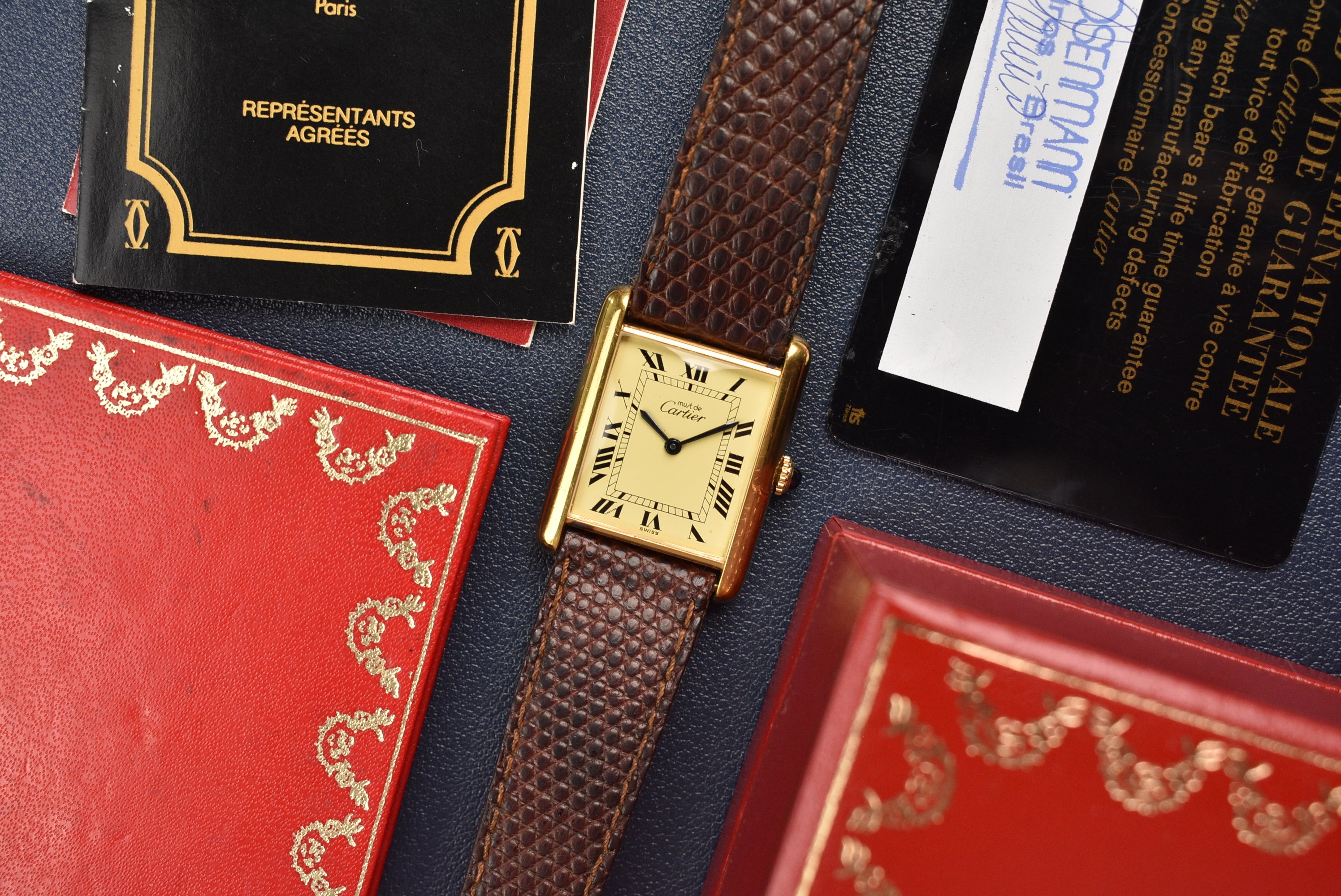 A timeless staple, the Cartier Tank. A simple, time-only, watch that could be worn anywhere and with anything. A design that has stayed true to what it started out to be. The Cartier tank deserves to be in every watch collection. Its size might be smaller than most watches but that doesn't mean it doesn't look great on the wrist. The best part is, this affordable Must De version is a complete set. This specific example has a rare hallmark on the caseback text all the way on the bottom. Stating this watch was specifically imported into Manaus, Brazil.