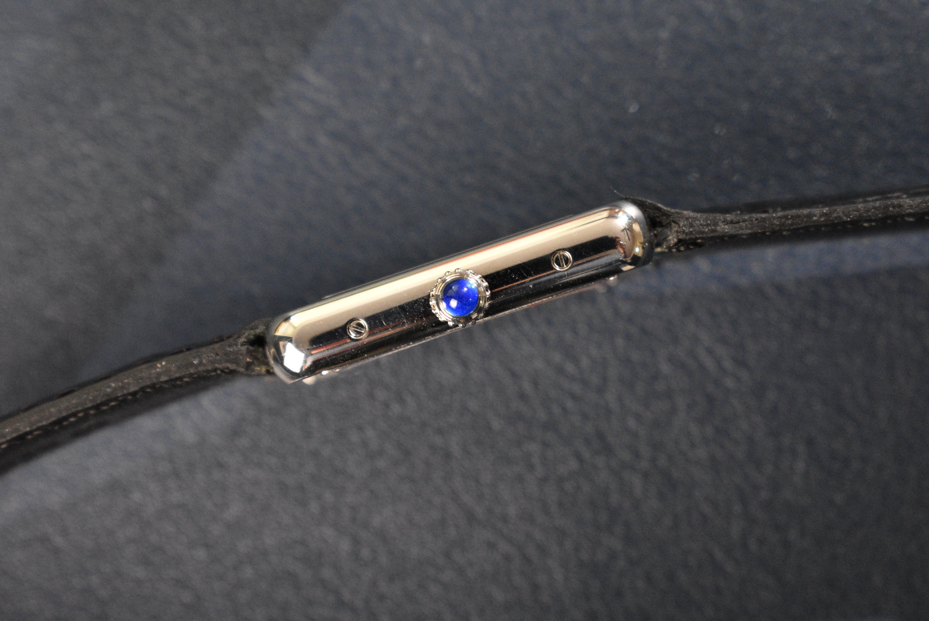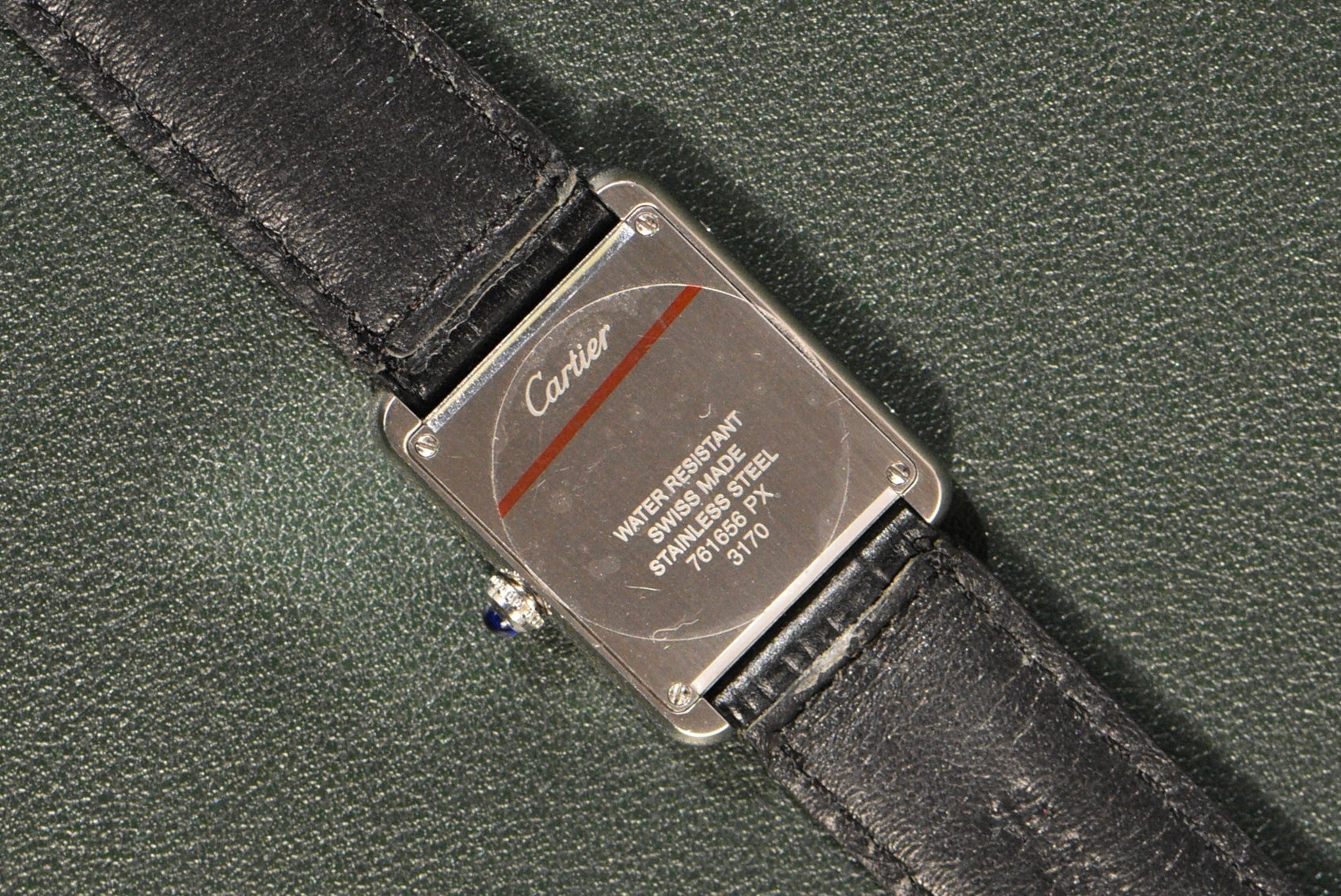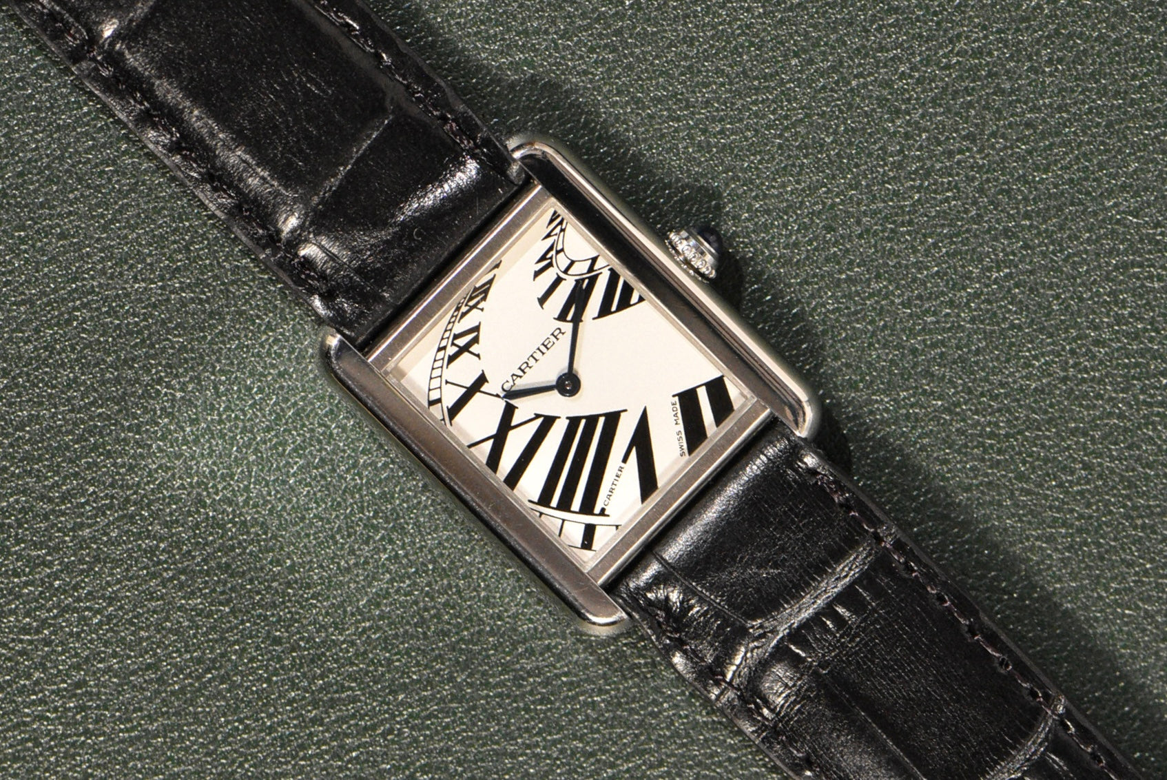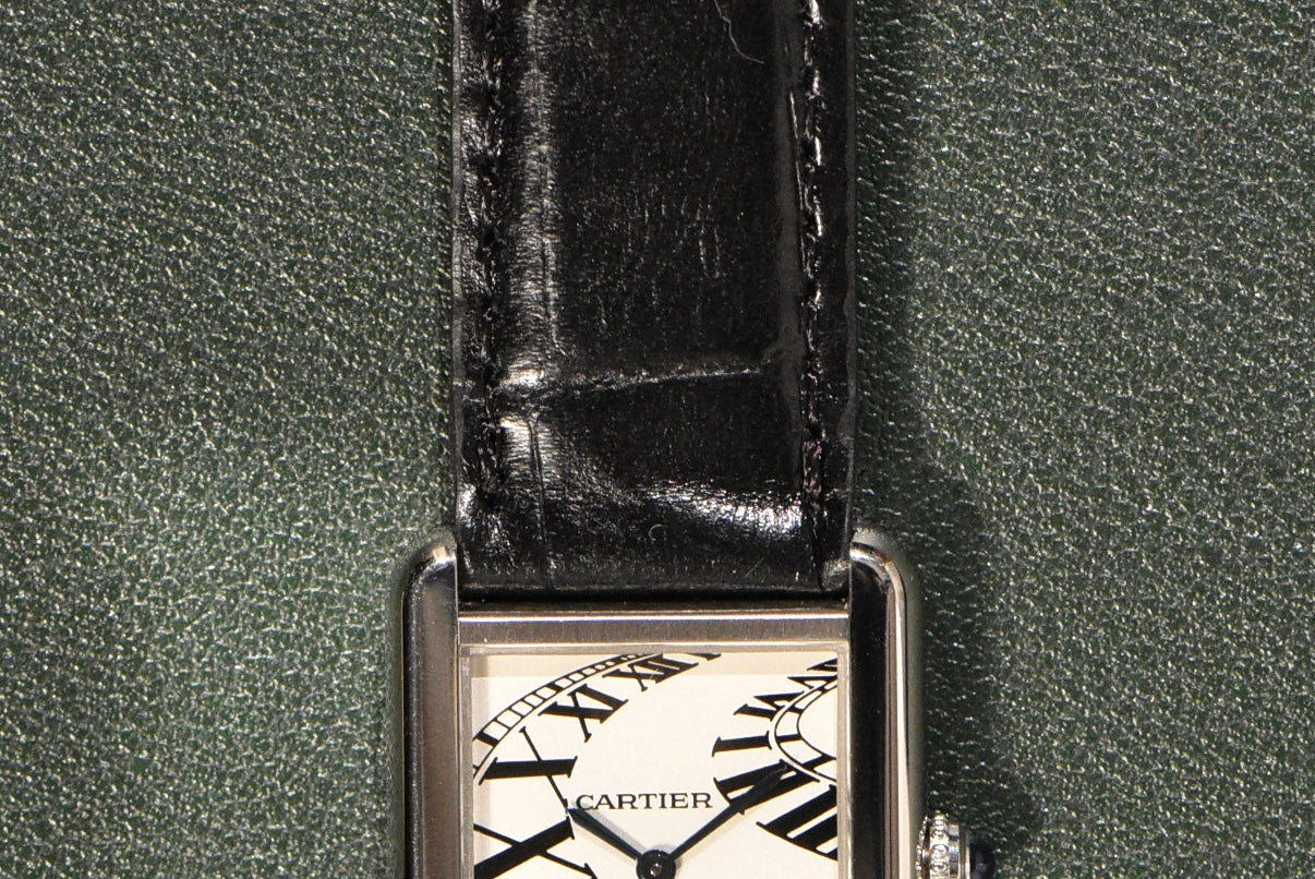 This rare iteration of the Tank Solo features a "Piano" dial that wraps around the dial from 6 to 12. The watch is in very good condition throughout and even has the original case back sticker still intact. The watch comes on a non-Cartier strap and buckle.