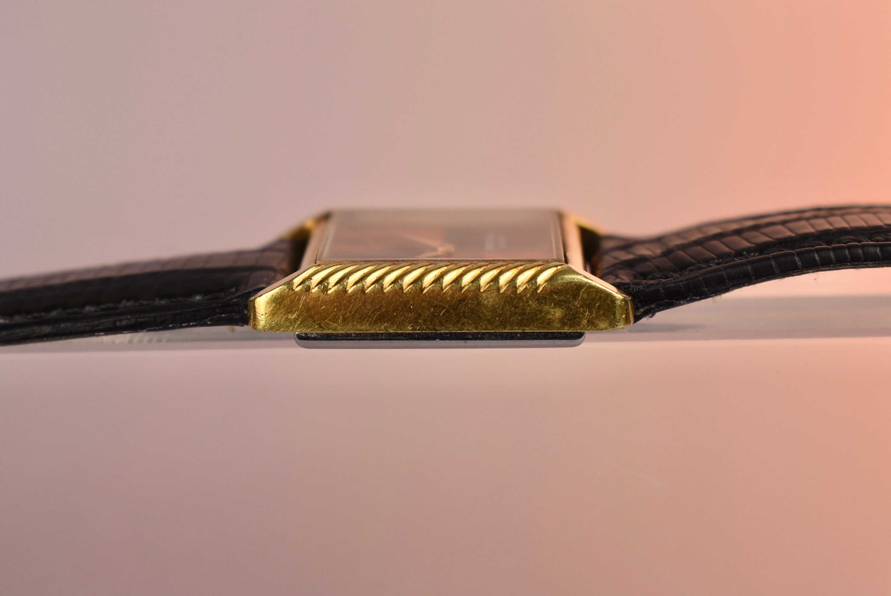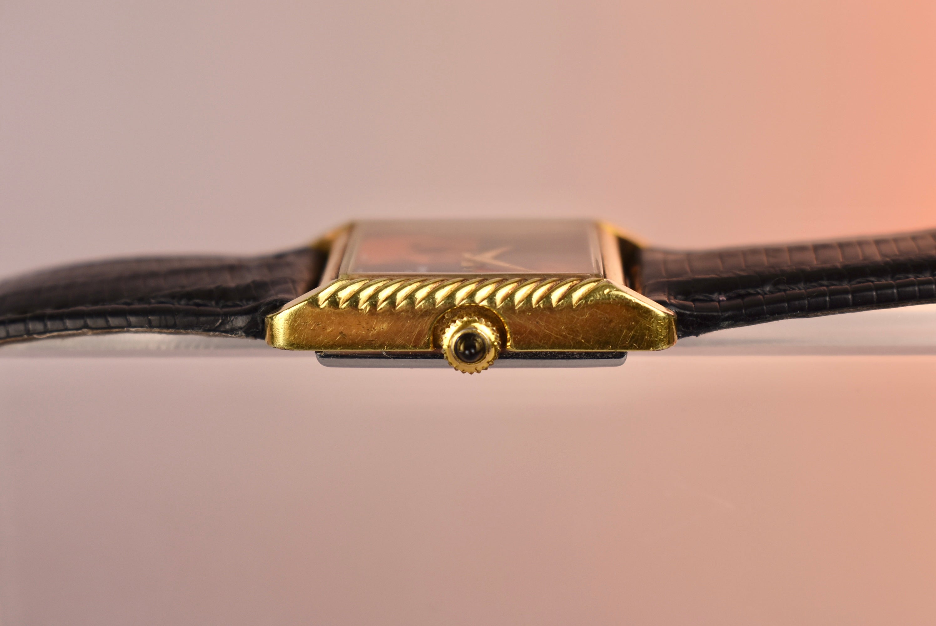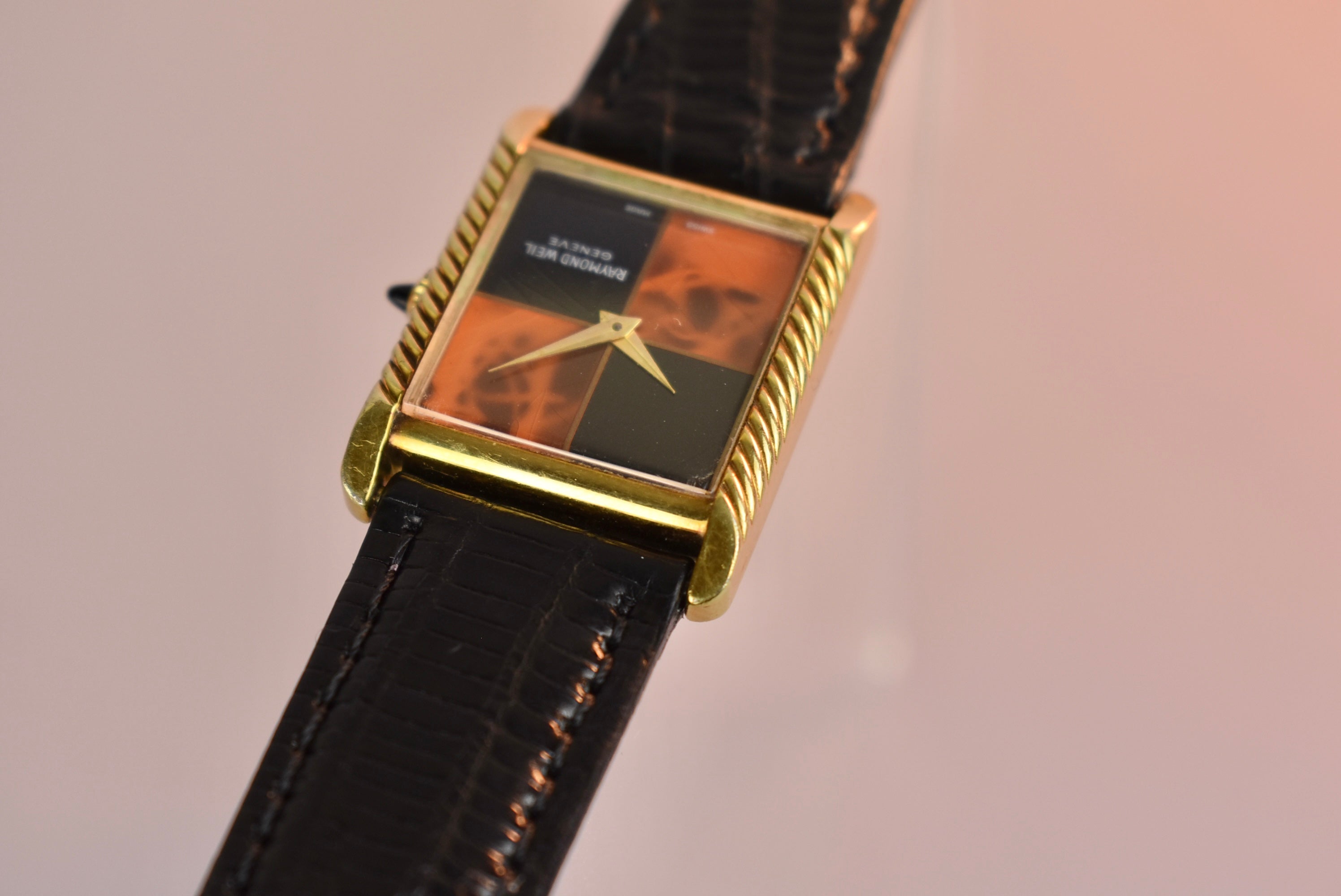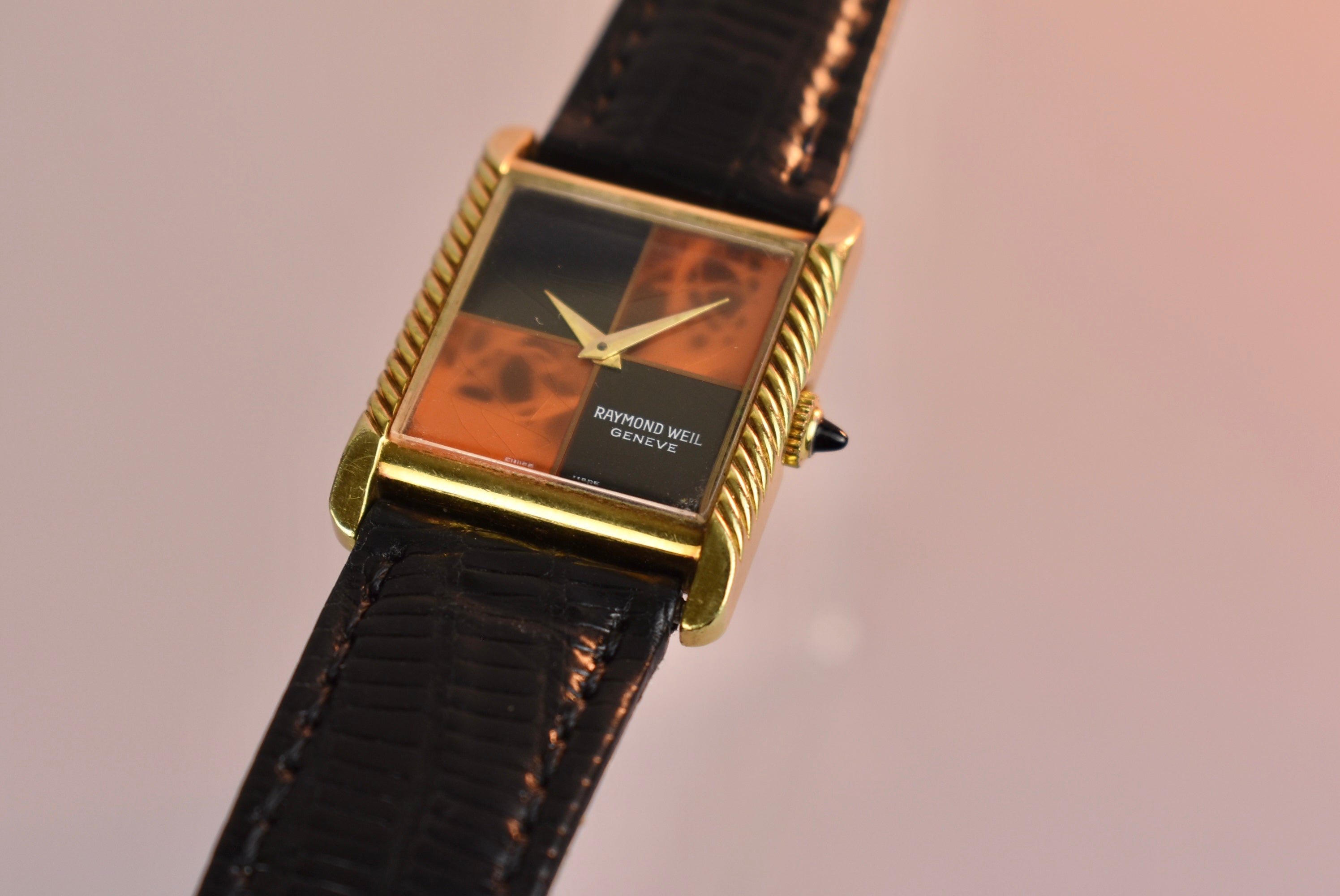 A very rare piece by Raymond Weil. A stunning dial with a flame like pattern in each corner. A Cartier Tank is a watch many of us love but sometimes it’s hard spending that much on a watch. This becomes one of the coolest alternatives that’ll scratch that itch and is even better then some Cartier tanks that are triple the price. Featuring a stunning spiral case and rare dial with its spider patina, you can’t beat it!