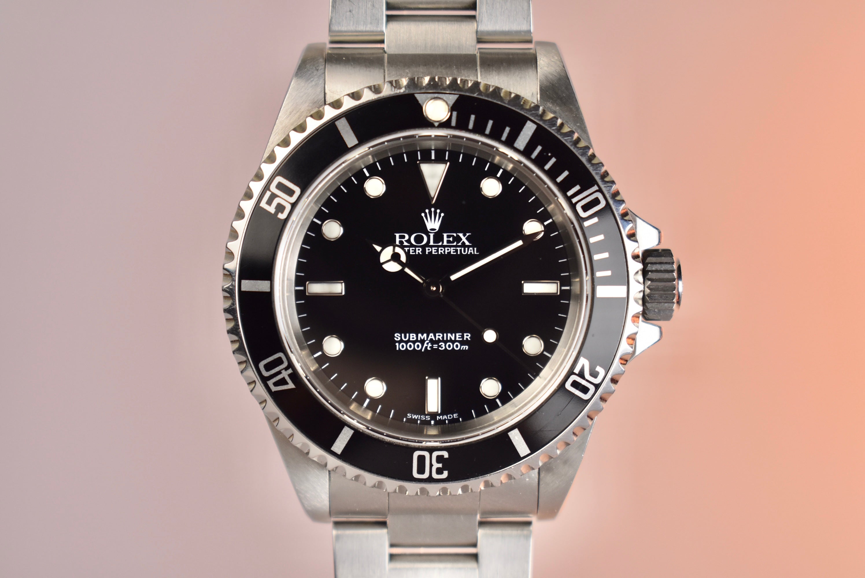 The original Rolex Submariner came with no date, so to get the true heritage, the 14060 is the superior choice over the date. With a perfect case size, you can understand why the Submariner has gained a cult-like following. The one listed right now has a super crisp and unpolished case in almost perfect condition.