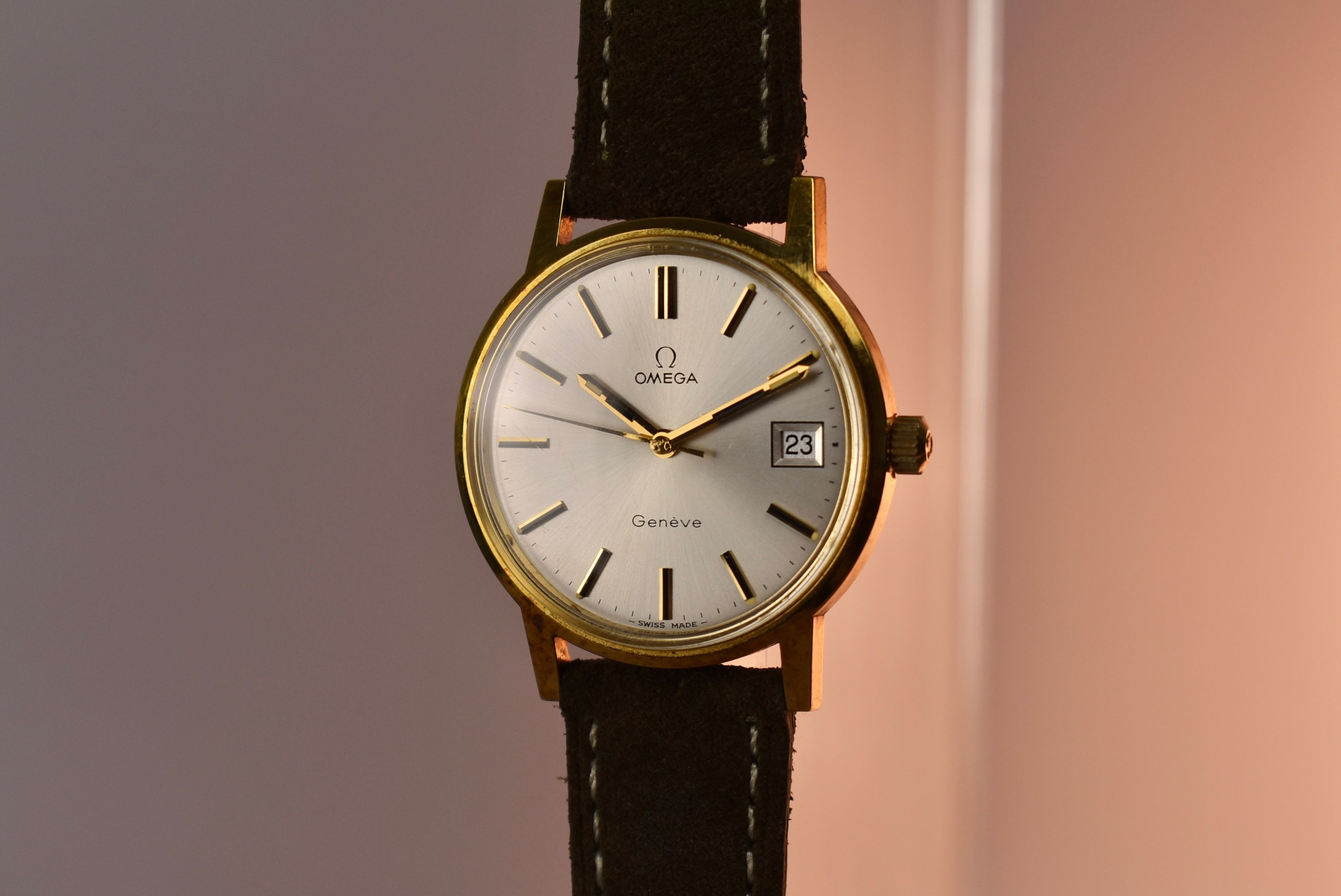 Omega will always be on of the top vintage watches you can acquire for an affordable price. Like this Genève for example, a 35mm case, automatic and a stunning sunburst dial, all for under $1000. This example also features beautiful tritium hands and the original Omega stamped crystal and buckle.