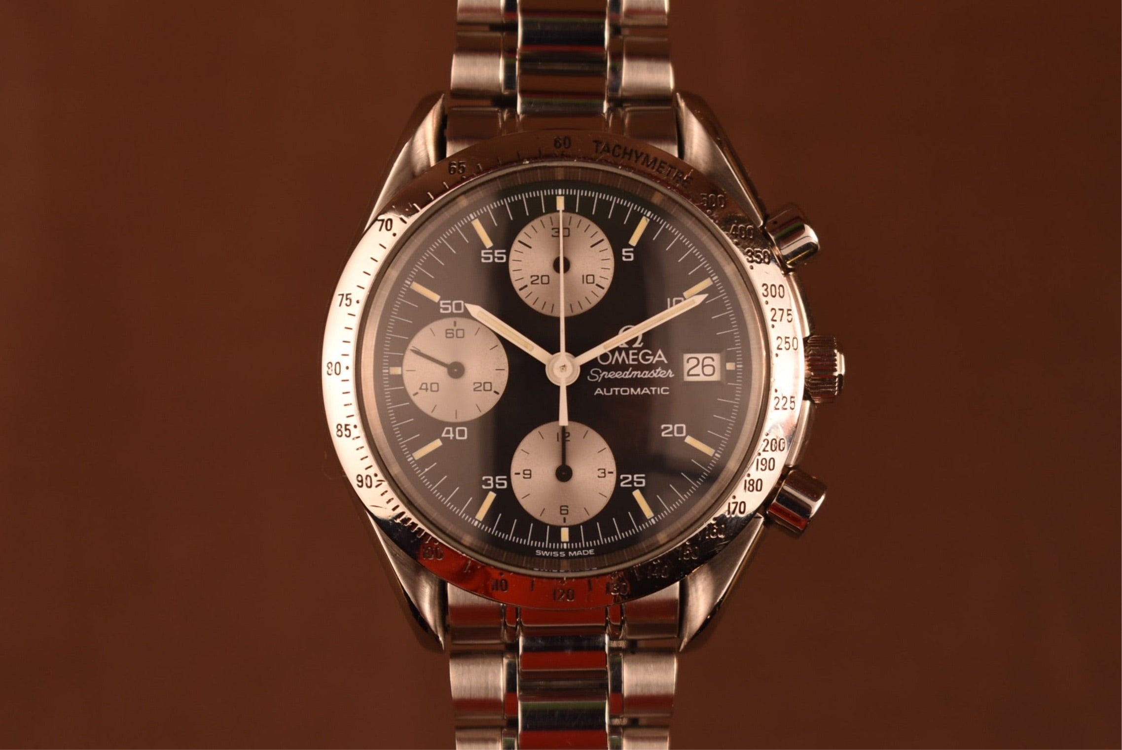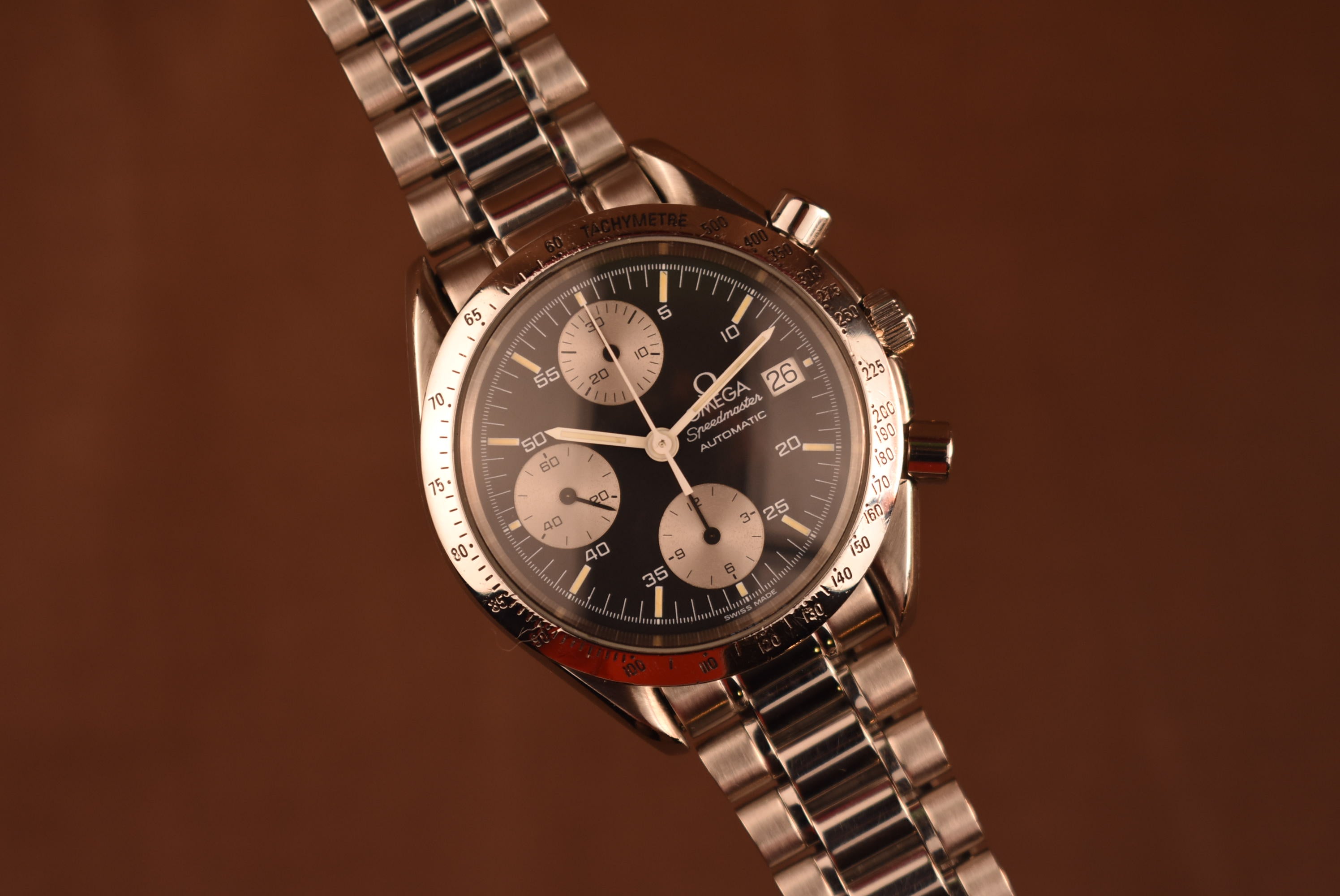 A Personal favorite of mine. The reverse panda dial speedmaster has so much charm. A limited release that was only done in Japan. This example features a clean dial with nice custard lume and a sharp case.
