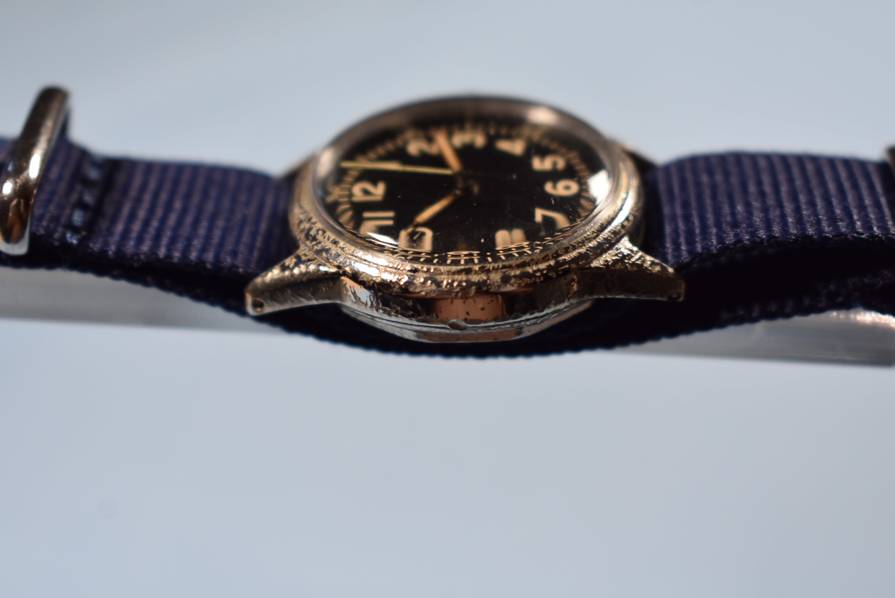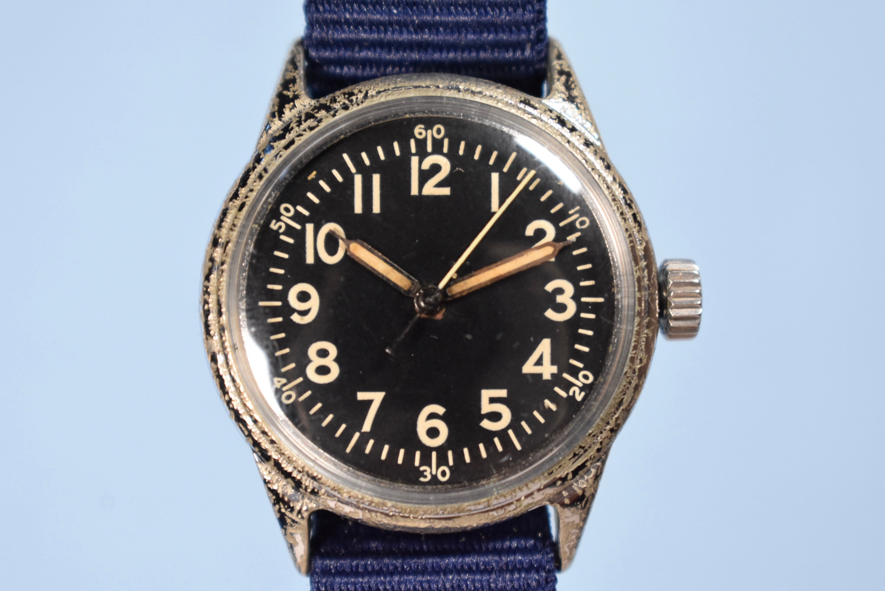 This Elgin A-11 has been regulated and oiled to run and keep great time! The watch is dated back to 1944 which puts it in the center of WW2. The watch sits on a navy blue nato strap and features a hacking movement. Please view photos for the caseback serial number and other information. A true piece of history and a great investment. These WW2 Pilots watches will only get harder to find as time goes on so pick this one up before it's too late.