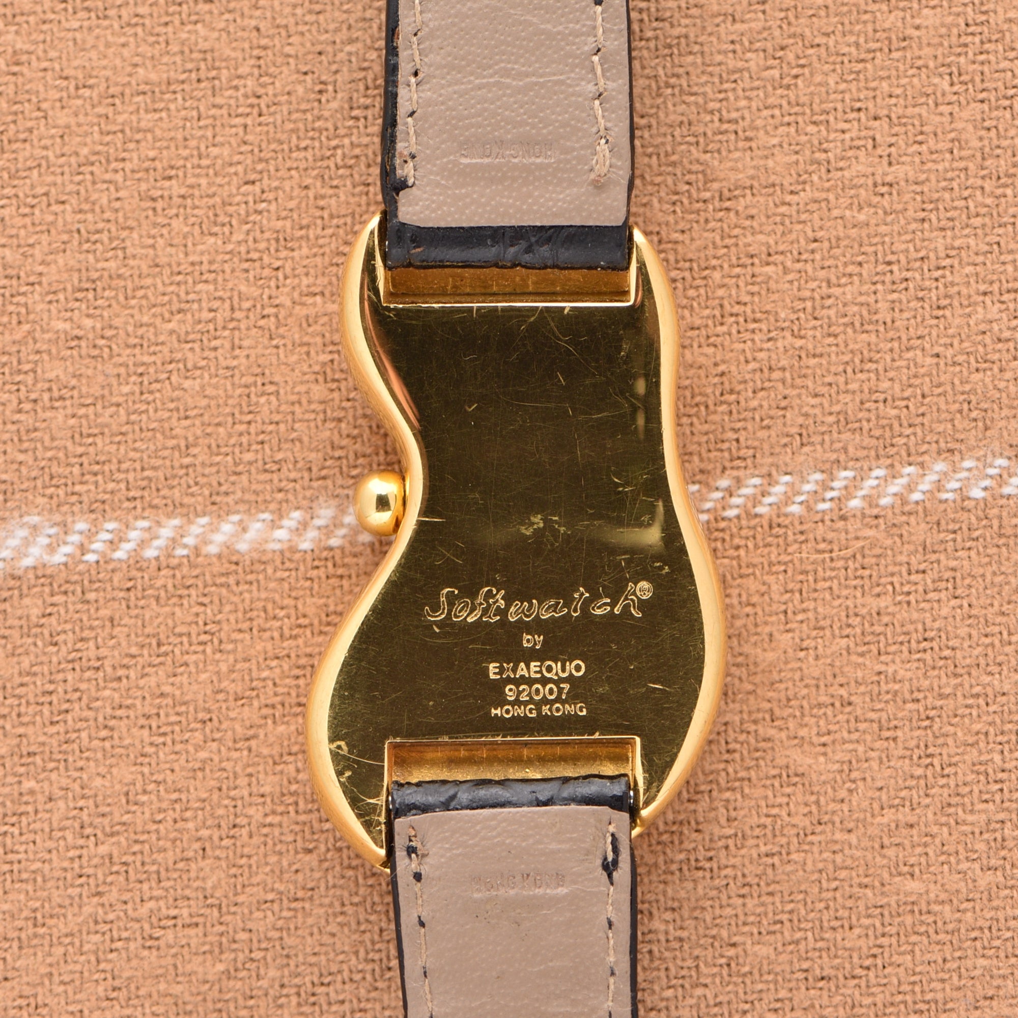 The Softwatch is known for its unique design, with a pear-shaped case and a dial that recalls the typical Cartier dial. It can be with or without writings on the dial, with the Softwatch inscription at six and the "Exaequo" at four on the index. The watch is powered by a quartz movement and comes with a paper box presenting the overall watch, warranty, and a full explanation of everything related to it.