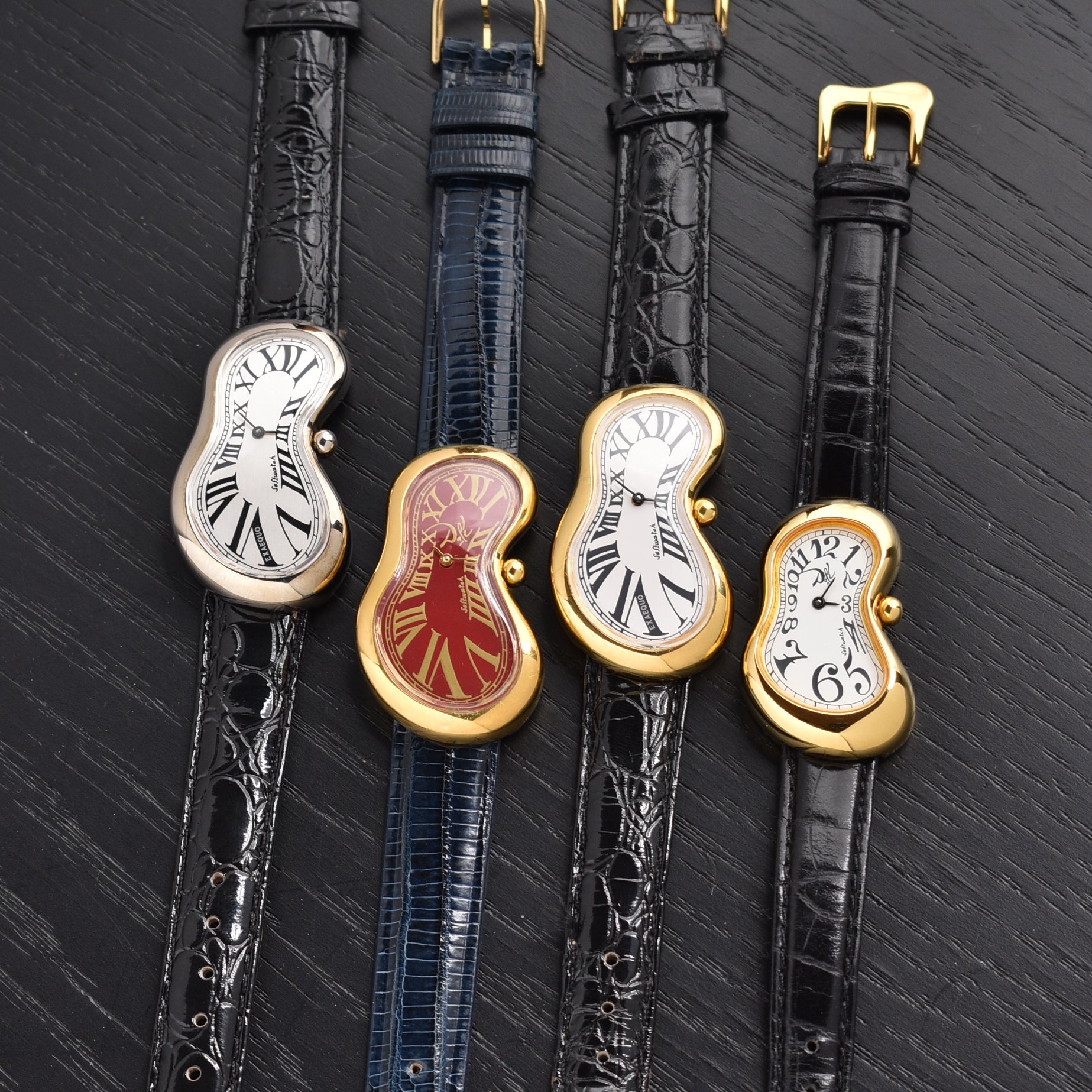 Exaequo also started a museum collection with paintings on the dial, an erotic collection with erotic paintings on the dial, and a round shape with a soft part melting on the bottom of the watch. However, in 1998, the company was closed due to using the Dalì signature on the dial without permission, leading to the closure of the Softwatch.