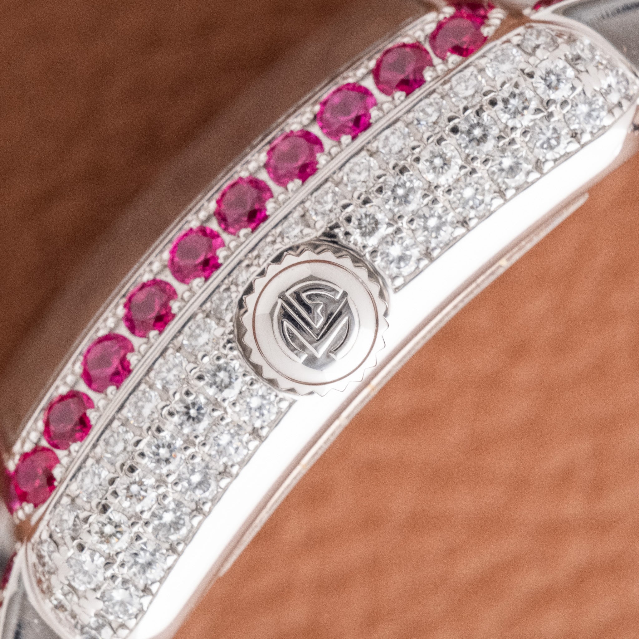 Case Material: 18k white gold with diamonds and rubies