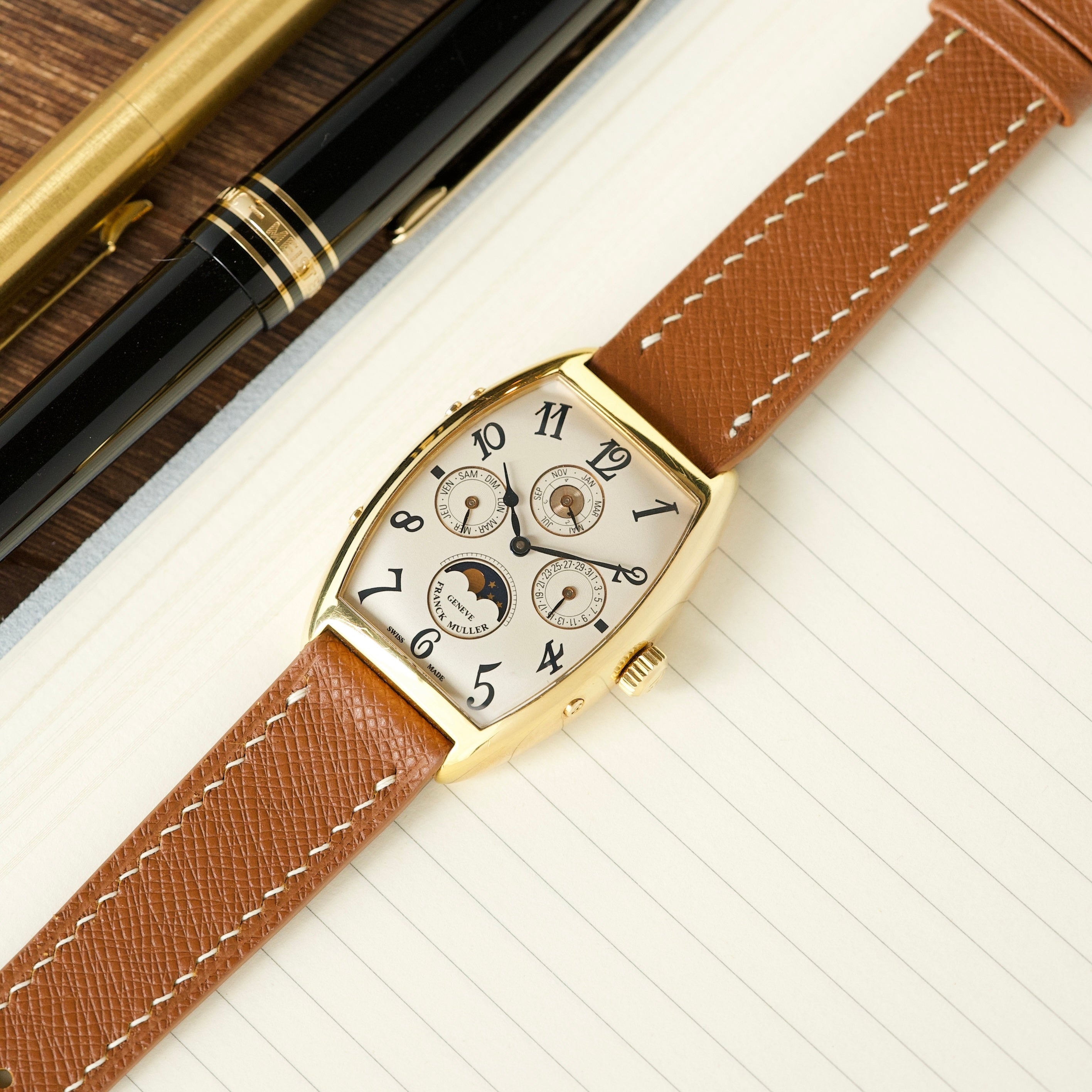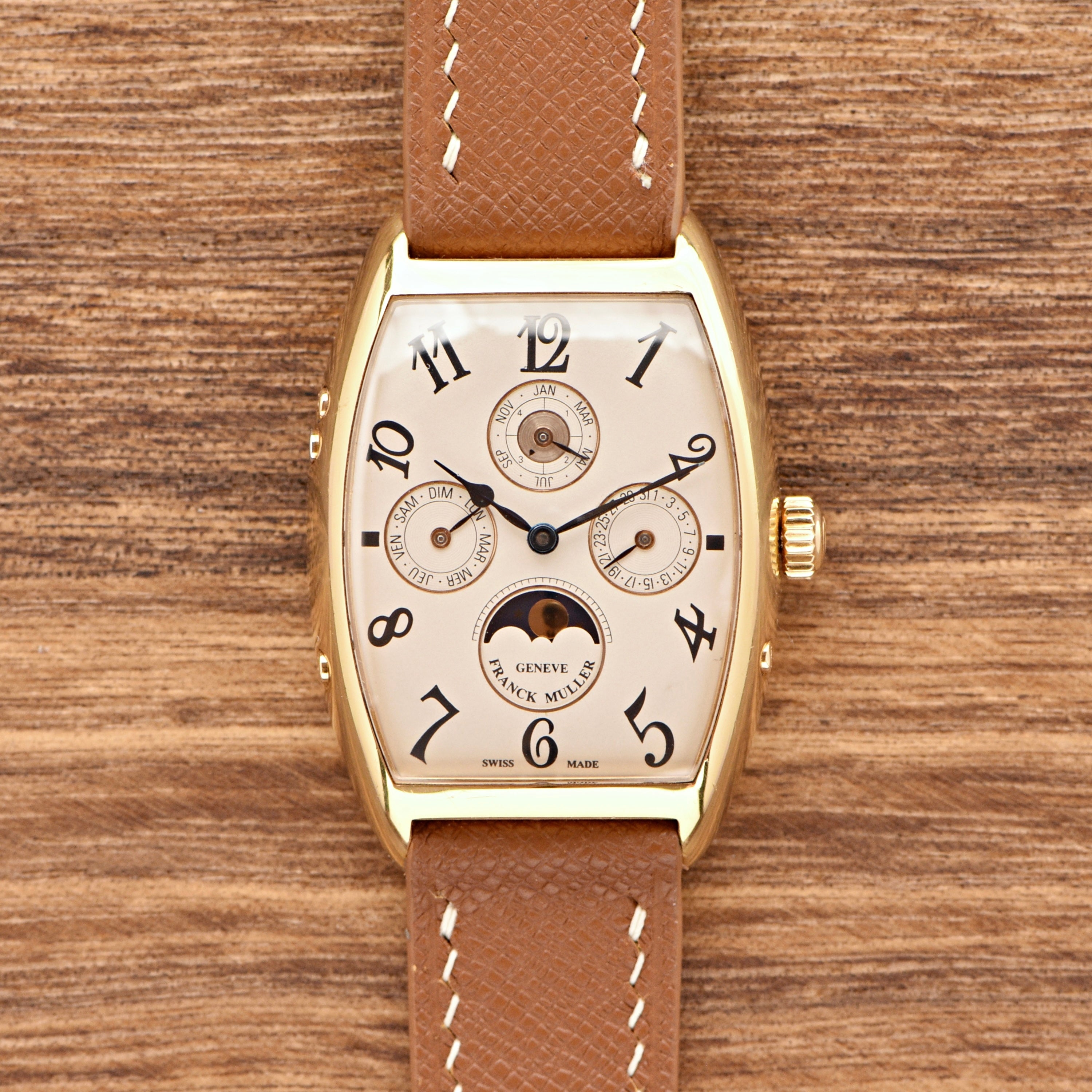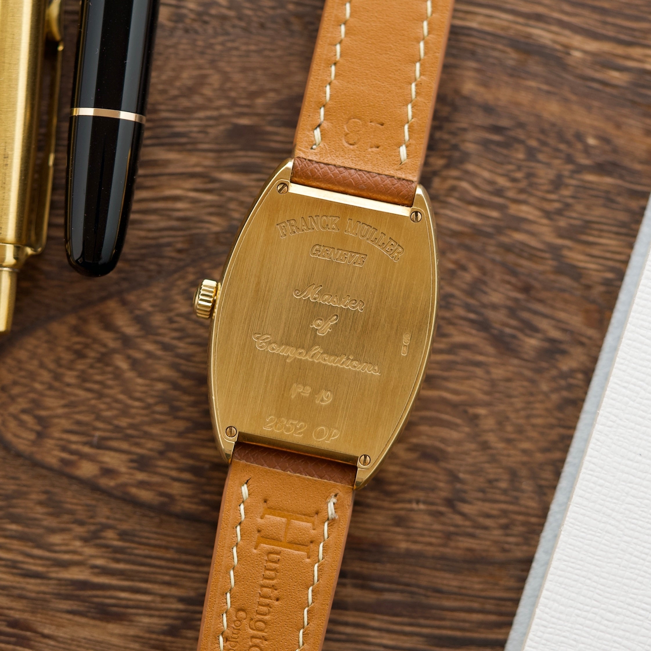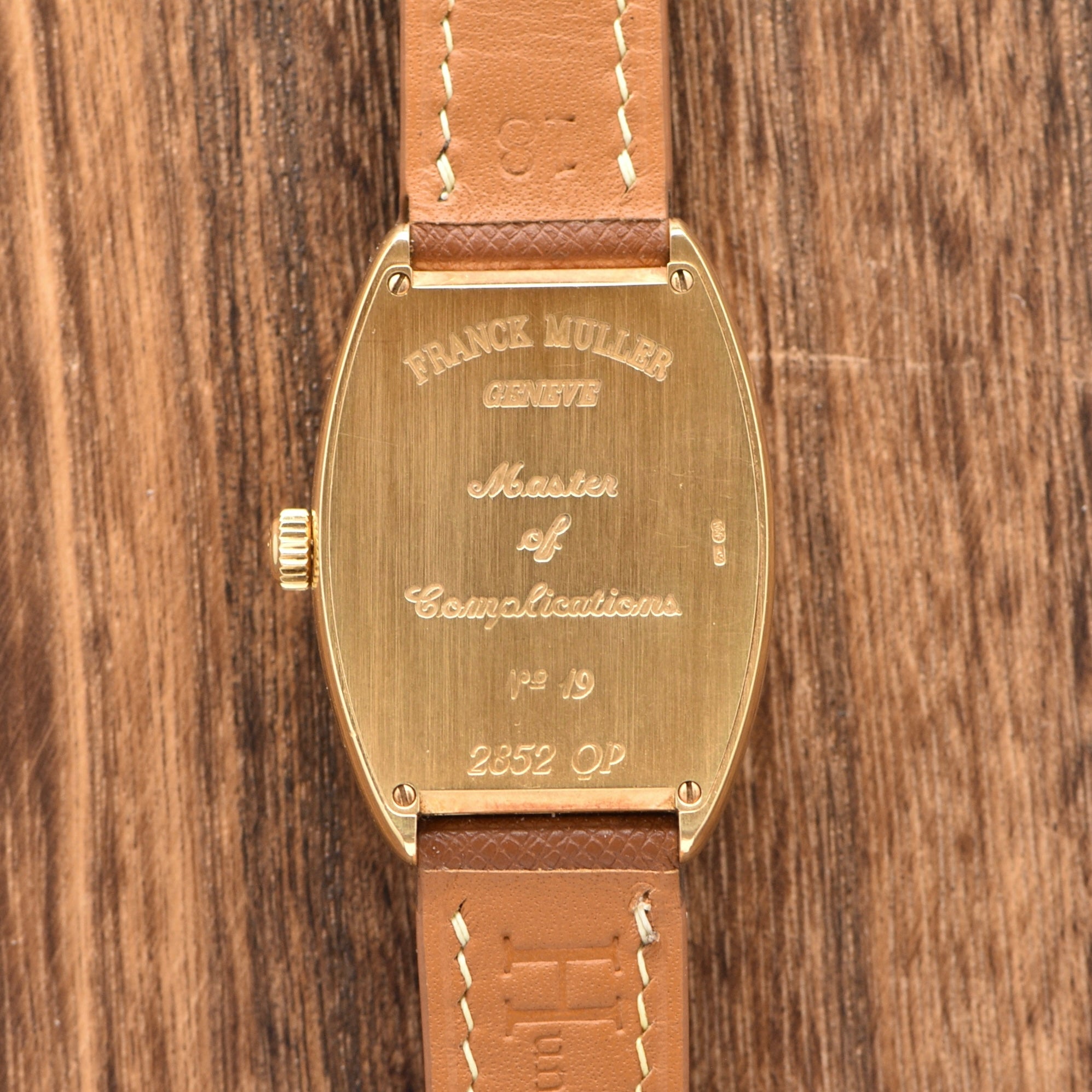 Strap & Buckle: The watch comes with the original Franck Muller solid gold buckle on our own Butterscotch Strap.