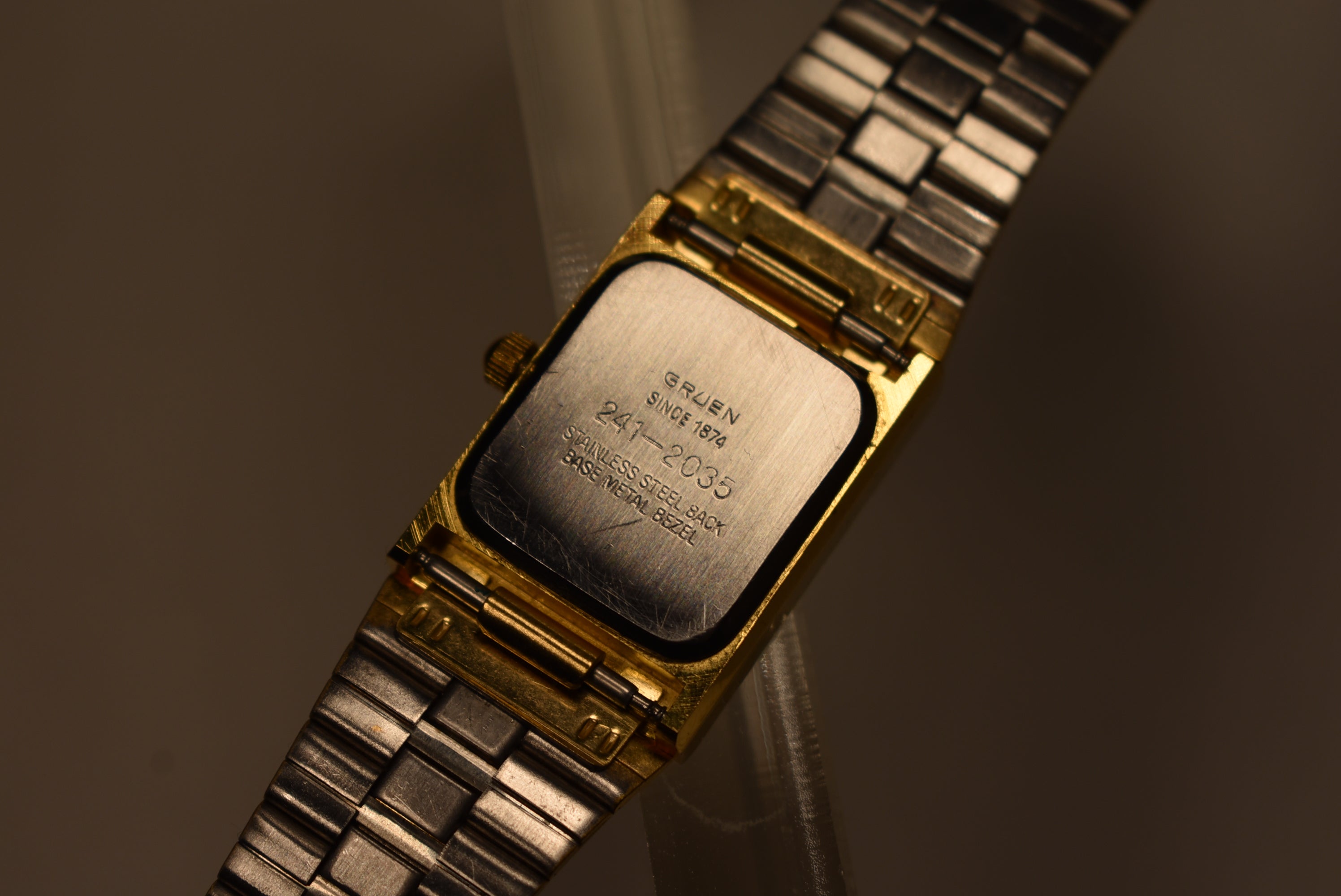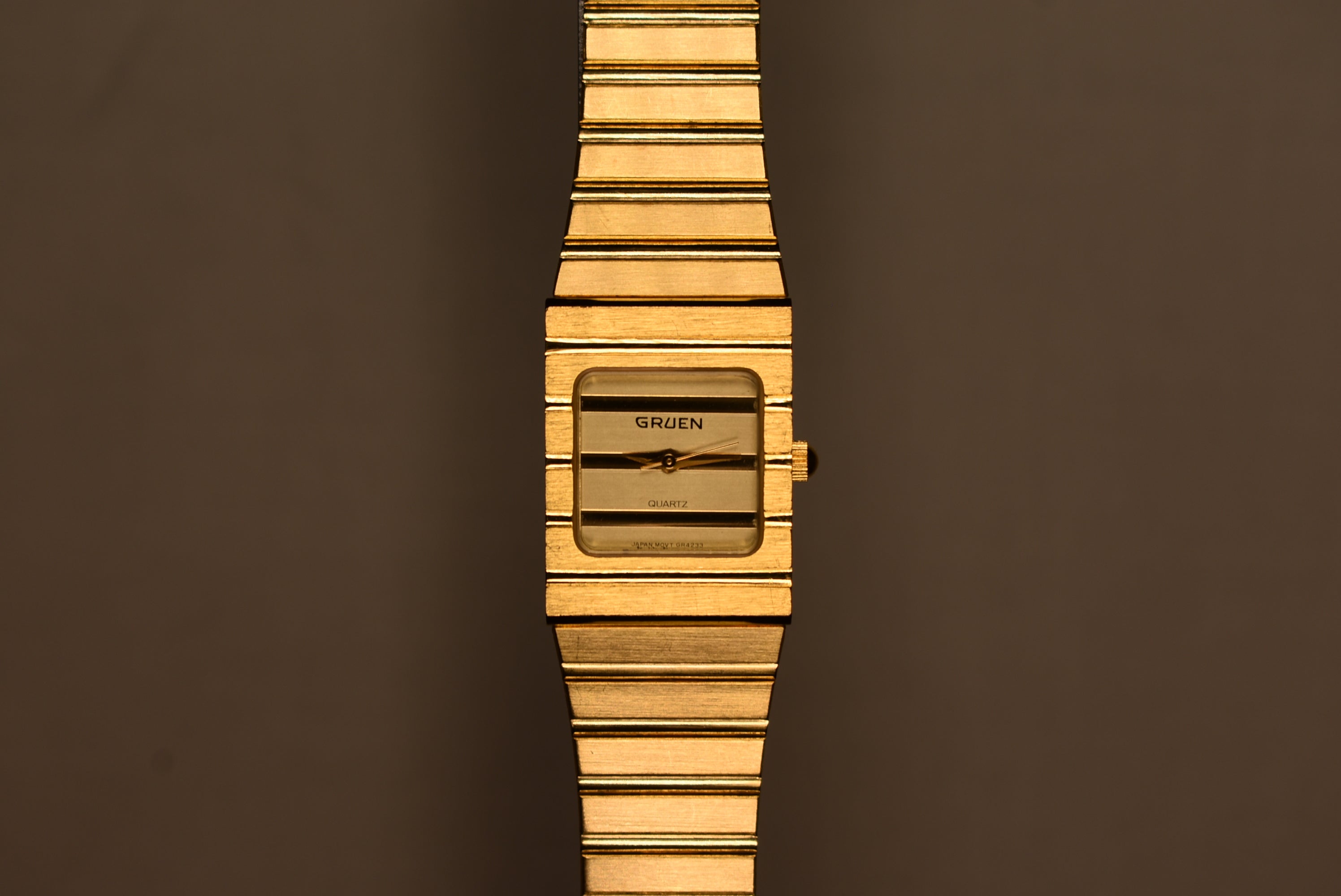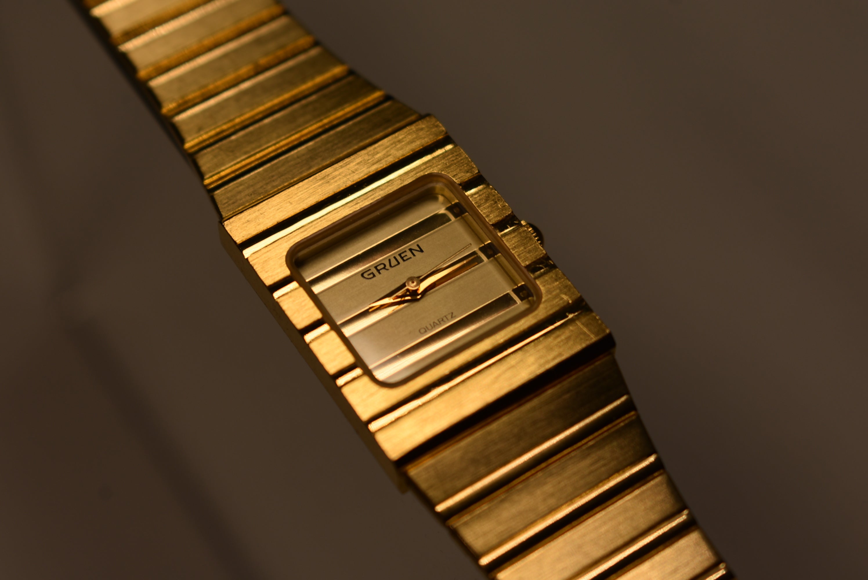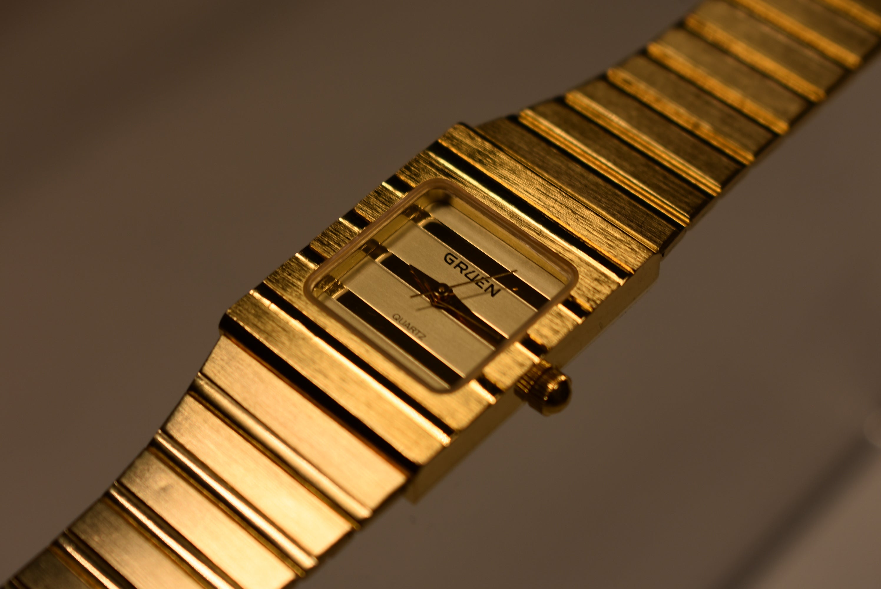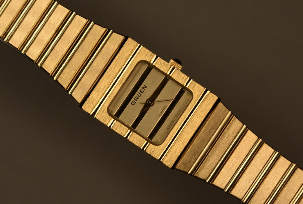 I couldn't find information on this gorgeous piece. From what I see this is a very rare piece by Gruen. It resembles the very infamous Piaget Polo which fetches $11,000. This is a great homage to the Piaget Polo seeing that there isn't much out there in the market in that style. The watch has a fresh battery and a stunning original bracelet that is adjustable.