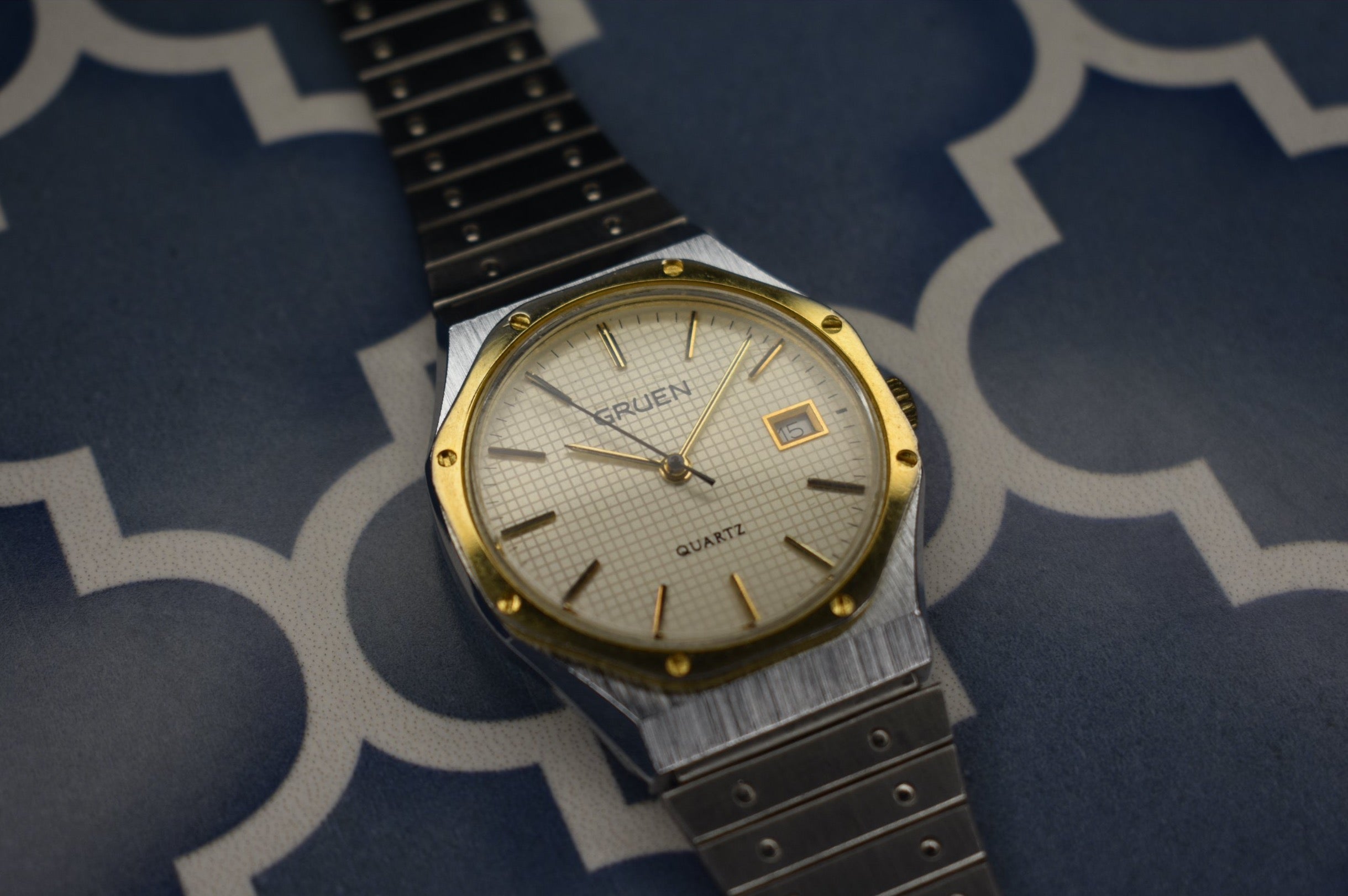This is a truly rare gem and you won’t find anything like it. It is a beautiful slim Gruen Royal Oak and it is stunning! The watch has a fresh battery and I have personally sourced a matching bracelet that would work with the piece. Feel free to ask any questions. You won’t find another like it!Authenticity Guaranteed