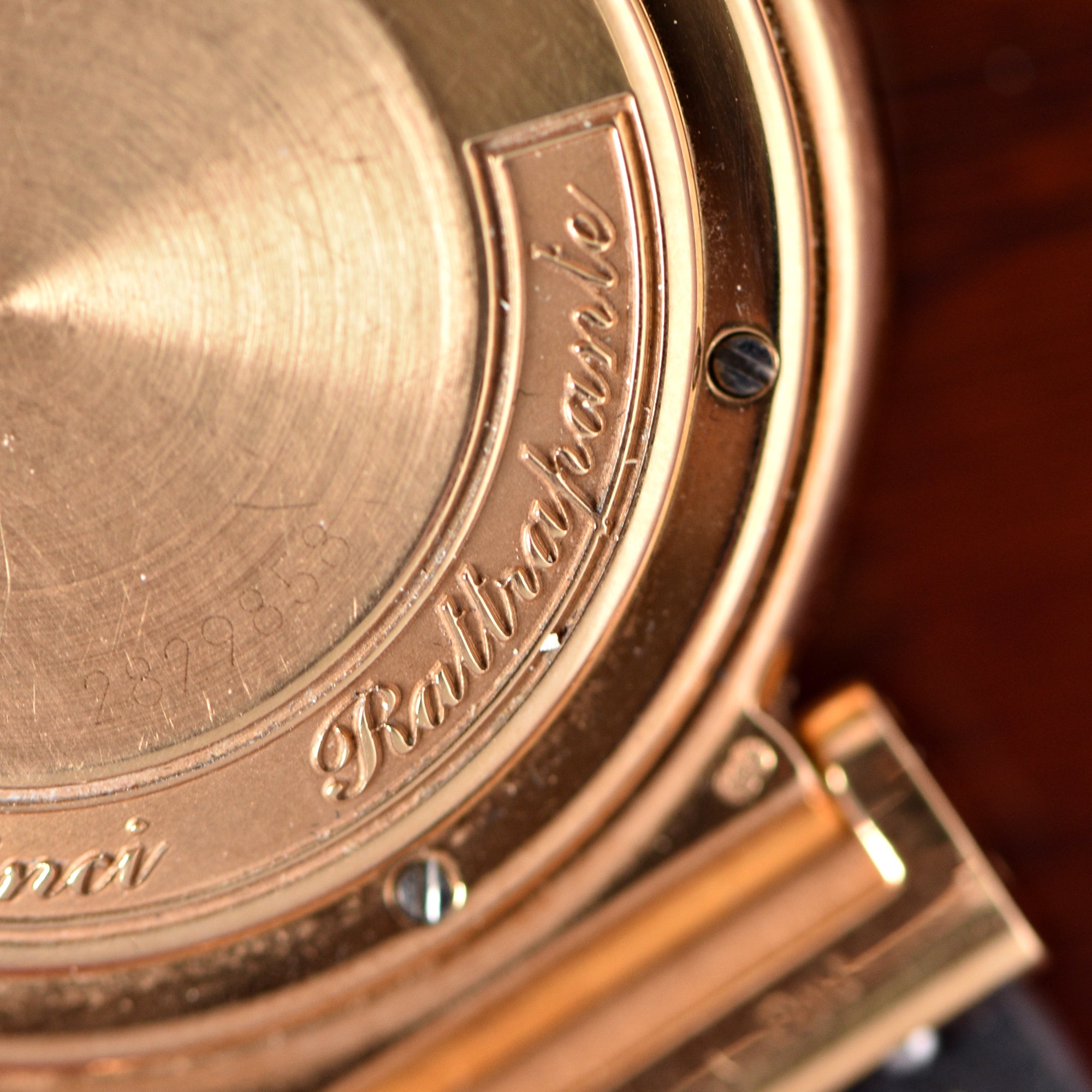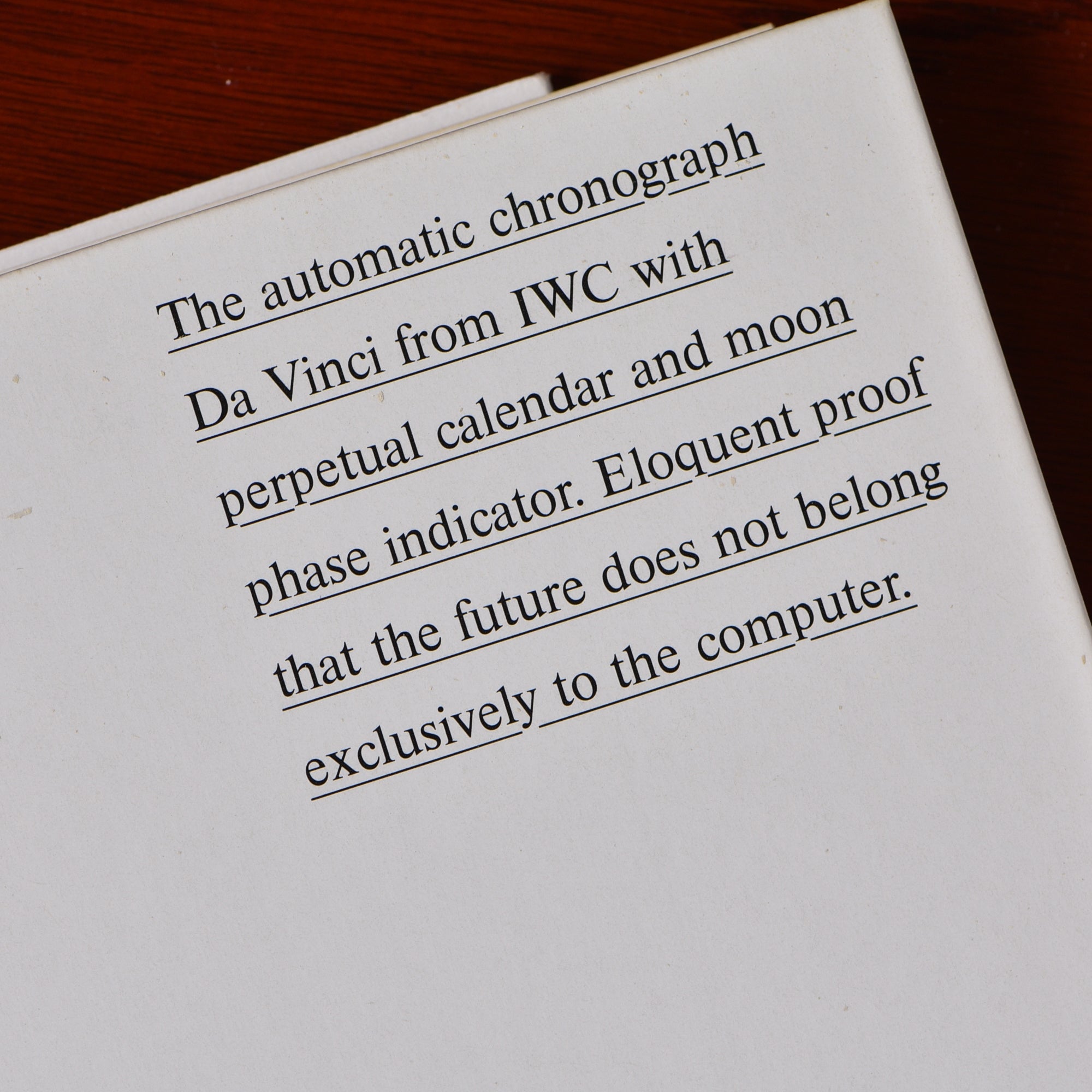 The reference 3754 was introduced in the year 2000 to commemorate the 15th anniversary of the first Da Vinci Perpetual Calender. It was during the era of larger being better so this is what IWC chose to do to the new Rattrapante model. First, the size, they added 2.5mm making it 41.5mm in case size. The case was no also in 18k rose gold, only for this reference. The next thing was the dial: for the first time ever, the Da Vinci featured large Arabic numerals.