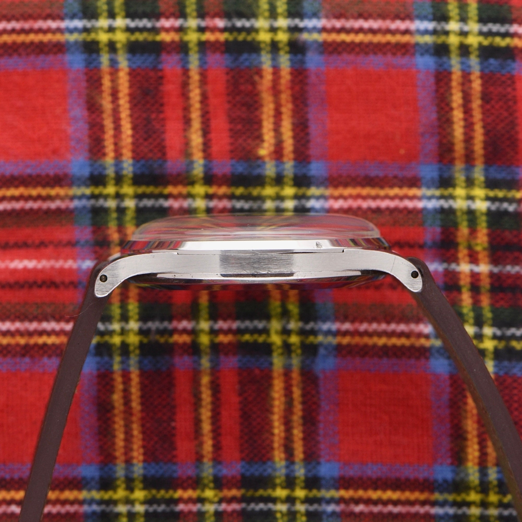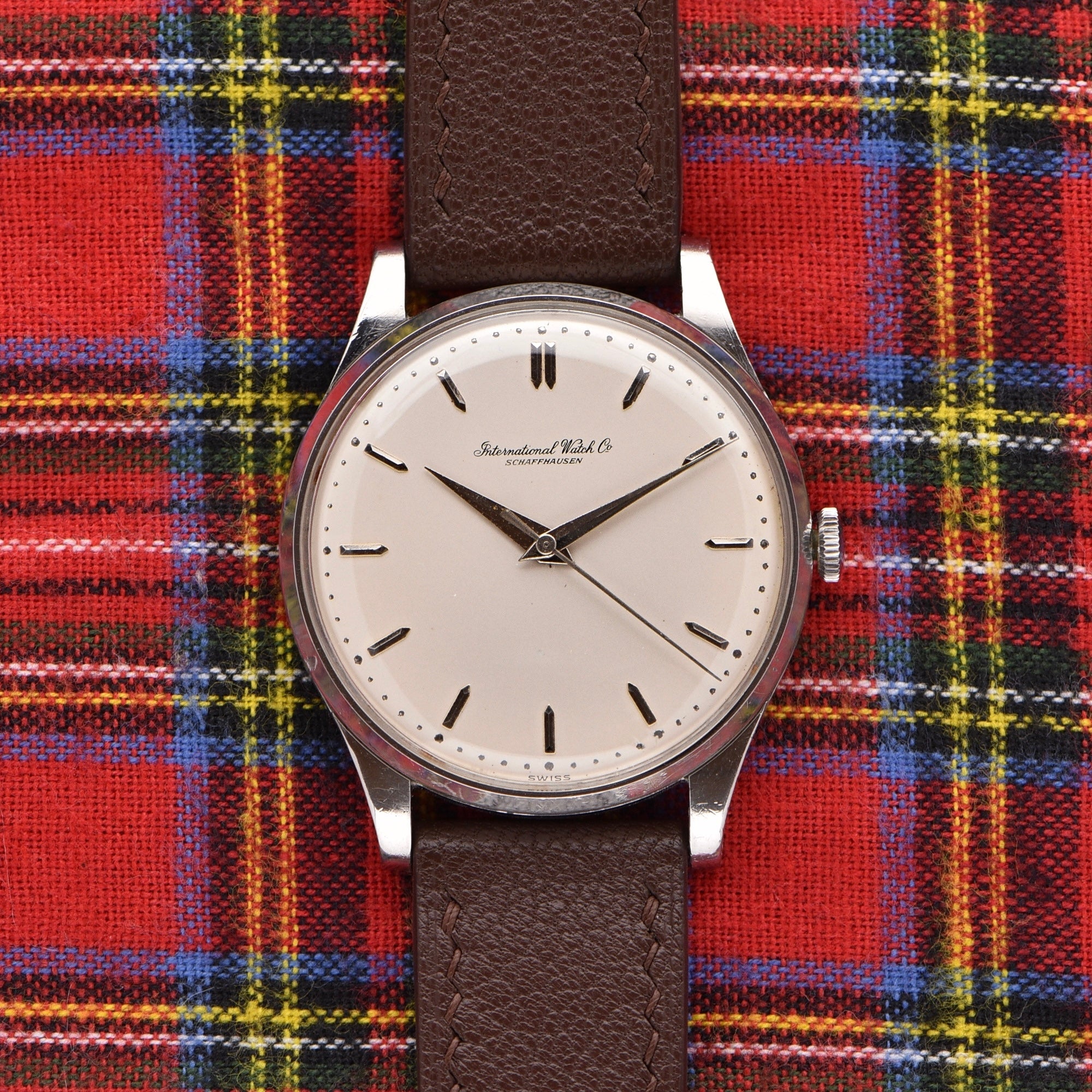 This dial is still nice and crisp with very little signs of aging. The case looks sharp with light wear throughout only one mark on the bezel by 8 o’clock that is noticeable. The movement is clean and was just serviced. This is one of the cleanest IWC Caliber 89 examples we have seen.
