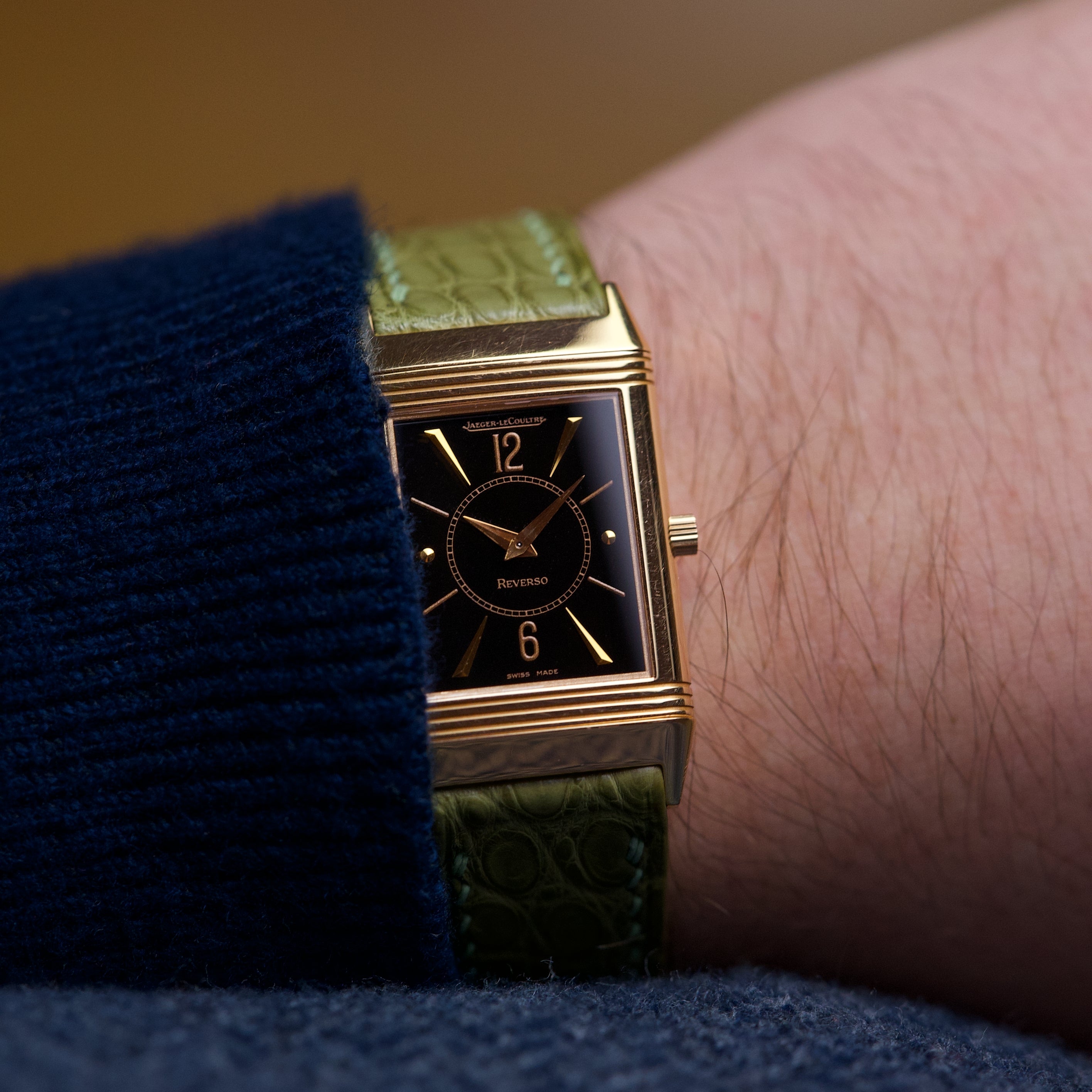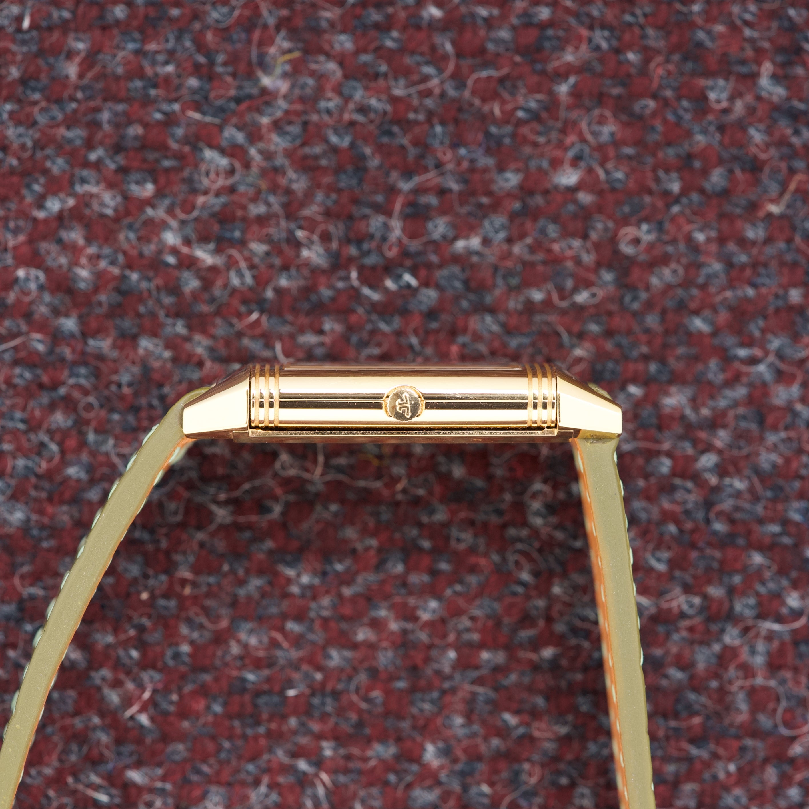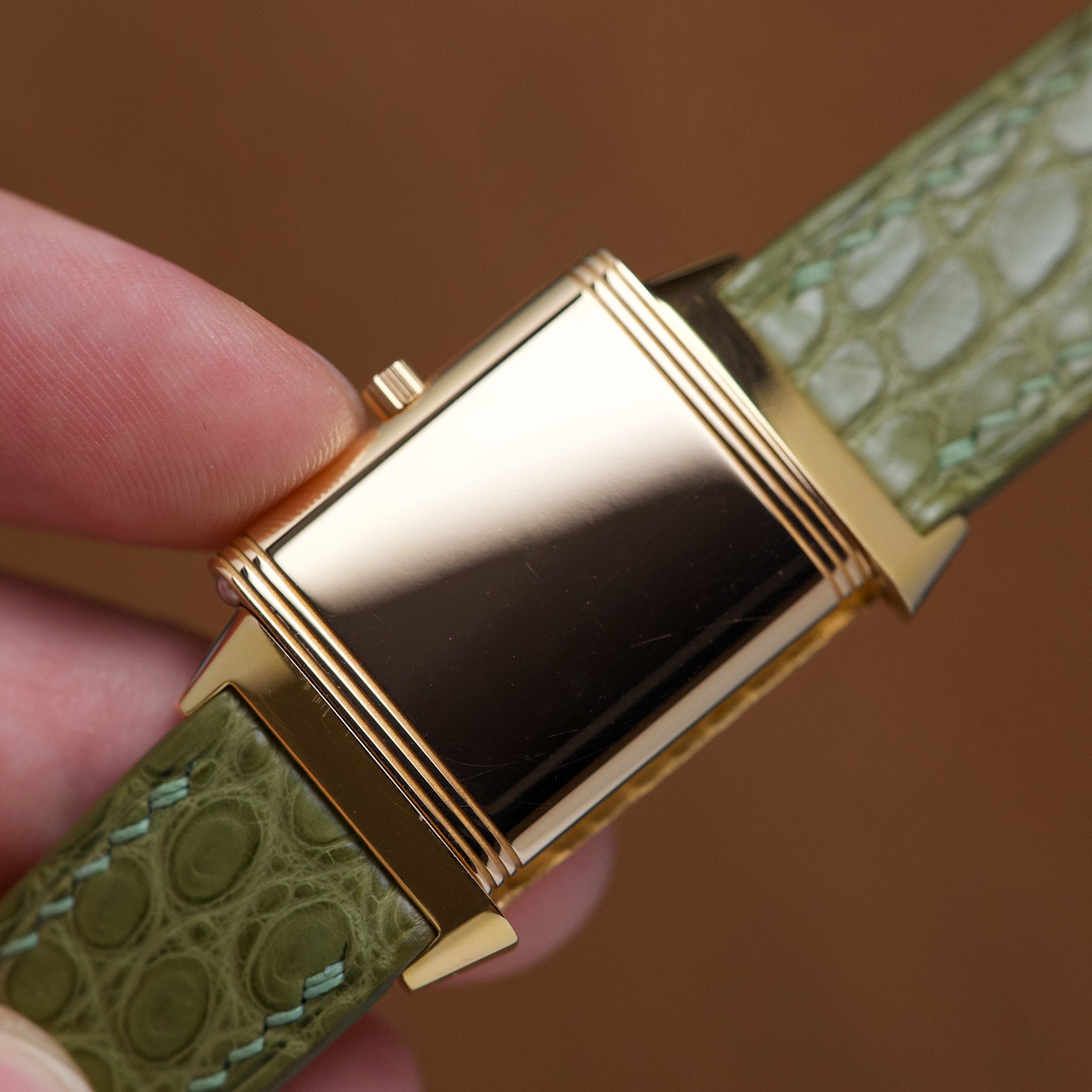 Case: The 23 by 38.5mm case is 18k rose gold. The Classique medium case size is perfect. The watch houses a manual movement which keeps it thin even with the Reverso function. The rose gold is a light tone and not as aggressive as rose gold seen from similar brands.