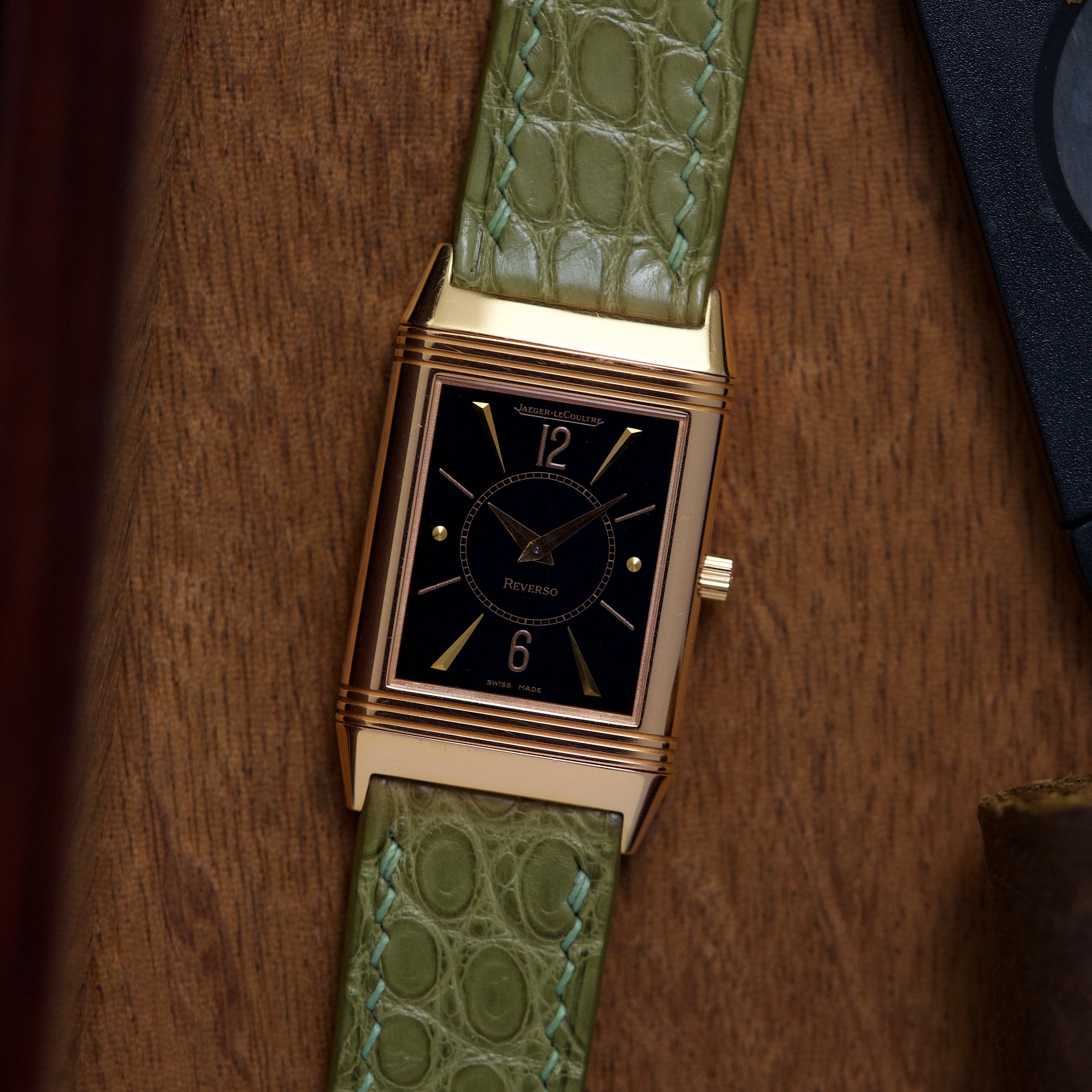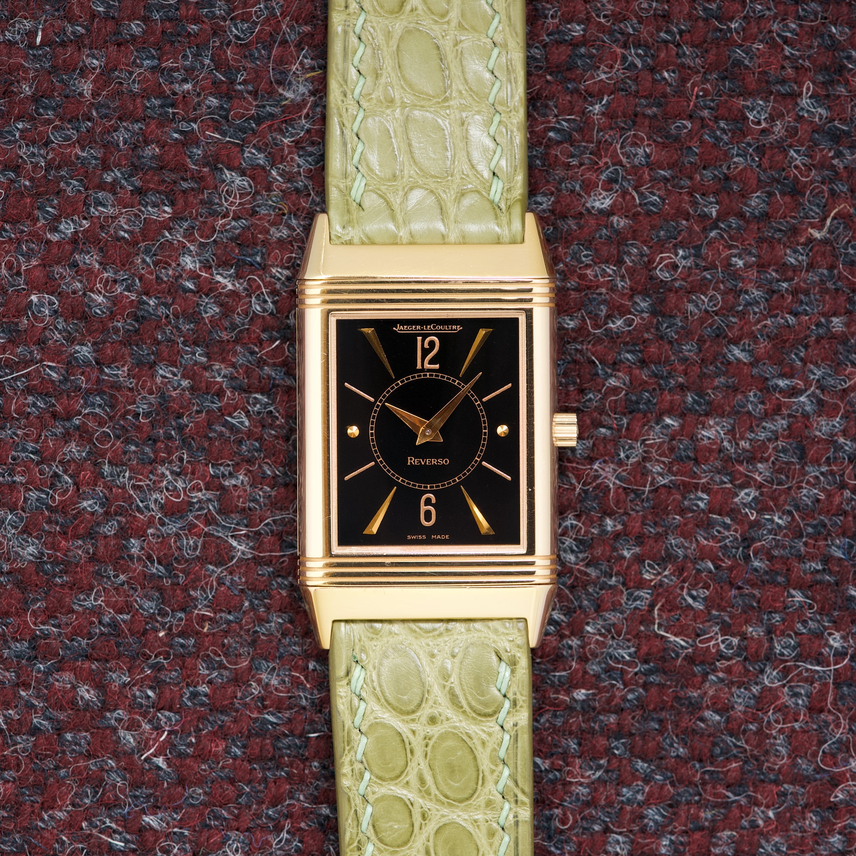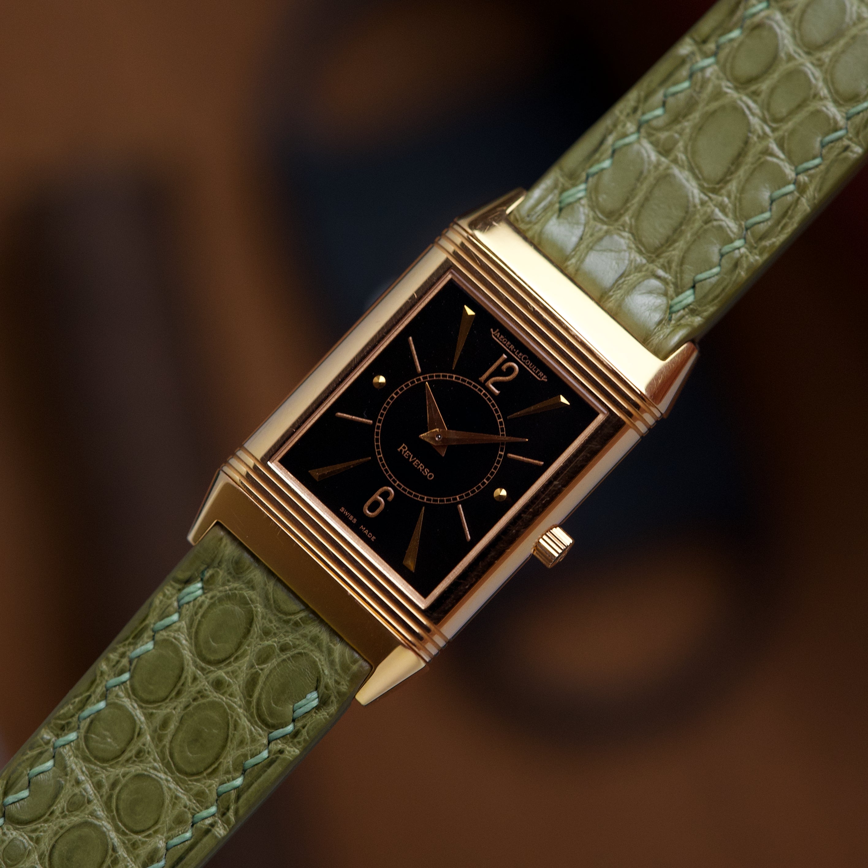 Case: The 23 by 38.5mm case is 18k rose gold. The Classique medium case size is perfect. The watch houses a manual movement which keeps it thin even with the Reverso function. The rose gold is a light tone and not as aggressive as rose gold seen from similar brands.