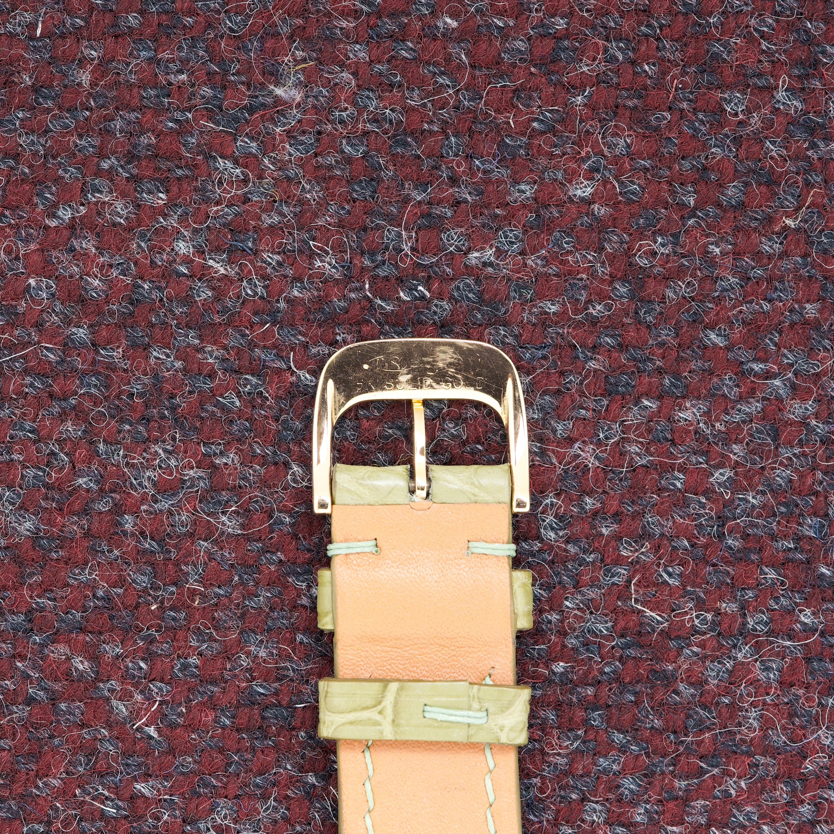 Strap & Buckle: The watch is on a new alligator strap from our handmade collection with its original rose gold buckle.