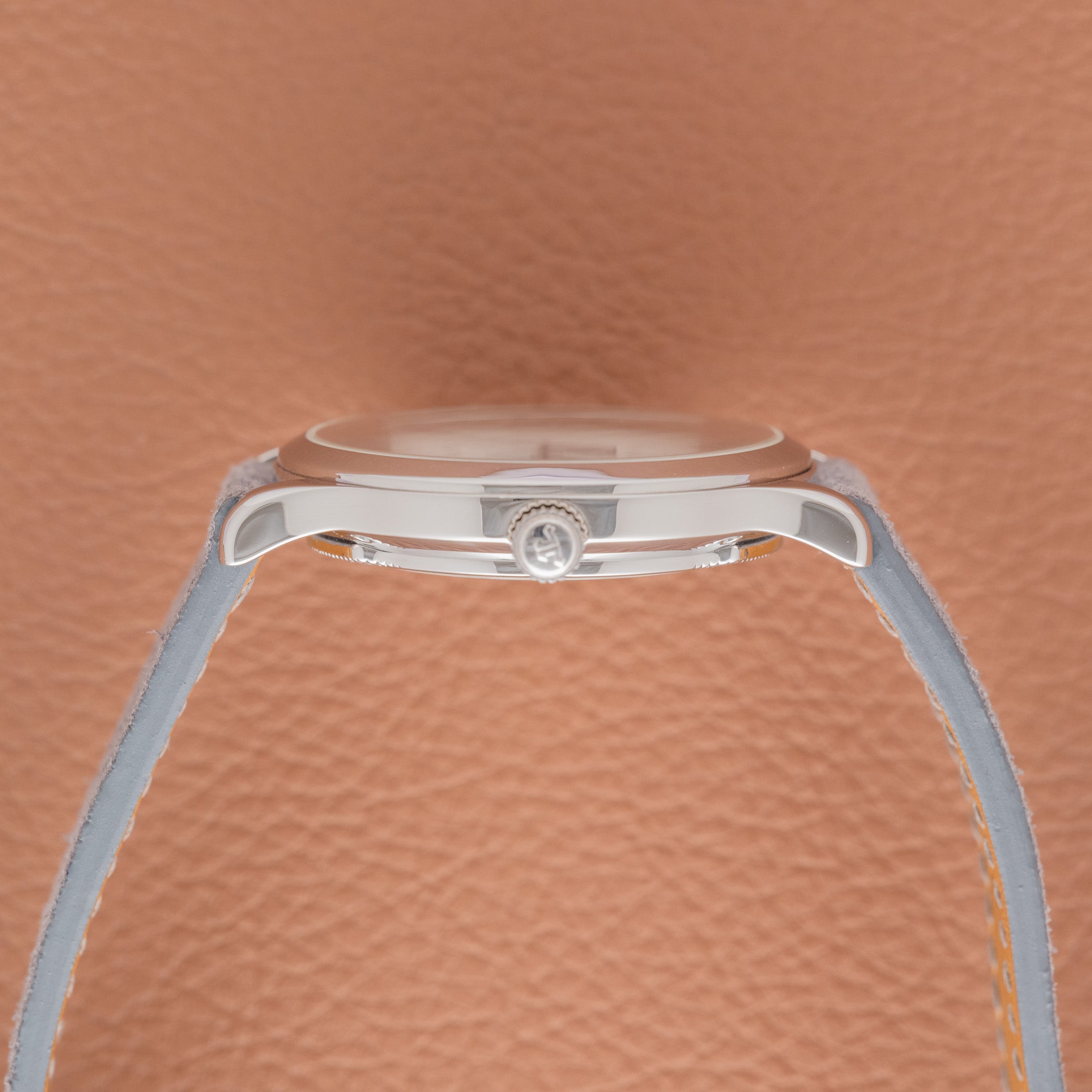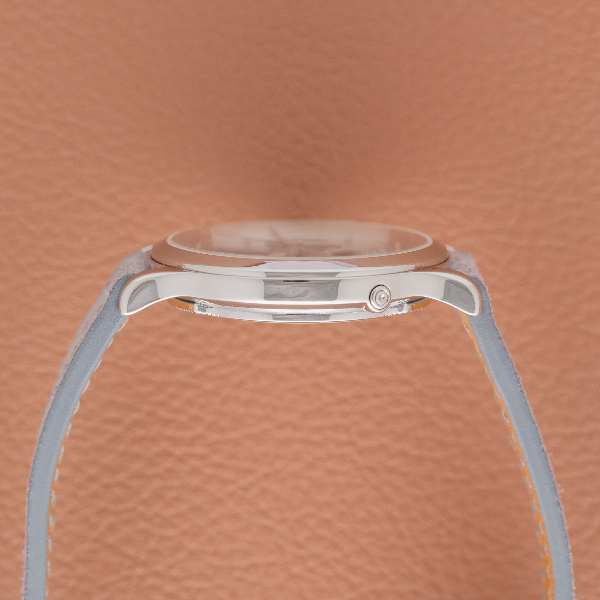 Strap/Bracelet: Grey leather strap