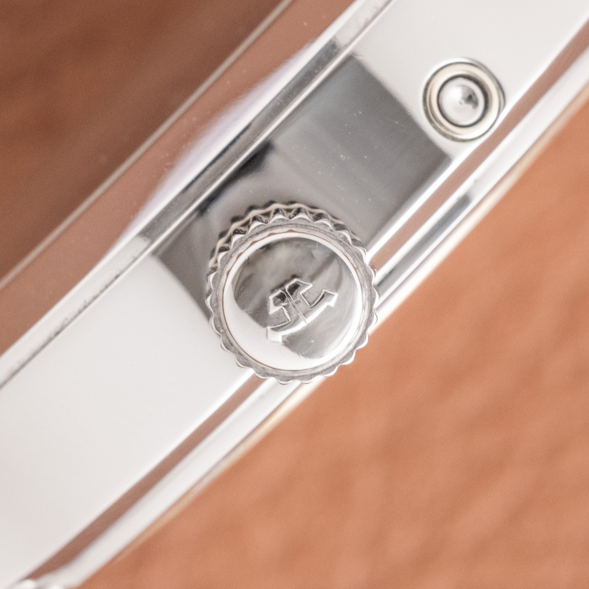 Case: Stainless steel case with smooth polished bezel and dual crowns