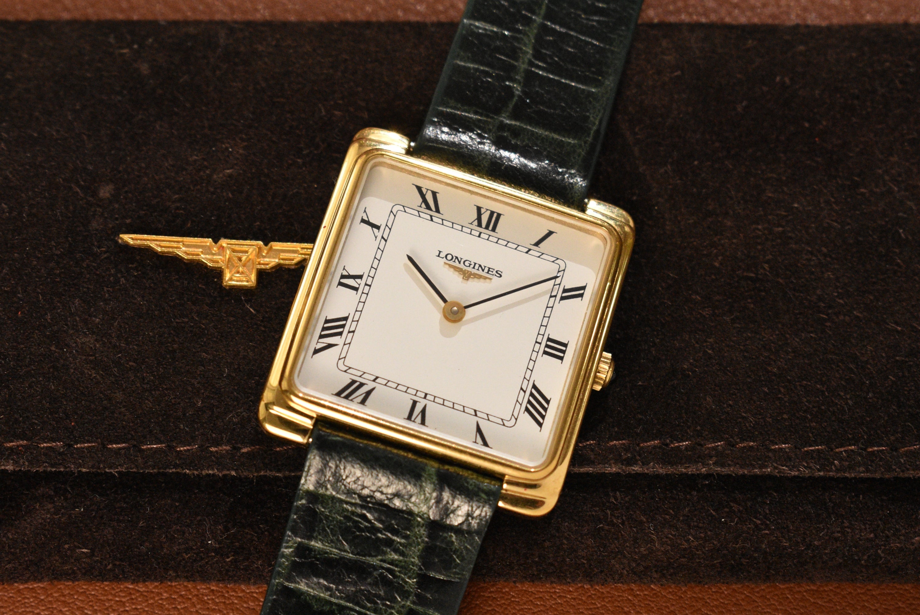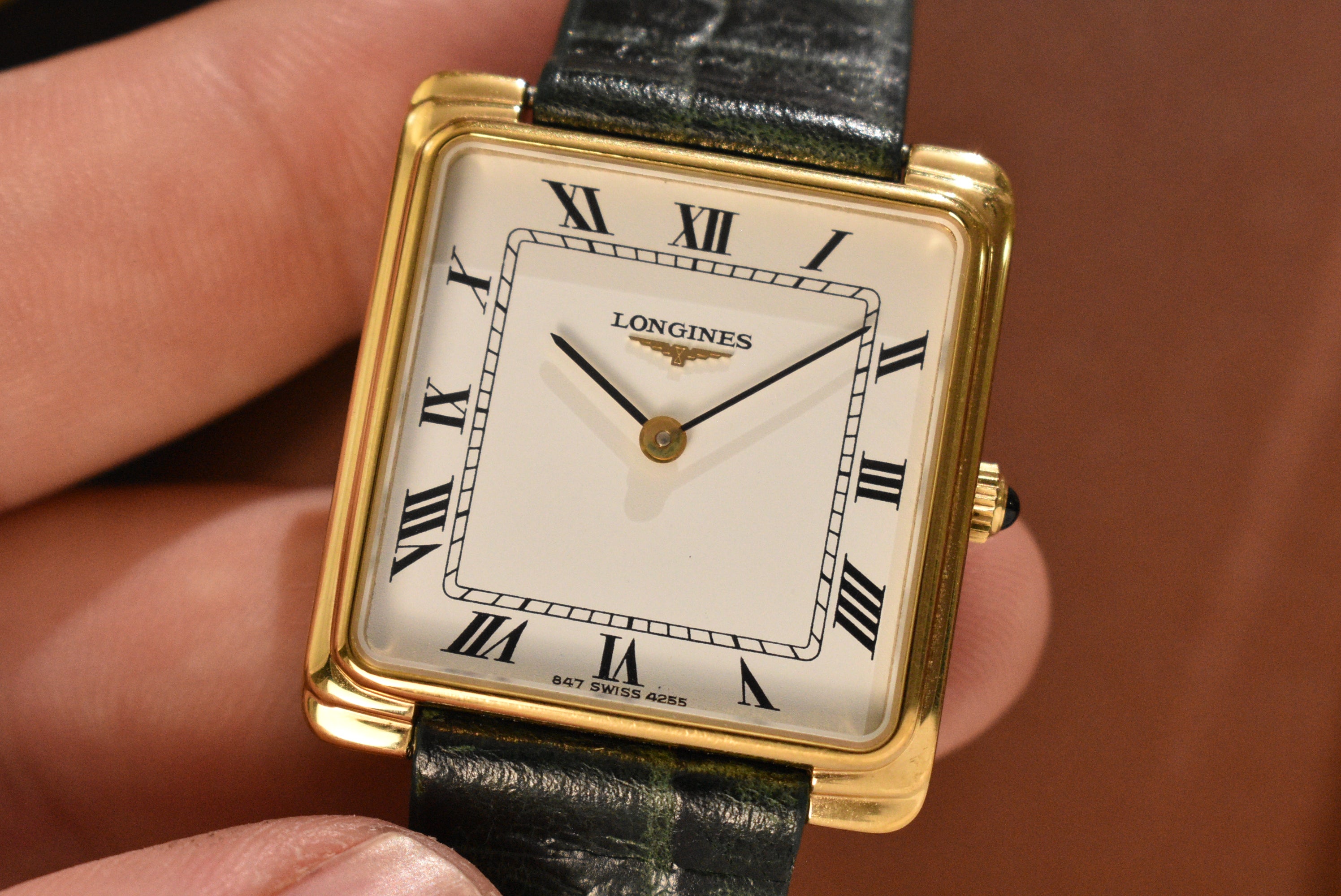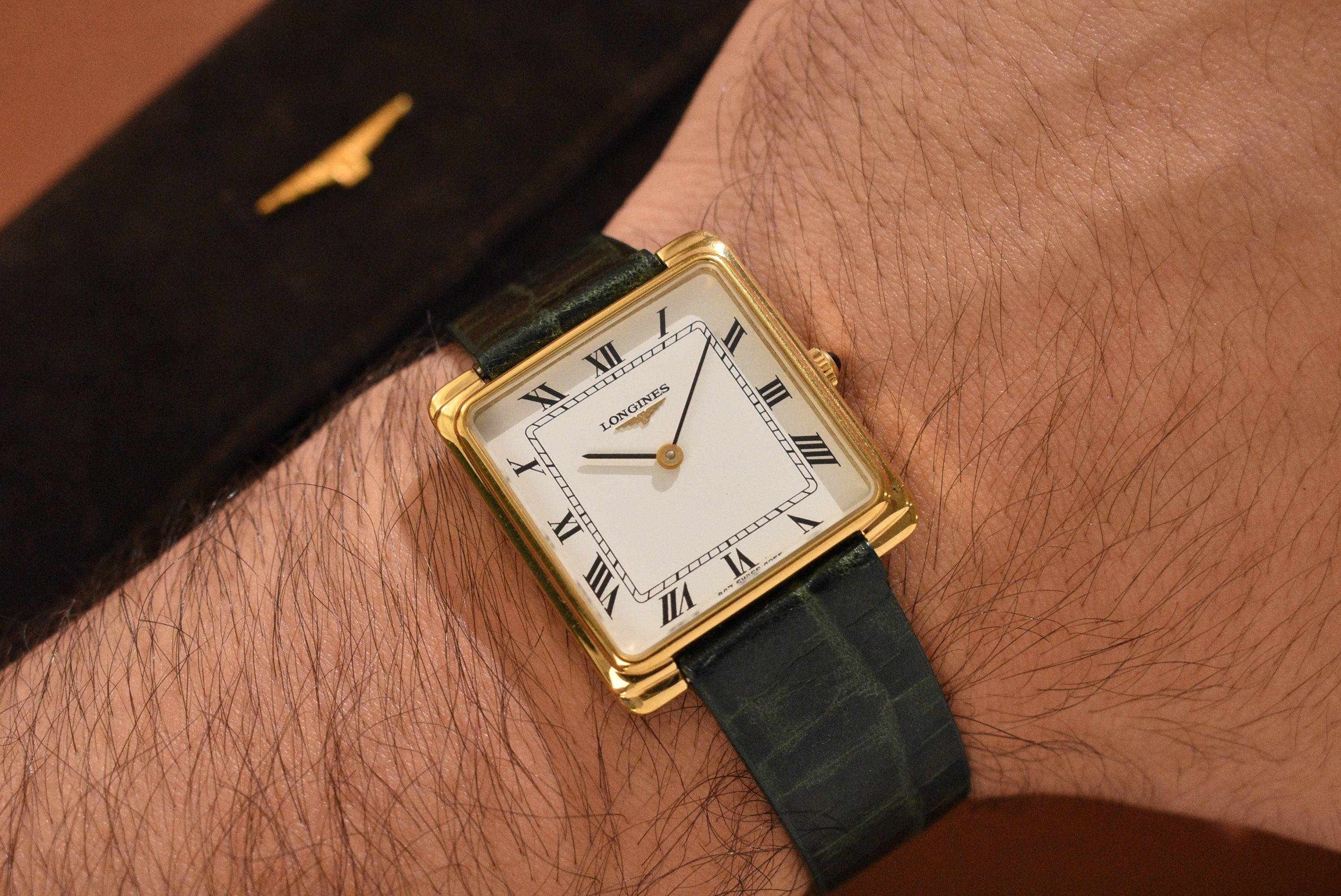 Longines is a brand held in high regard. Take a look at their modern offerings and price points. Longines is a true entry point into luxury watchmaking. Now what we have here is a very unique and rare jumbo Longines square tank. This one is in really good condition and its jumbo case might be the reason you pick this one up instead of a vintage Cartier. This is one of those watches you truly have to see in person to understand how beautiful it really is.