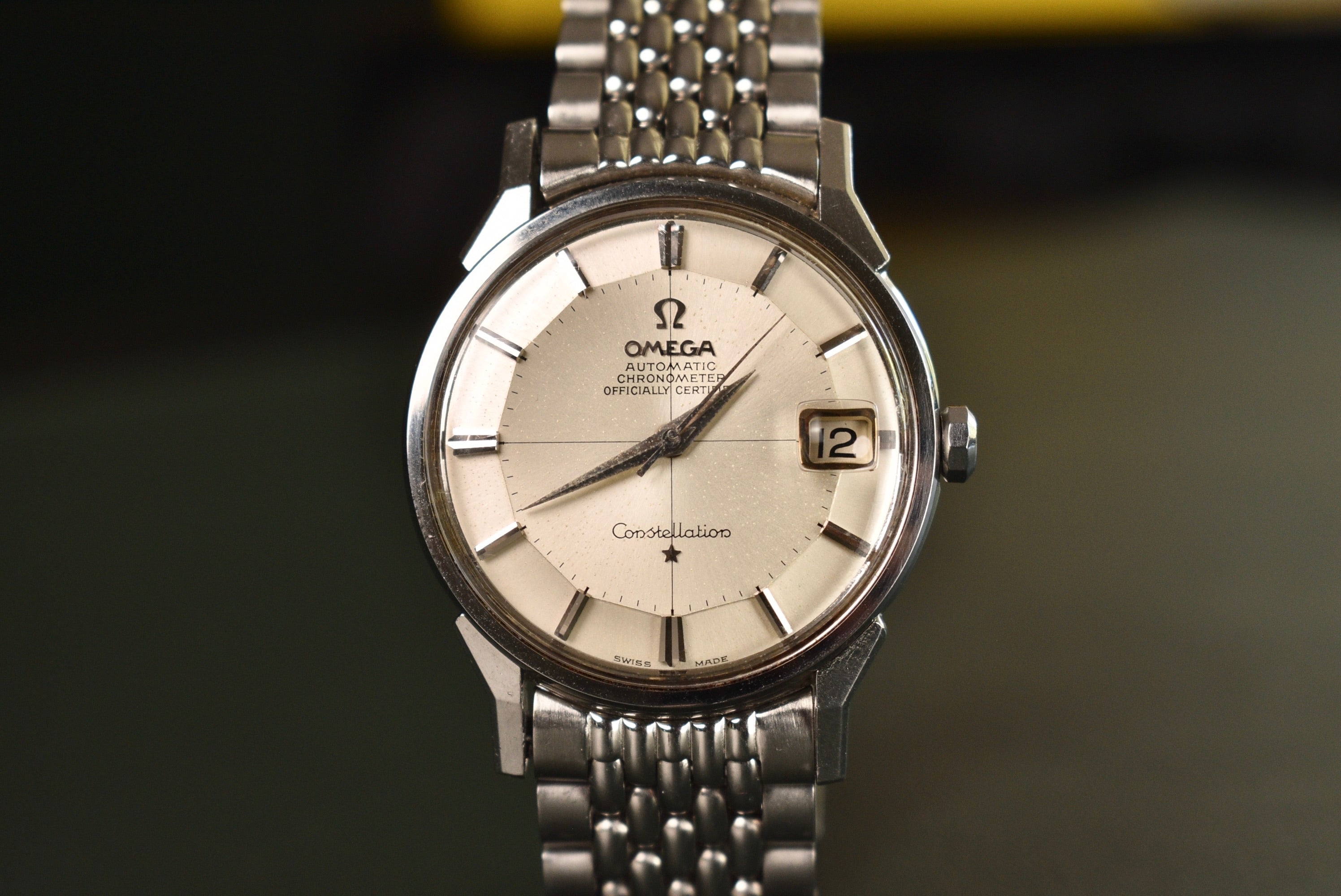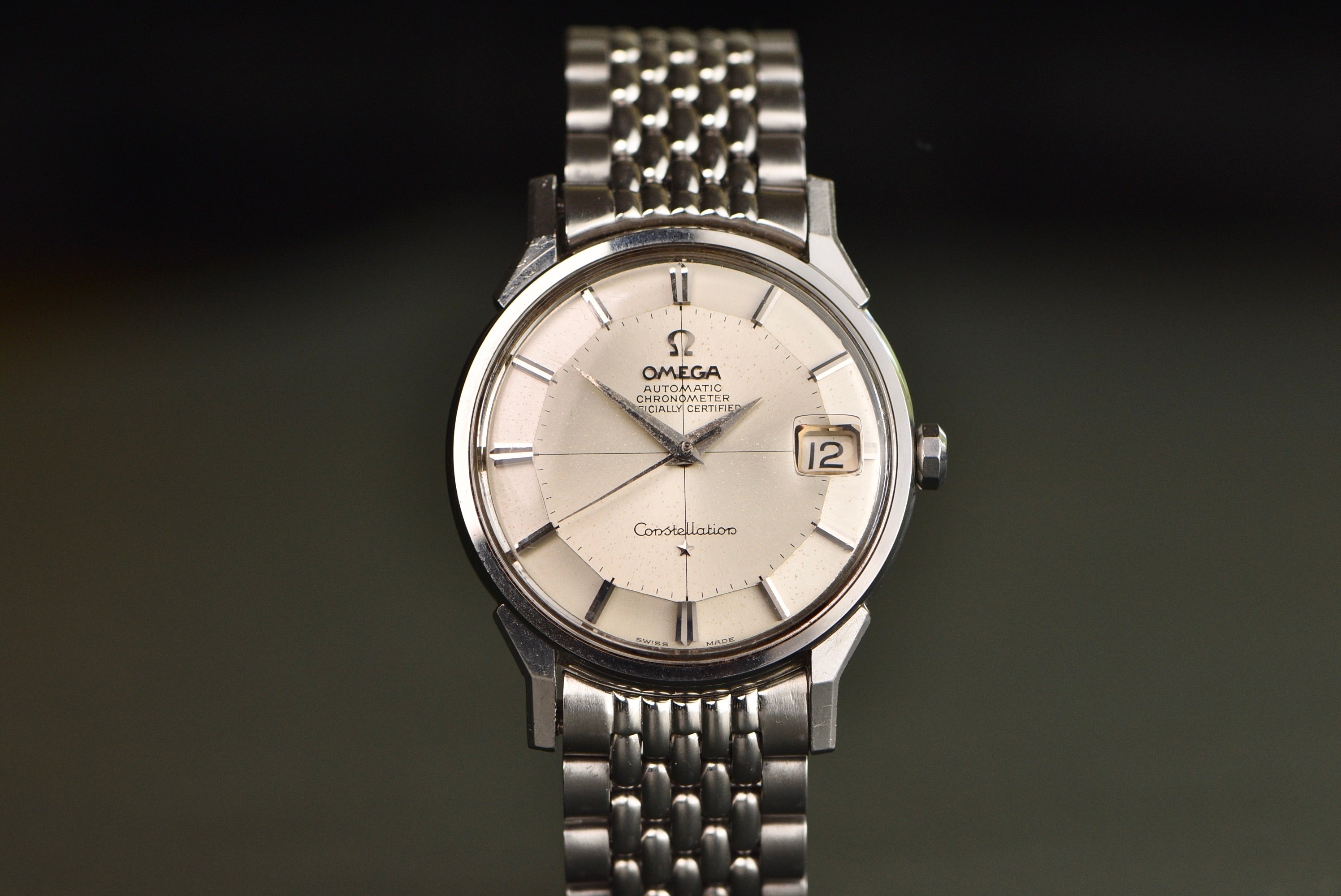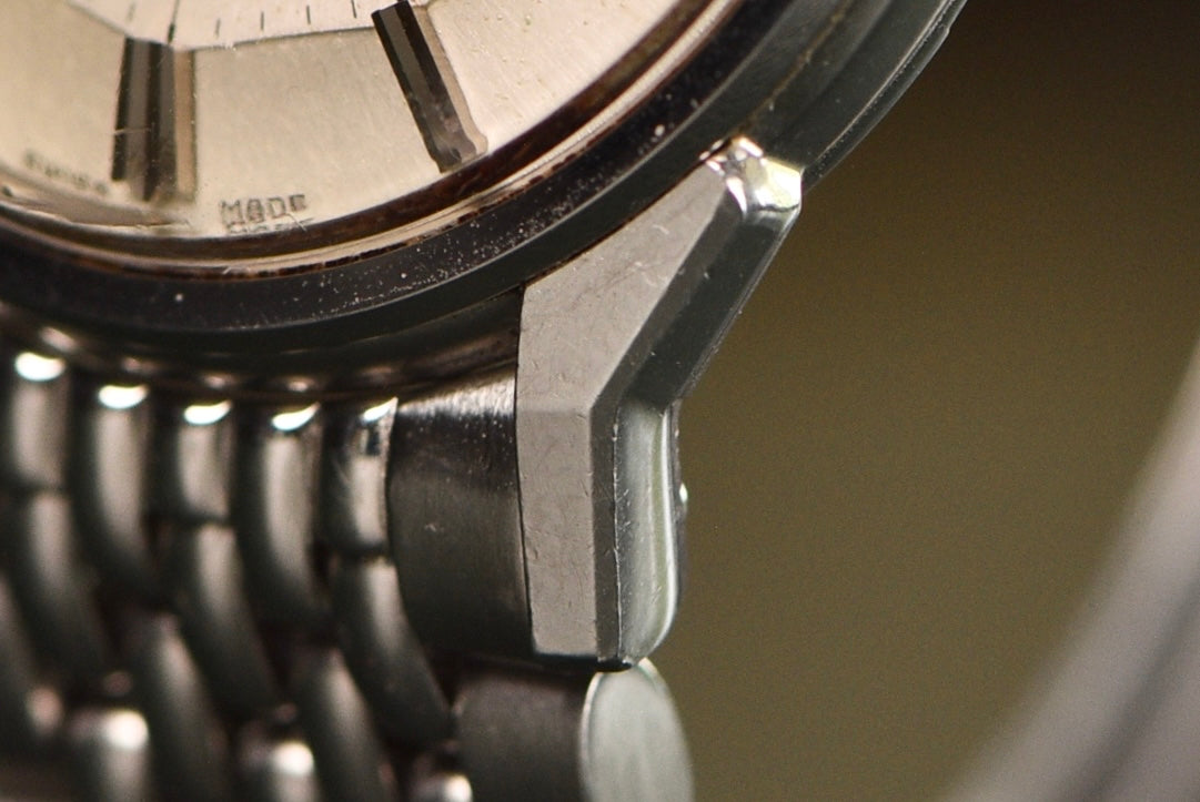 The Constellation is one of those vintage icons when it comes to affordable luxury. A very unique design with its pie-pan dial and aggressive lugs. The 'pre-Genta' Constellation will always be THE Omega Constellation. A watch that is so clean yet so dressy all at the same time. Sporty with its original Beads of Rice bracelet or just dress it up with a simple alligator strap. What's not to love? The best part is, this silver crosshair dial is in crazy nice condition.