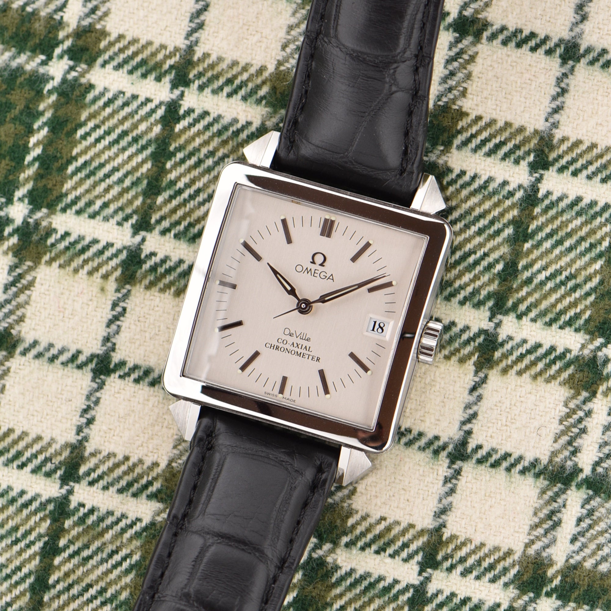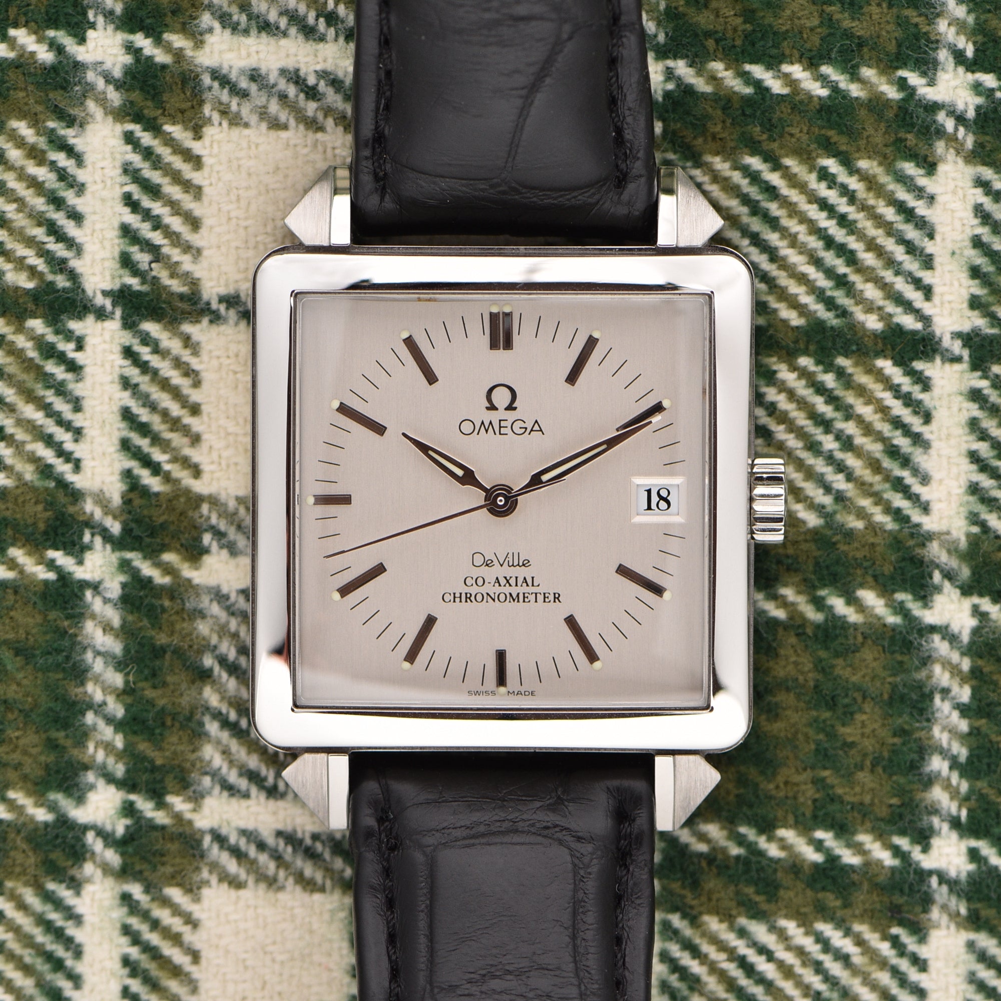 The Byzantium is a rare De Ville based on the Museum Edition No. 2 case design, similar to the De Ville X2 Big Date but with a slightly smaller case size of 33.5 mm by 33.5 mm. The Byzantium watch design is a polarizing one, featuring Roman and Arabic numerals on the dial. It also doubles as a platform for some of Omega's most beautiful modern limited edition watches, with four unique limited editions eschewing the Byzantium theme in favor of vintage 1950s styling. These limited edition models are largely unknown and undocumented but are available in stainless steel at a reasonable price.