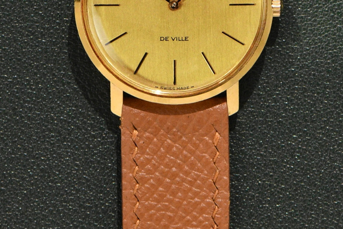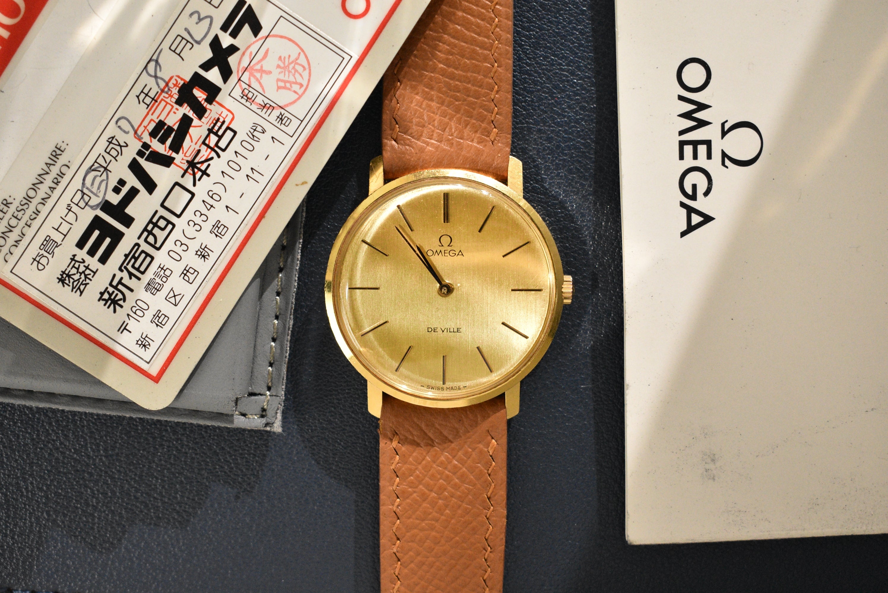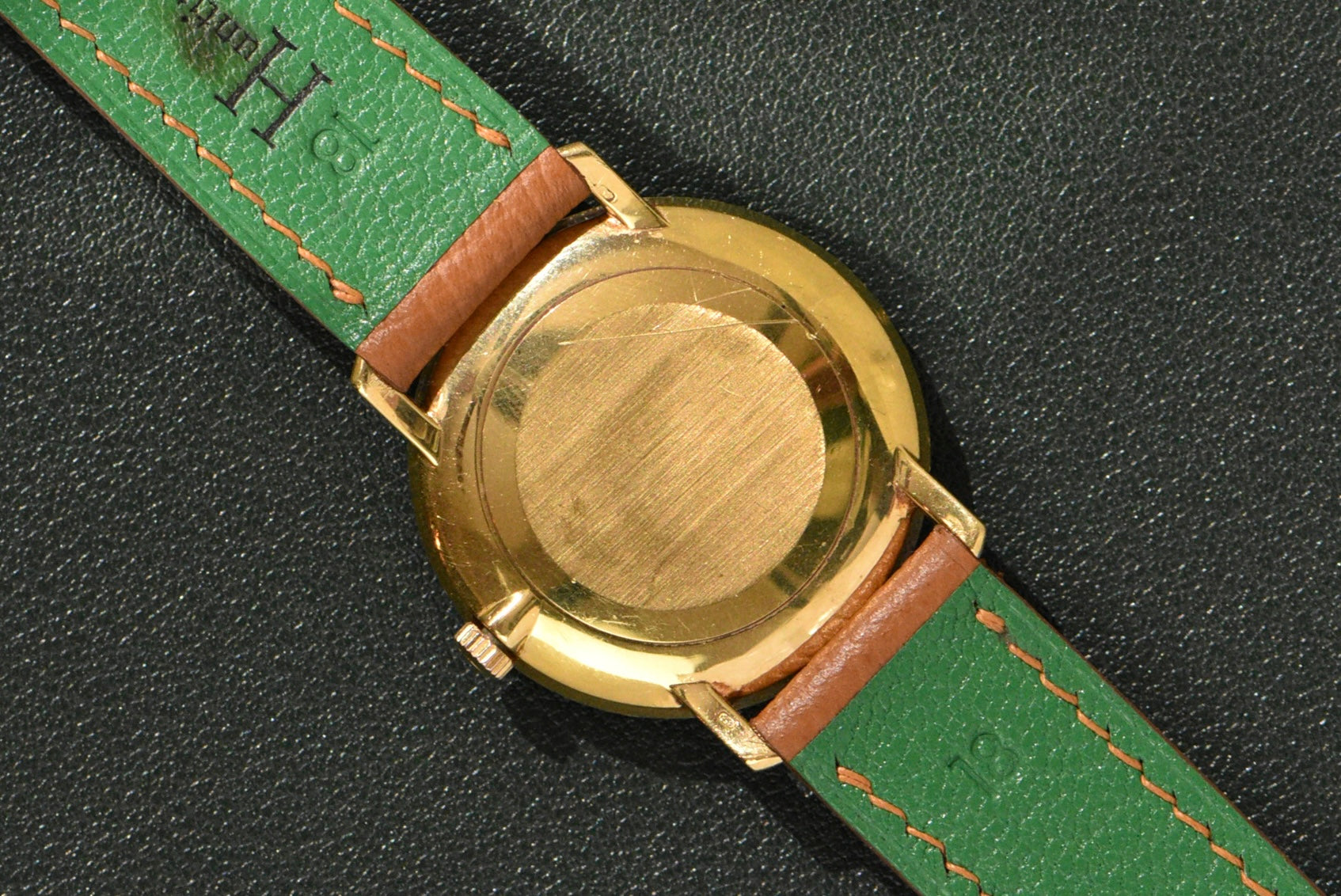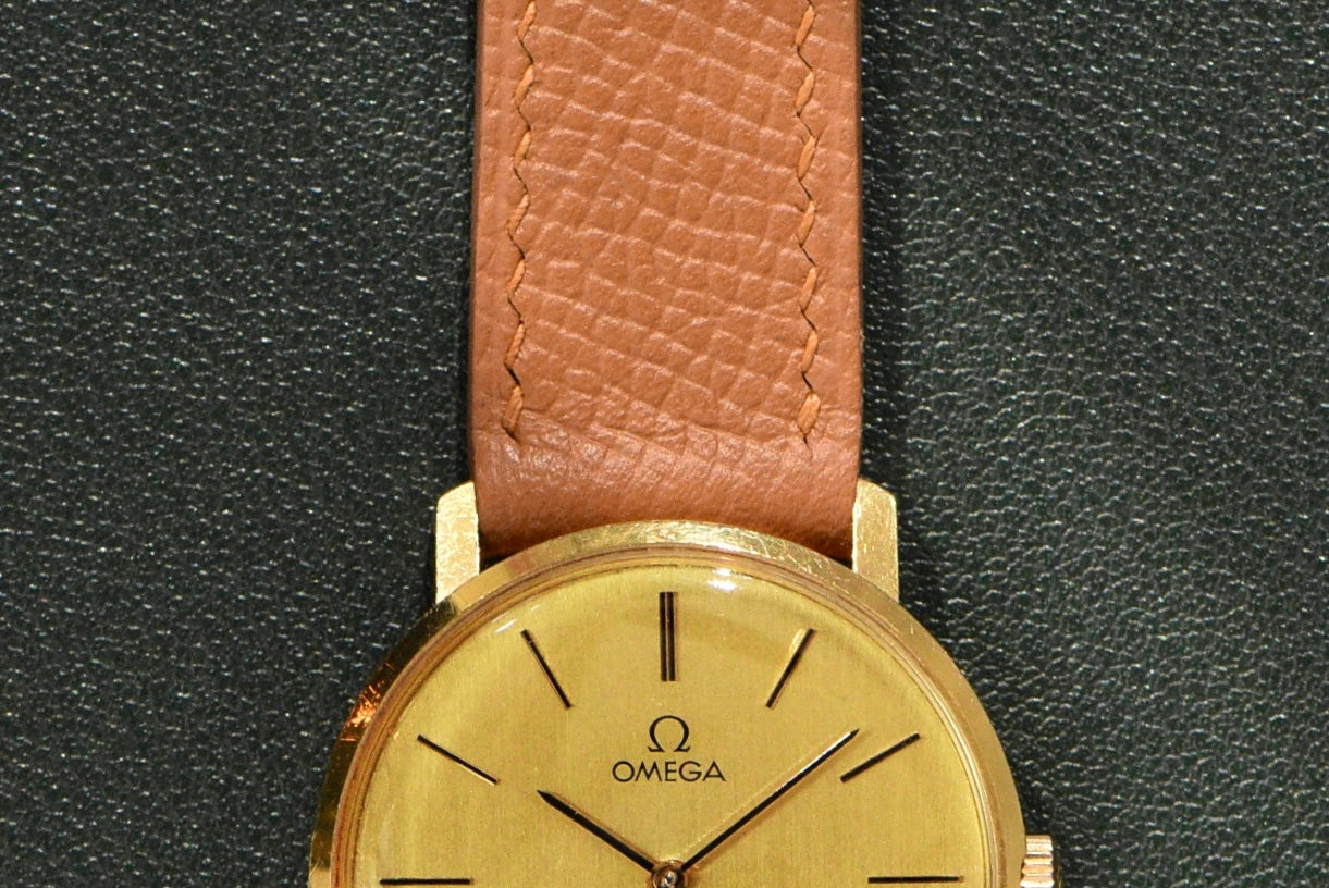 Here is a great option for something truly different and special in the vintage market. A solid gold Omega De Ville with one of the coolest dials ever. The amount of light this gold dial reflects is insane. If you are looking to add a bit of bling, something that truly stands out, in your collection, then this is it. The brushed finish gold dial has a cat's eye effect to it that you would often see with rare gemstones. Paired with a solid gold case, this omega is stealth wealth.