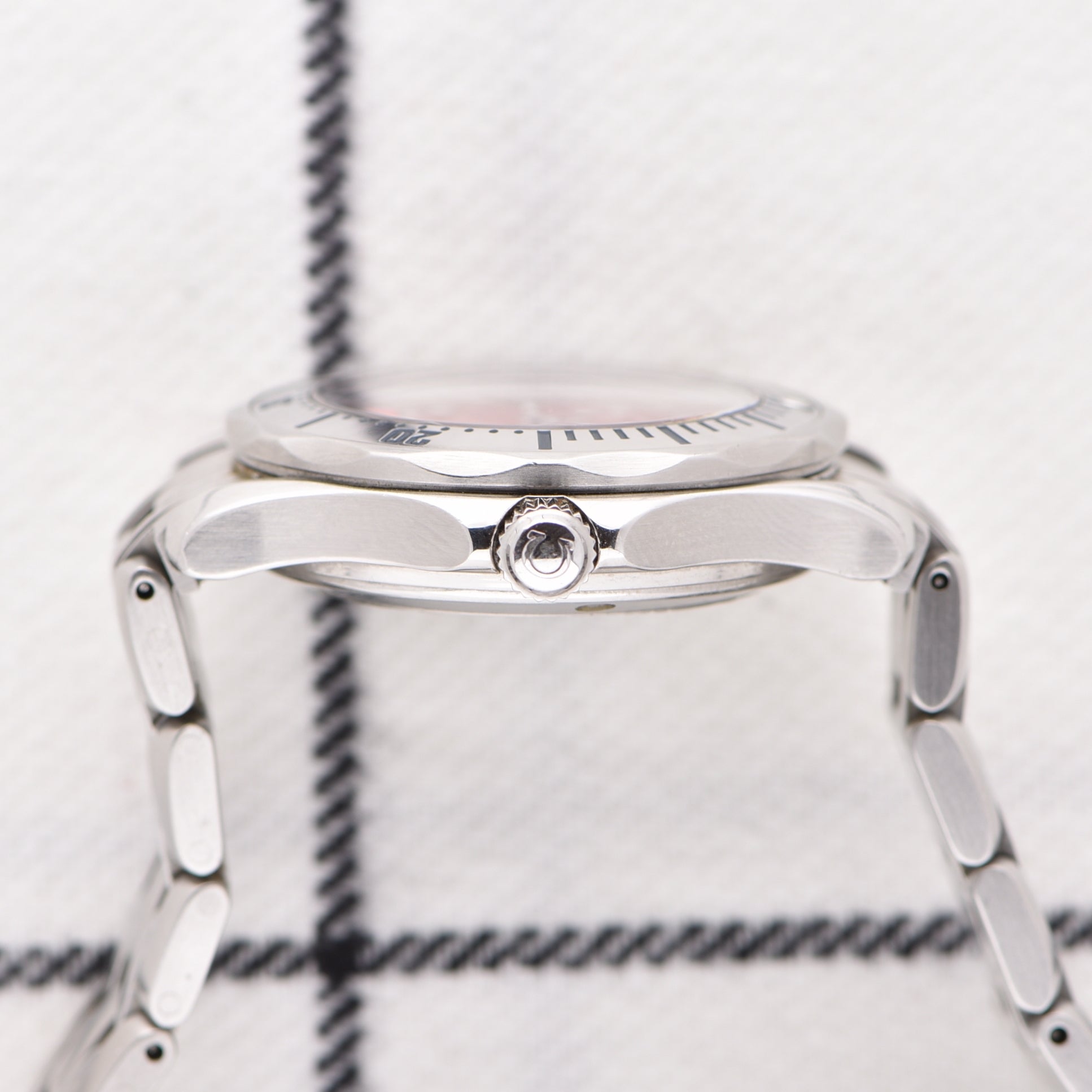 One of the cleanest red dial Seamasters we've seen. As you can see the dial is perfect with perfect lume. The case and bracelet are unpolished and in amazing condition. There is no paint loss in the bezel markers. The watch comes as a complete set with the box, booklets, and certificate.