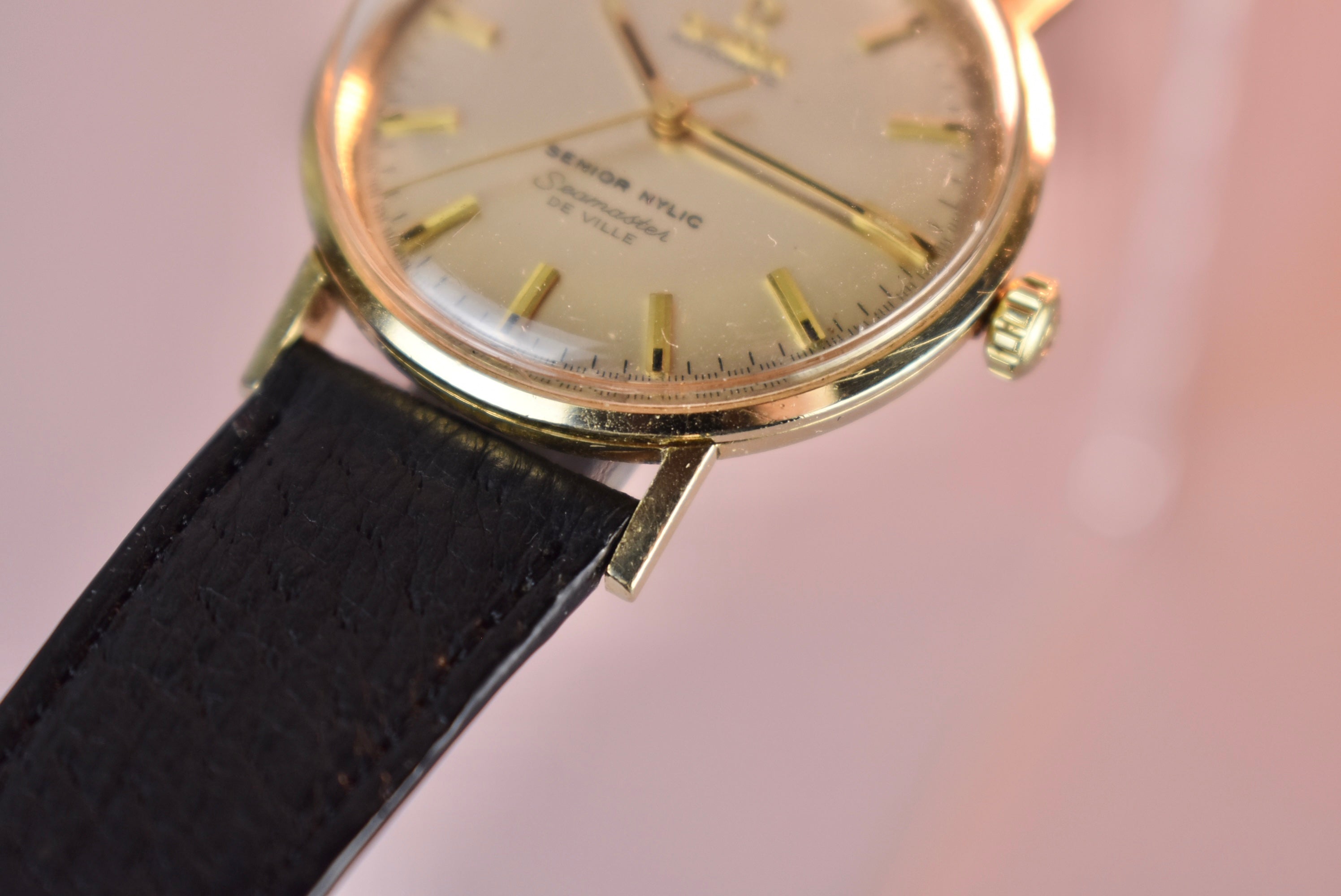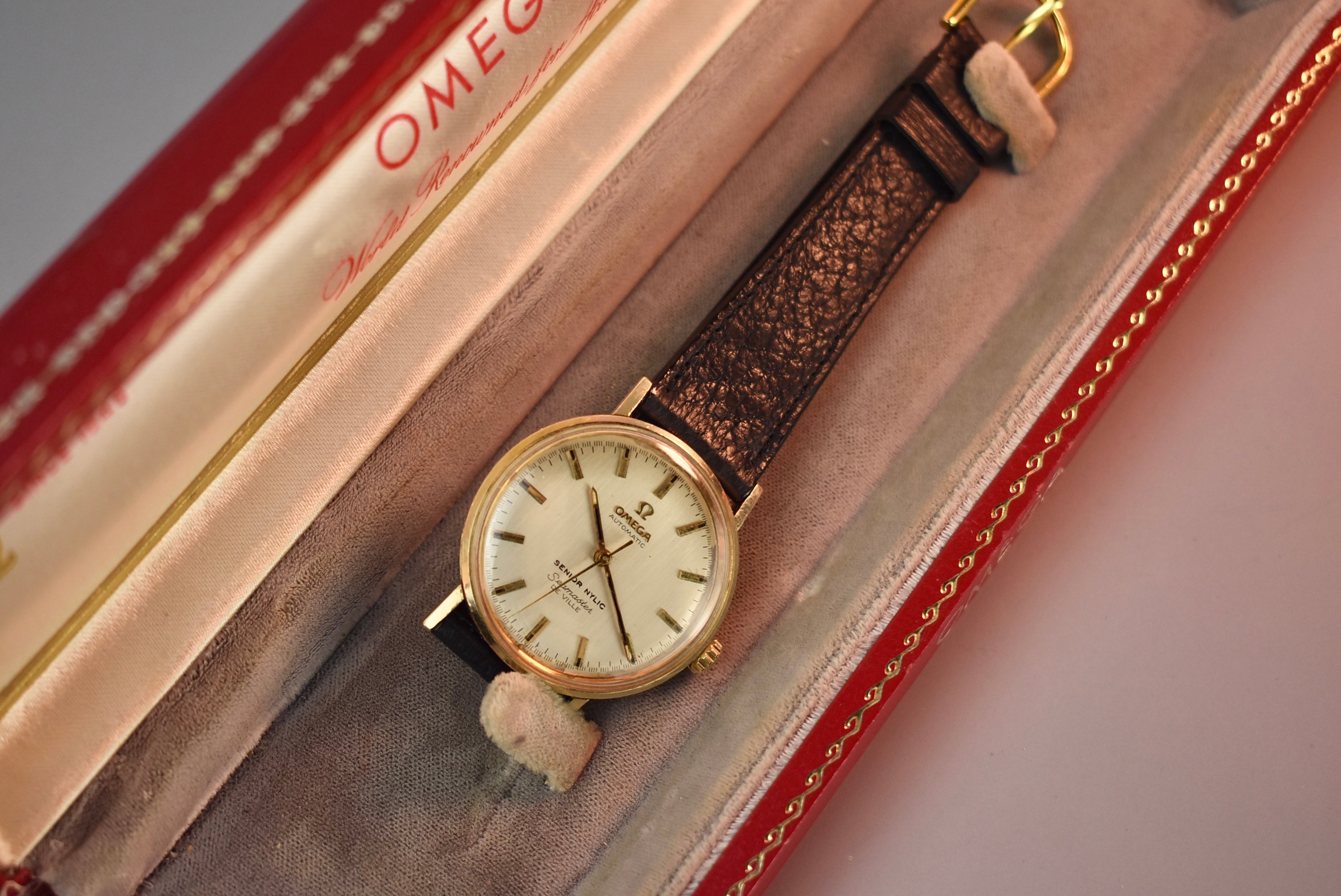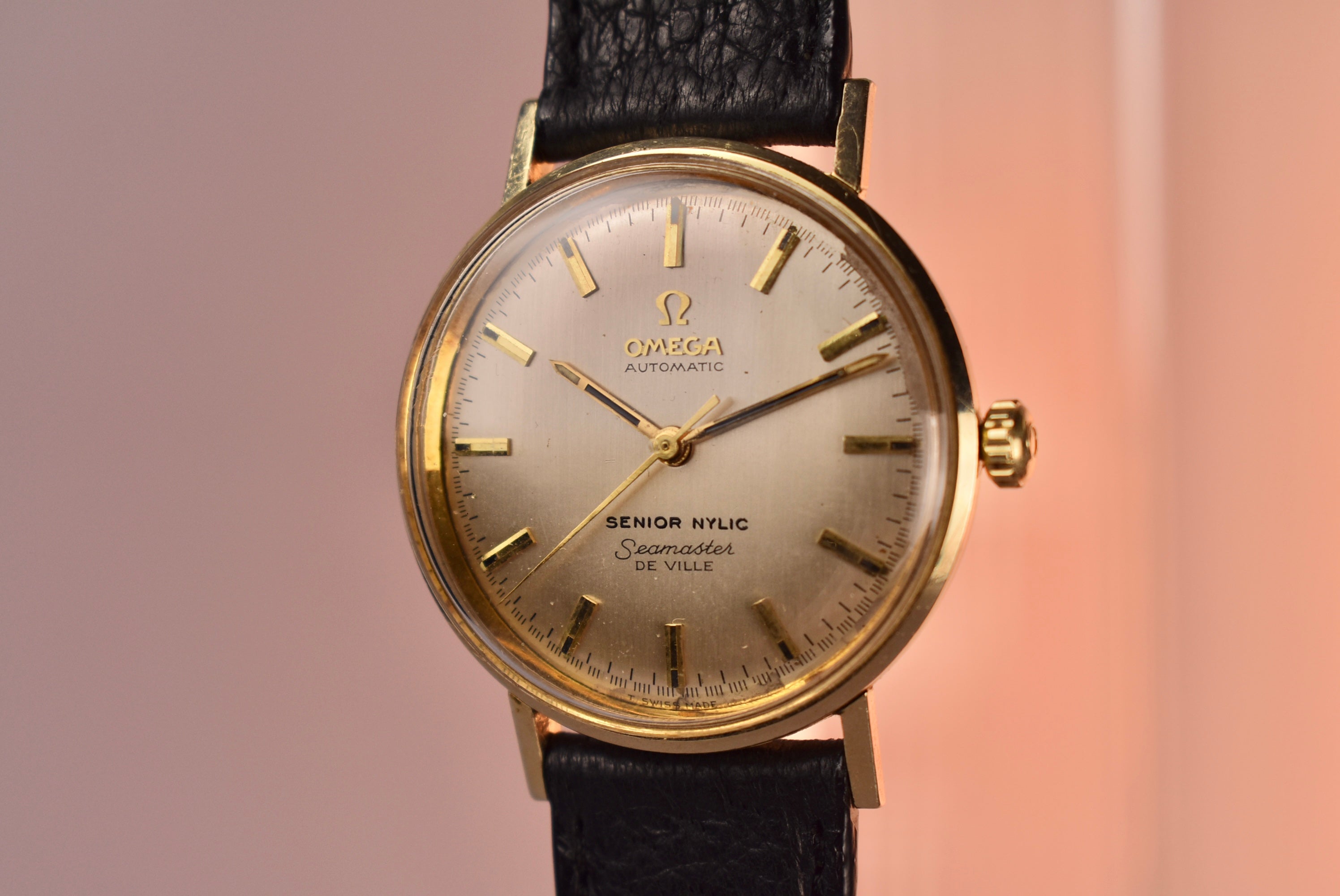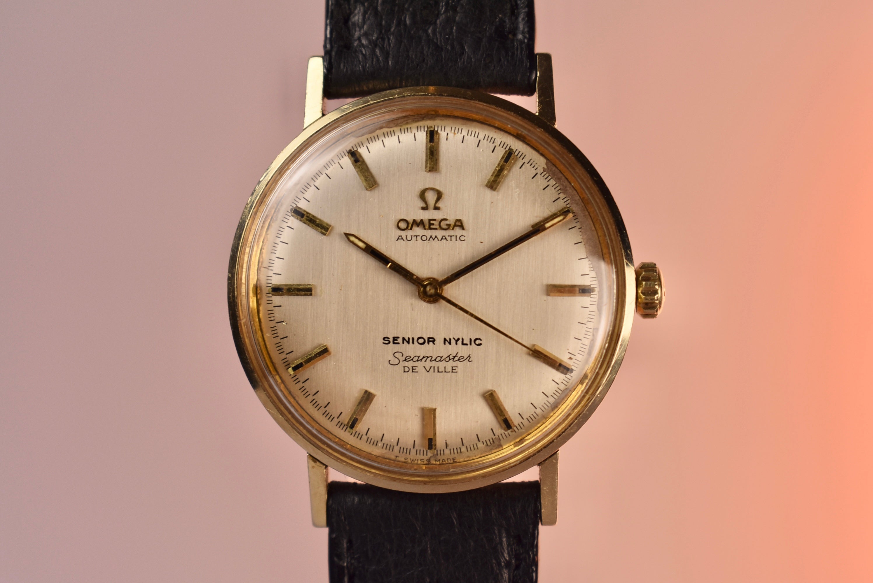 Omega will always be one of the top vintage watches you can acquire for an affordable price. Here we have a solid gold De Ville with a very rare and uncommon double-stamped dial. The stamp, Senior NYLIC, is an insurance company that used to gift solid gold Omegas to their top associates. This specific example was gifted to Roy G. Best during the holiday season, specifically, on December 1st of 1971