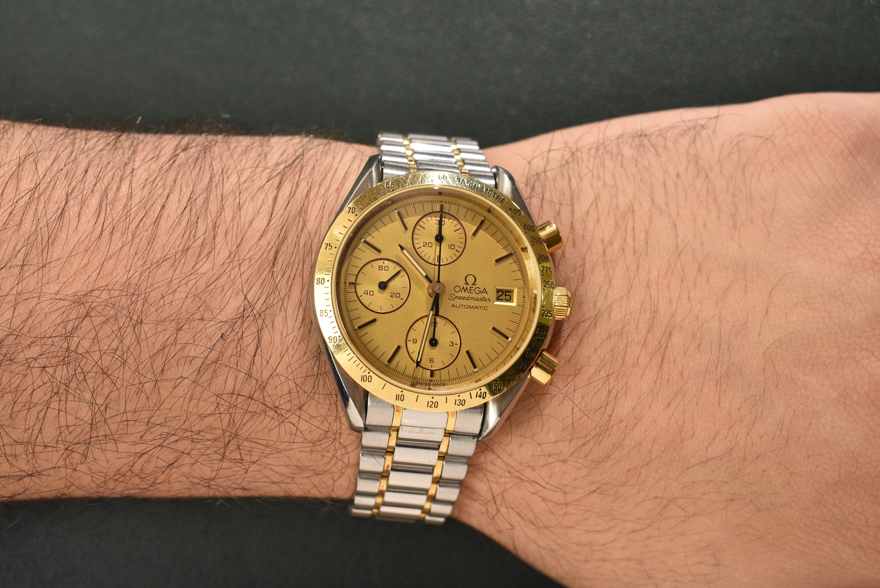 The infamous Speedmaster. To this day, the majority of the watch community has, or wants, a Speedy in their collection. Such an iconic piece from one of the biggest powerhouses in the industry. These days you can get lost in all the "editions" of the Speedmaster, but one model is still a go-to and an excellent start for the money. This iteration with its two-tone case is actually pretty rare and a nice choice for a Speedmaster with a different feel to it.