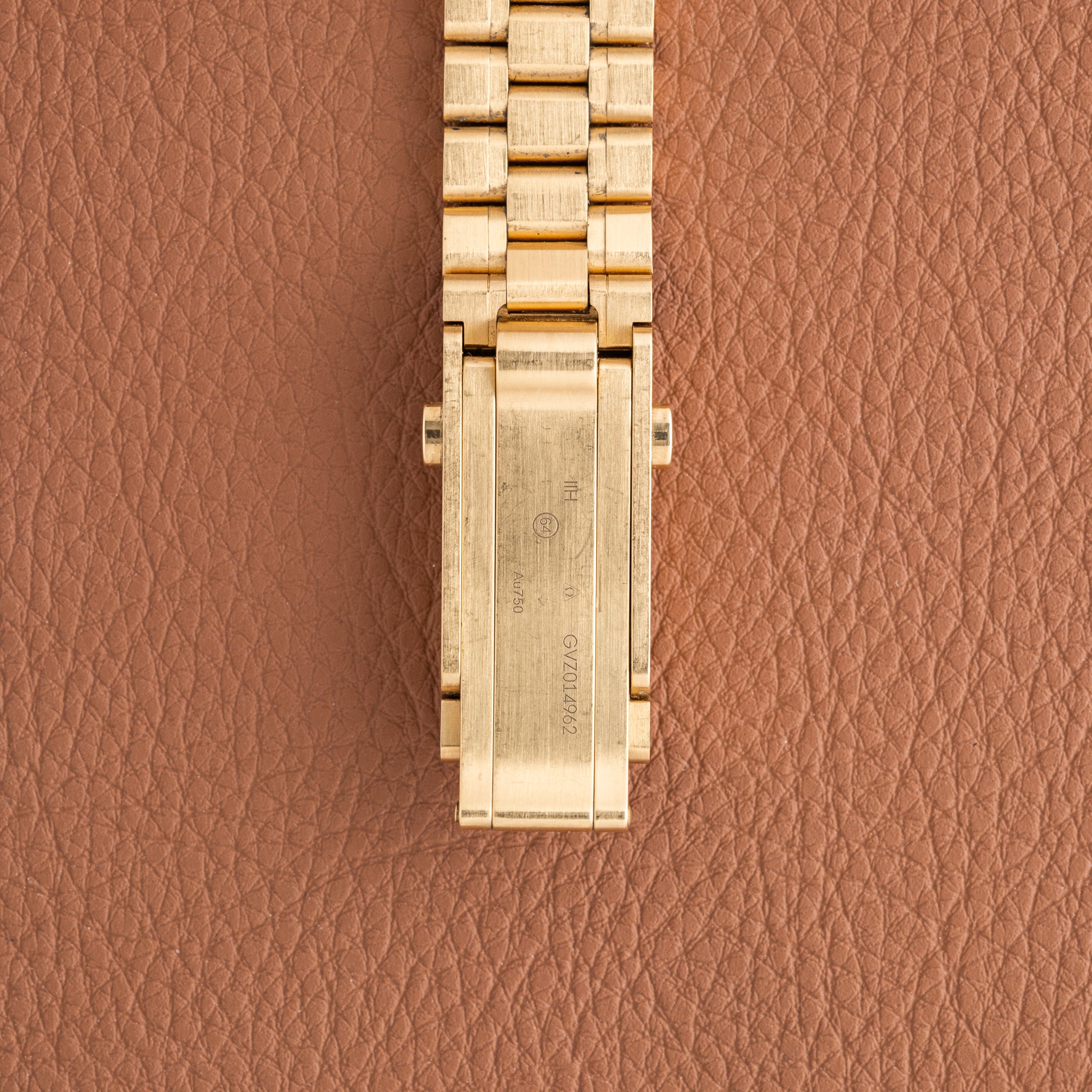 Case: Solid yellow gold case showing light surface wear consistent with regular use. Case geometry remains strong.