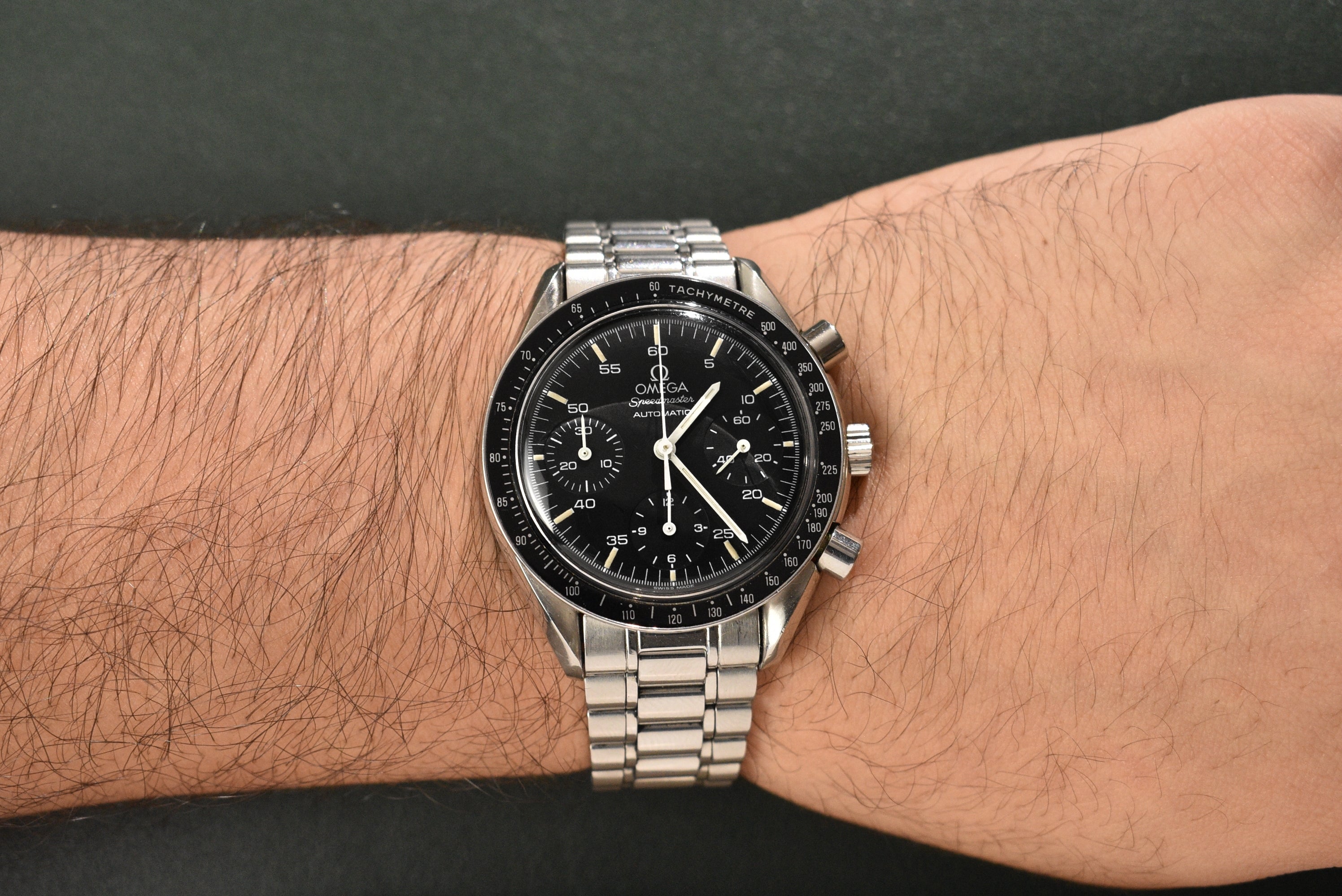 The infamous Speedmaster. To this day, the majority of the watch community has, or wants, a Speedy in their collection. Such an iconic piece from one of the biggest powerhouses in the industry. These days you can get lost in all the "editions" of the Speedmaster, but one model is still a go-to and an excellent start for the money. Omega's Speedmaster Reduced line is full of cool dials and great prices. The original reduced example comes in a similar configuration to the original Moonwatch.