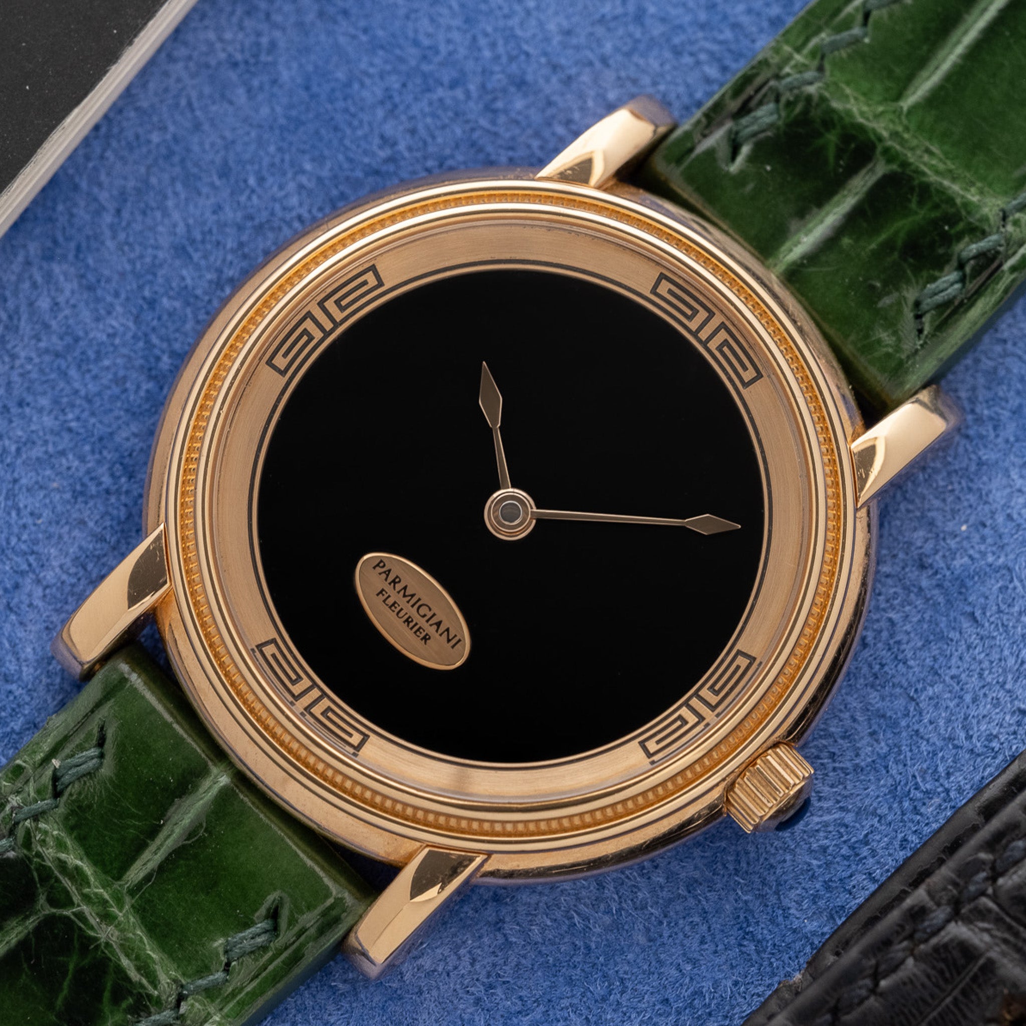 Parmigiani’s first line of watches, the Toric, was met with immediate success in the market as collectors championed the brand’s unique design. Michel Parmigiani drew inspiration from classical design, such as the Golden Ratio and Greco-Roman architecture to produce his first watches. From this inspiration, came the Toric’s most distinctive feature—its stepped bezel, which knurls around the case giving the impression of a Greco-Roman column head. These early Toric watches have become highly sought after by prominent collectors who appreciate Parmigiani’s important influence on horological design.