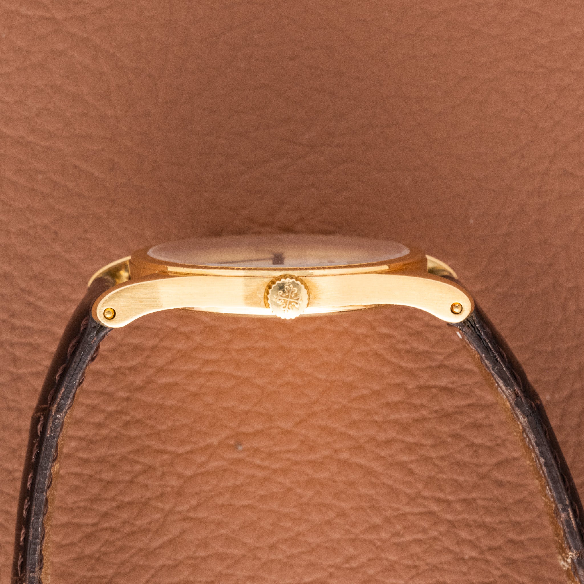 The Patek Philippe Calatrava 3796D is a faithful descendant of the original reference 96, the model that established the Calatrava line as the benchmark of understated elegance. The “D” in its reference denotes the Clous de Paris or hobnail bezel, a design signature that adds texture and depth to the small 31mm yellow gold case. This example is further distinguished by a rare Gübelin retailer signature on the dial, an indication that it was originally sold through the renowned Swiss retailer, known for its close historical relationship with Patek Philippe. Such double-signed dials are highly regarded by collectors for their added provenance and rarity.