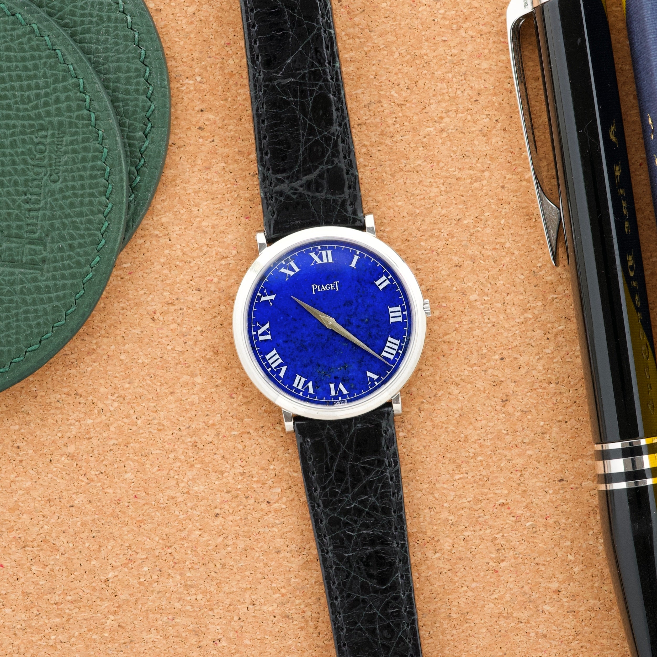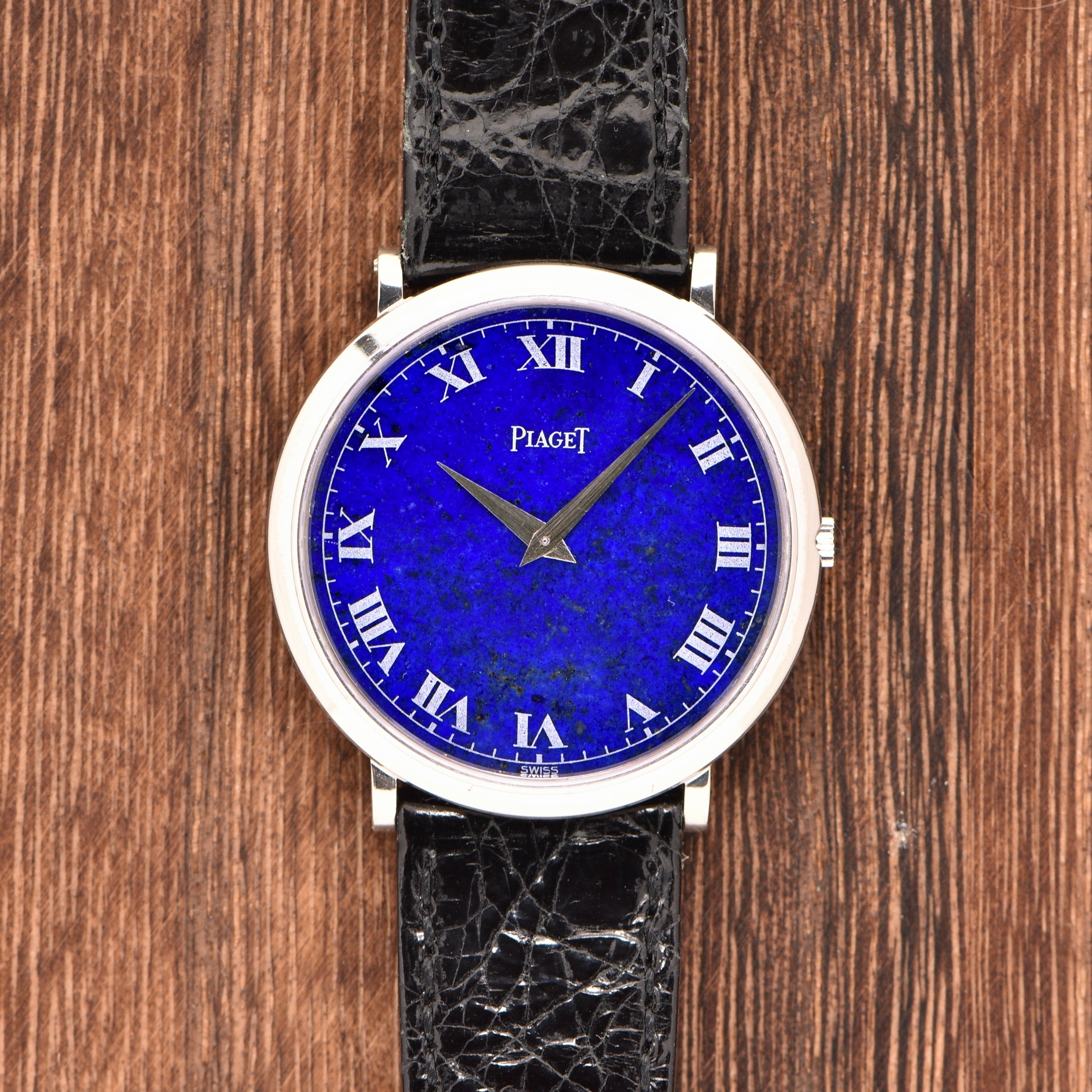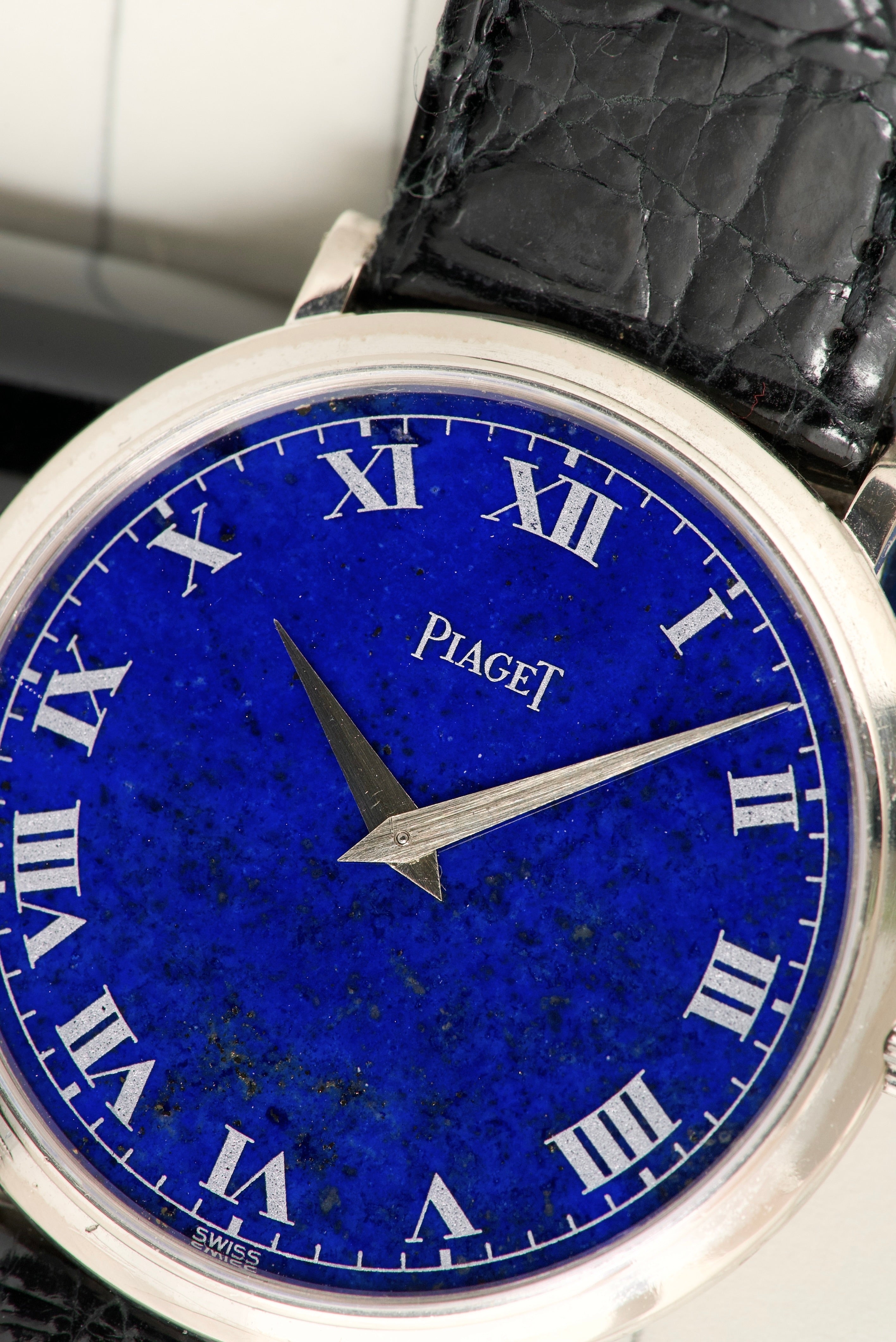 Dial: The dial is crazy good. It is a beautiful Lapis Lazuli dial with painted hour markers in silver. The stone has no cracks, and it is in phenomenal condition. The silver painted hour markers is a wonderful touch. Vintage stone dials are rarely seen with applied markers because of the probability of the stone cracking. Piaget solved the problem on the Altiplano by painting beautiful and large roman numerals.
