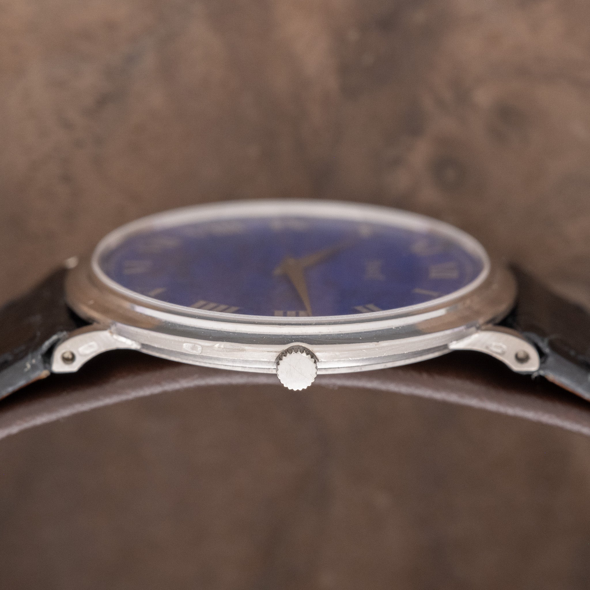 Dial: The dial is crazy good. It is a beautiful Lapis Lazuli dial with painted hour markers in silver. The stone has no cracks, and it is in phenomenal condition. The silver painted hour markers is a wonderful touch. Vintage stone dials are rarely seen with applied markers because of the probability of the stone cracking. Piaget solved the problem on the Altiplano by painting beautiful and large roman numerals.