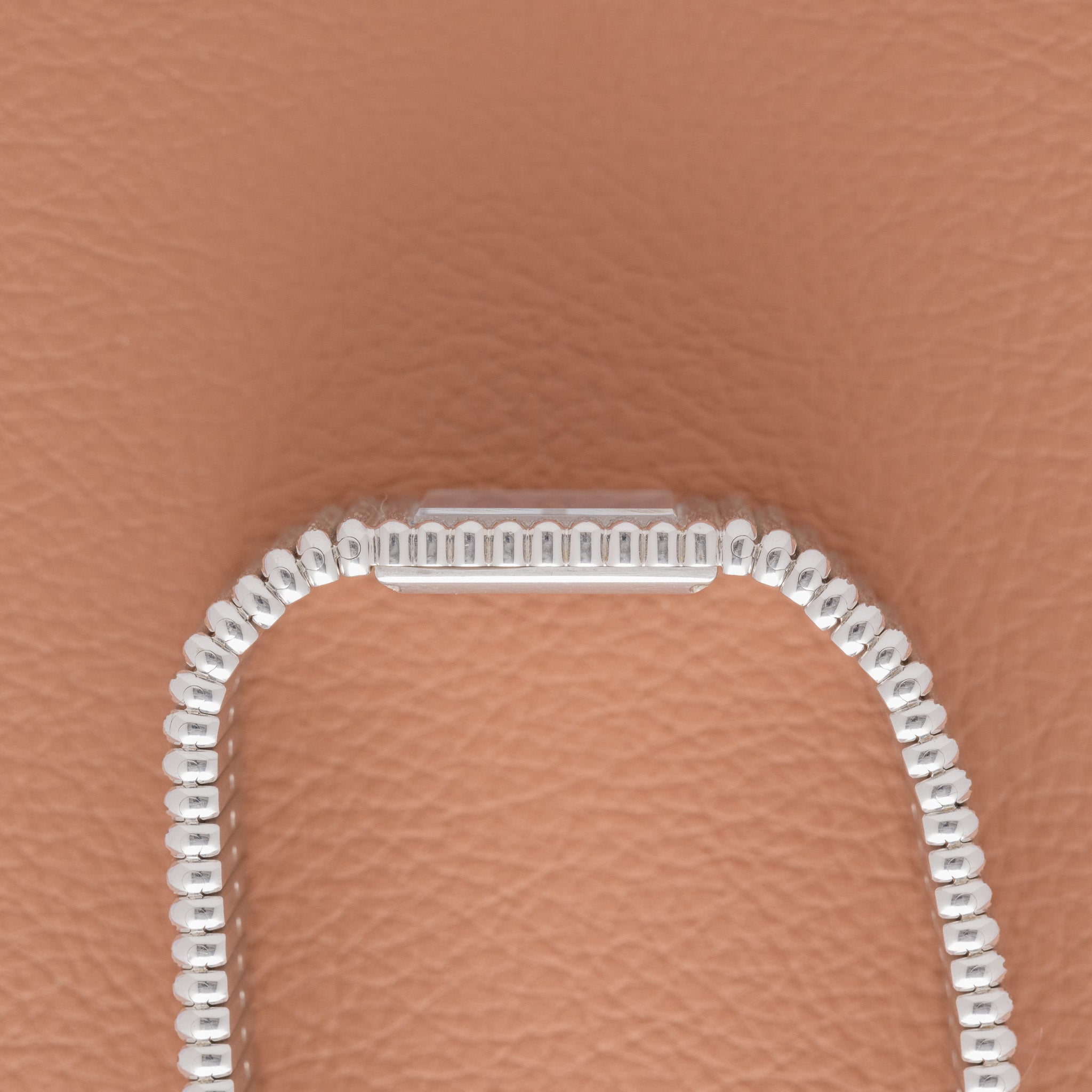 Integrated white gold bracelets from this era wear differently from modern designs. They drape smoothly and carry a certain density that feels substantial without being oversized.