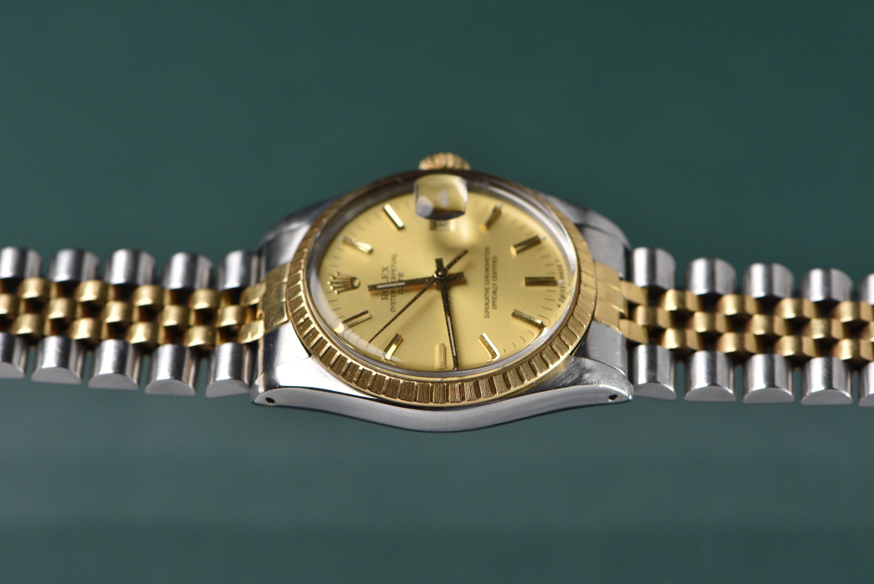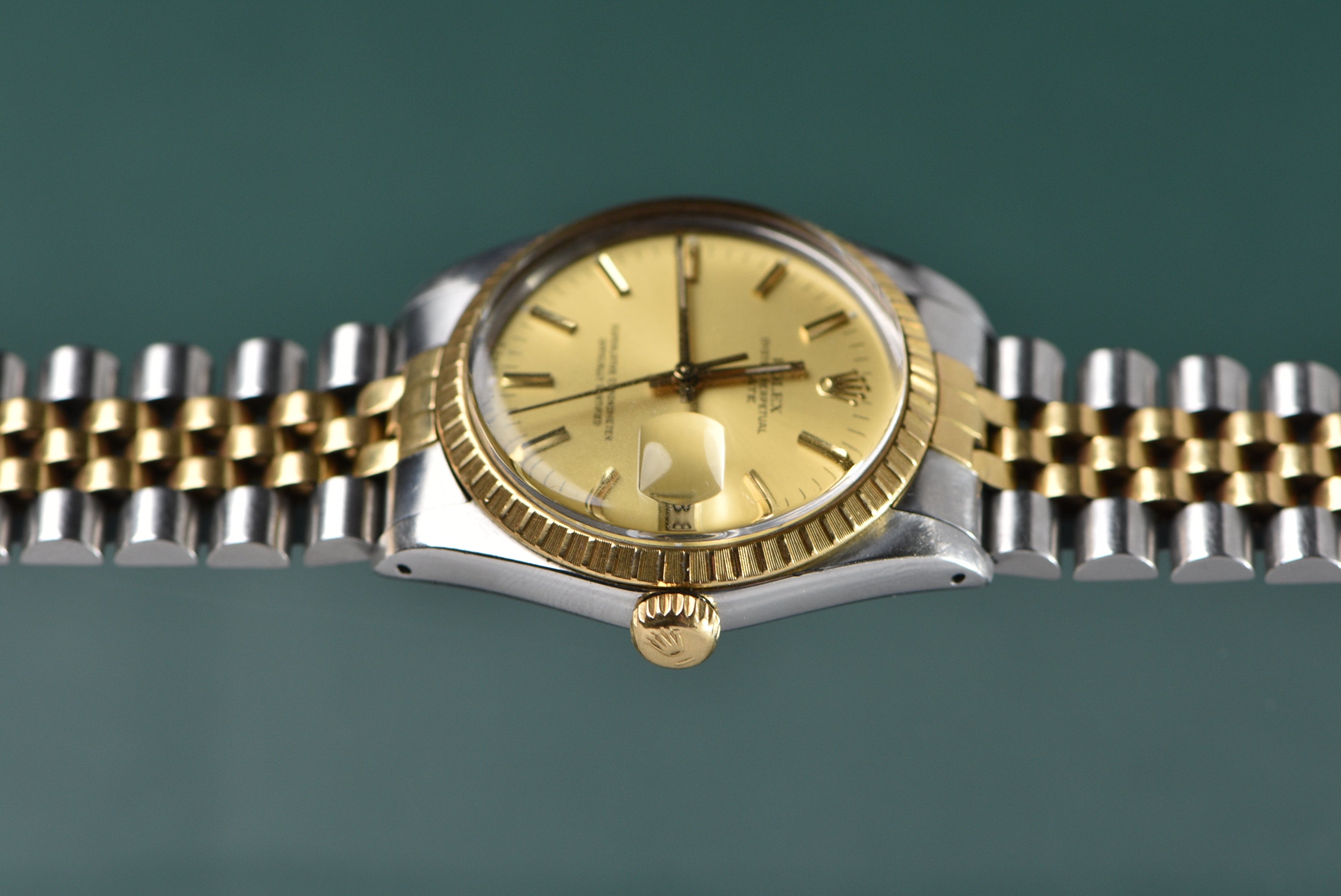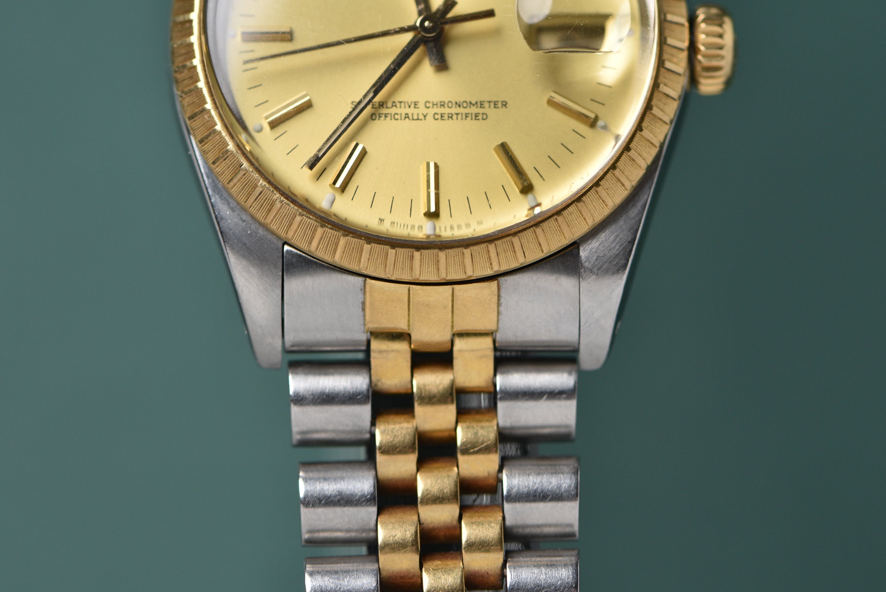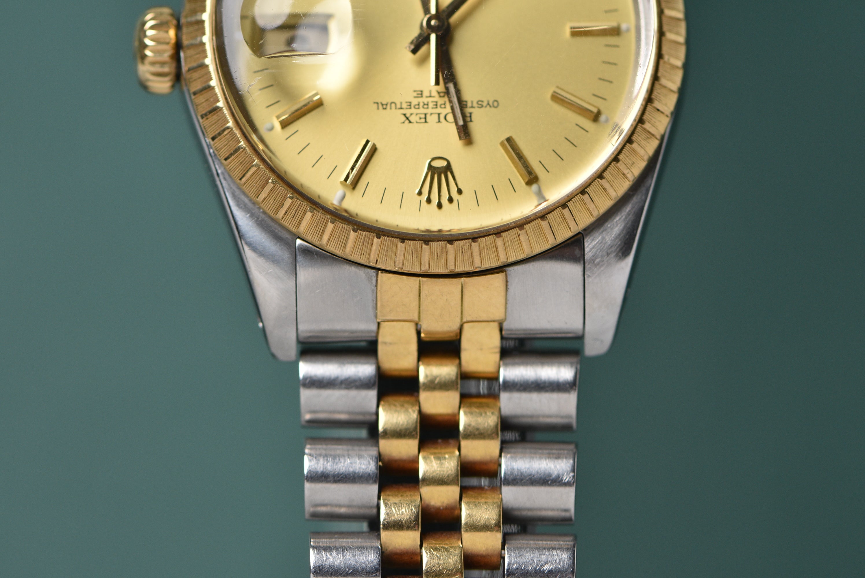 The Rolex Date makes for the perfect daily watch and an even better entry point into Rolex. Featuring an automatic movement you'd find in a vintage datejust, the reference 15053 is the 16013's little brother. What we love about this reference is the rarity, you don't really ever find this in the wild. The best part is the champagne dial and two-tone configuration make this 34mm Date wear bigger.