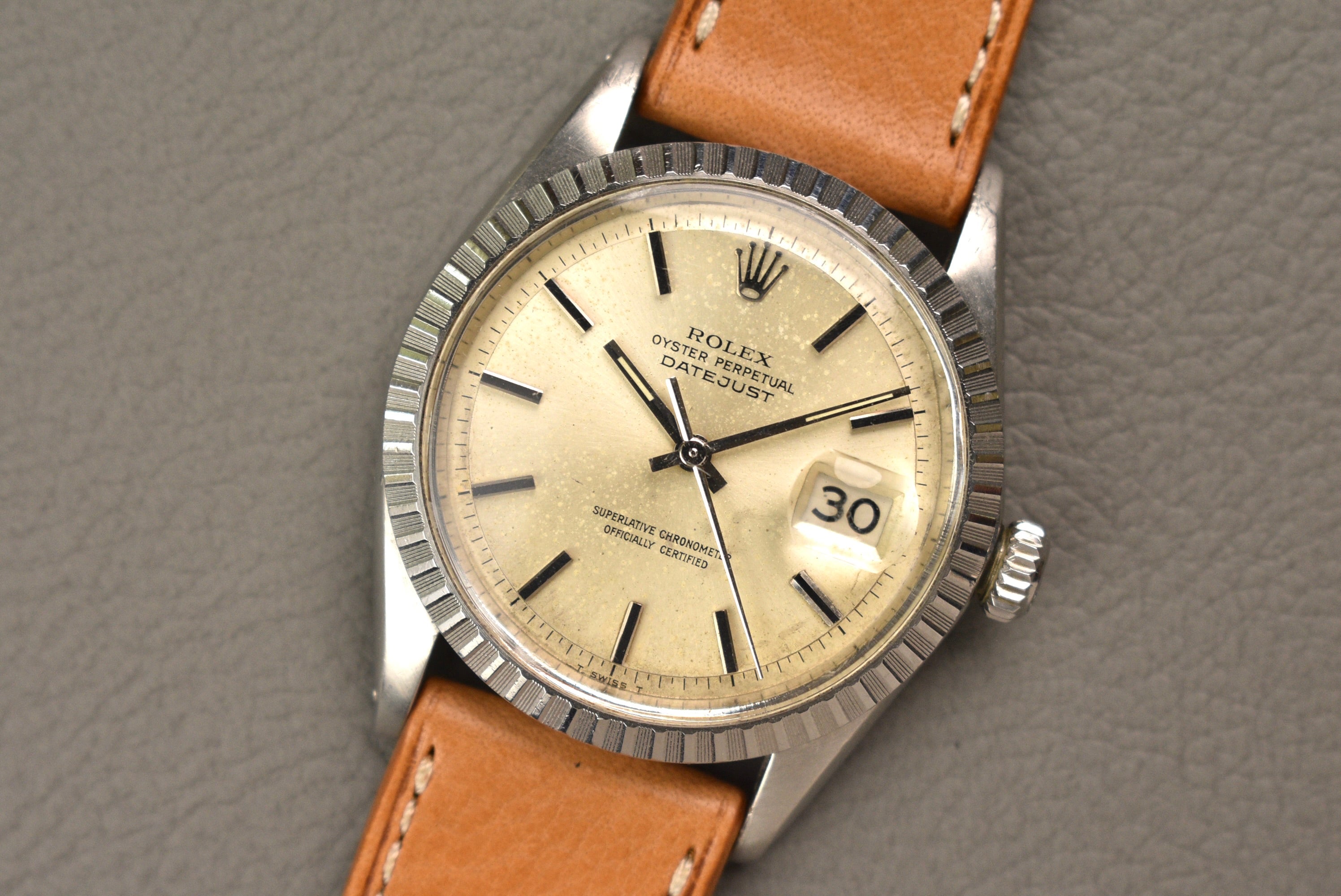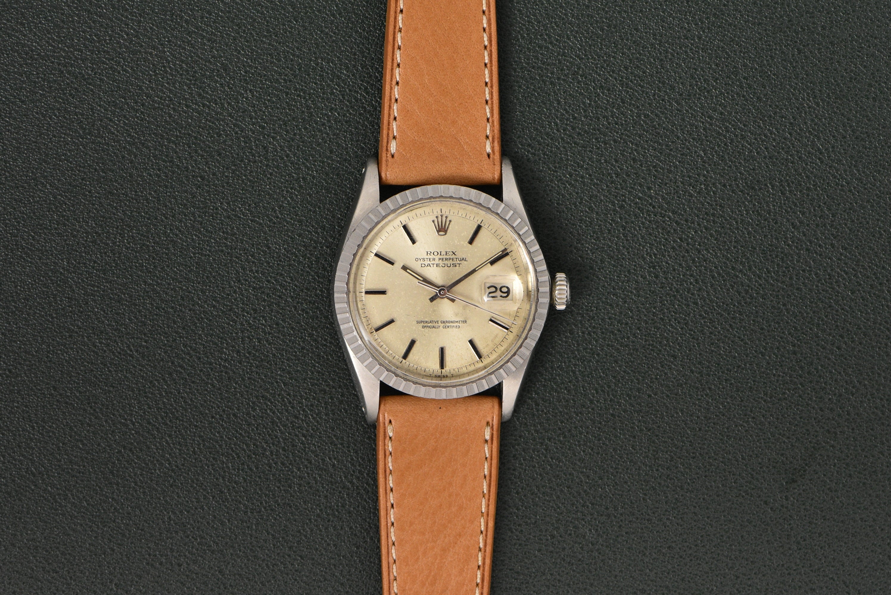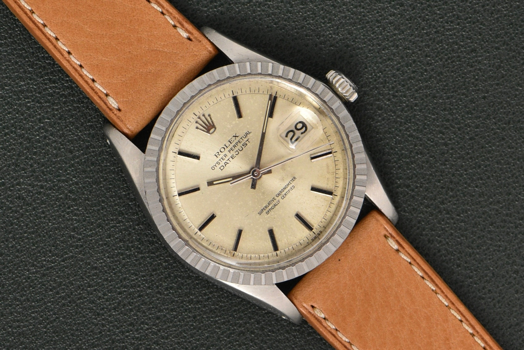 The 4-digit Datejust is a great start to any Rolex obsession or a perfect addition to a well-put-together collection. Featuring a pie pan dial, the 4-digit Datejust has a nice vintage feel to it while still showing a sense of sophistication. From two-tone Sigma dials to all steel blue dials, the 1601 and 1603 have many fun configurations. On top of that, the prices are great, and the 36mm case wears like a dream. It's always fun to find small differences in vintage Rolex. This specific one, comes cased with the reference 1601-3 before they had their own reference compared to the 1601.