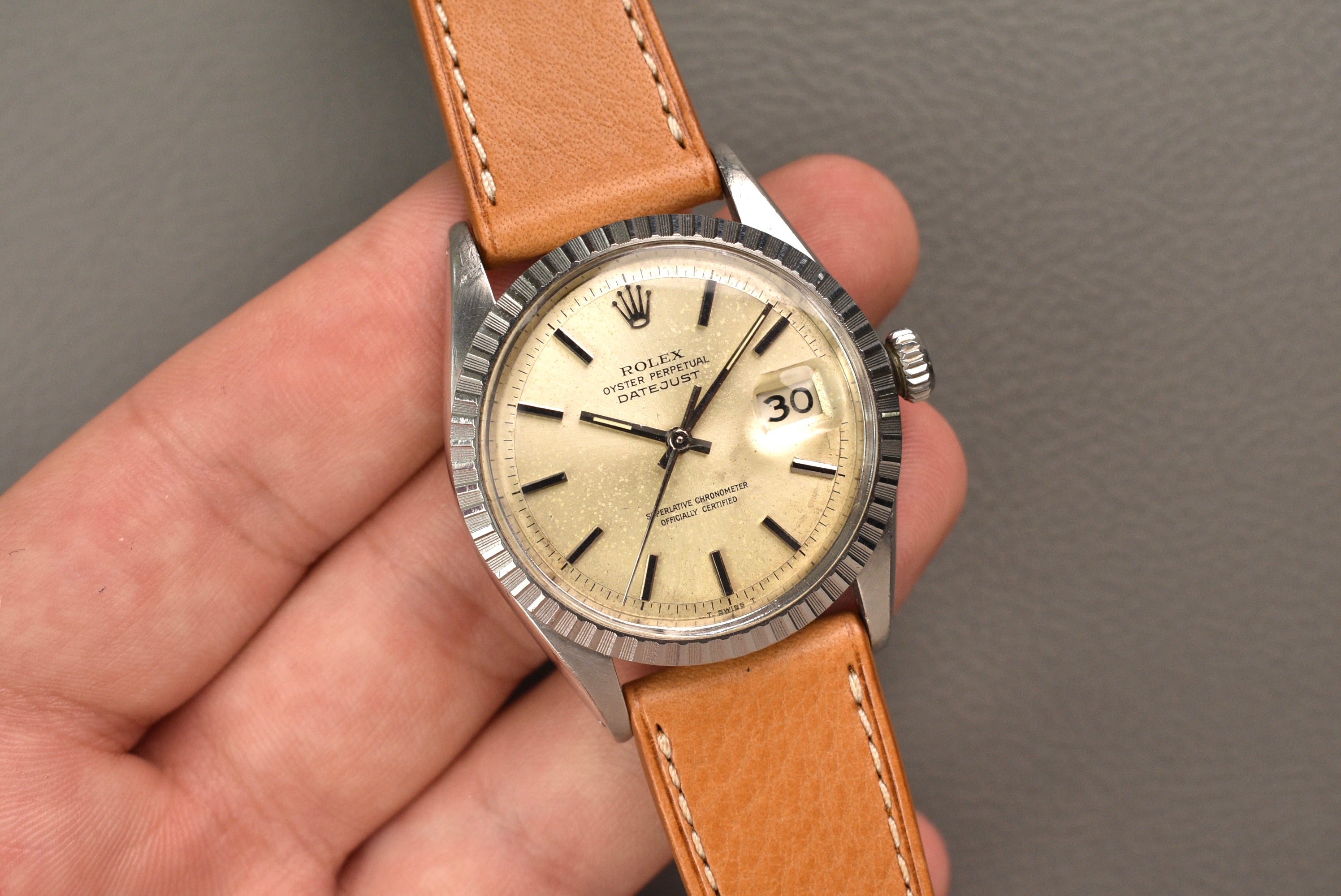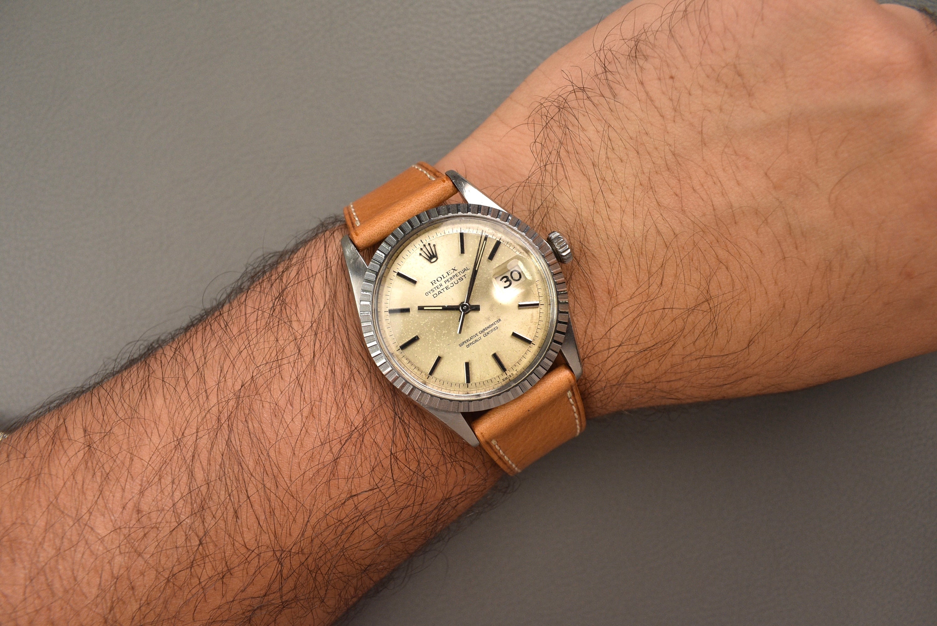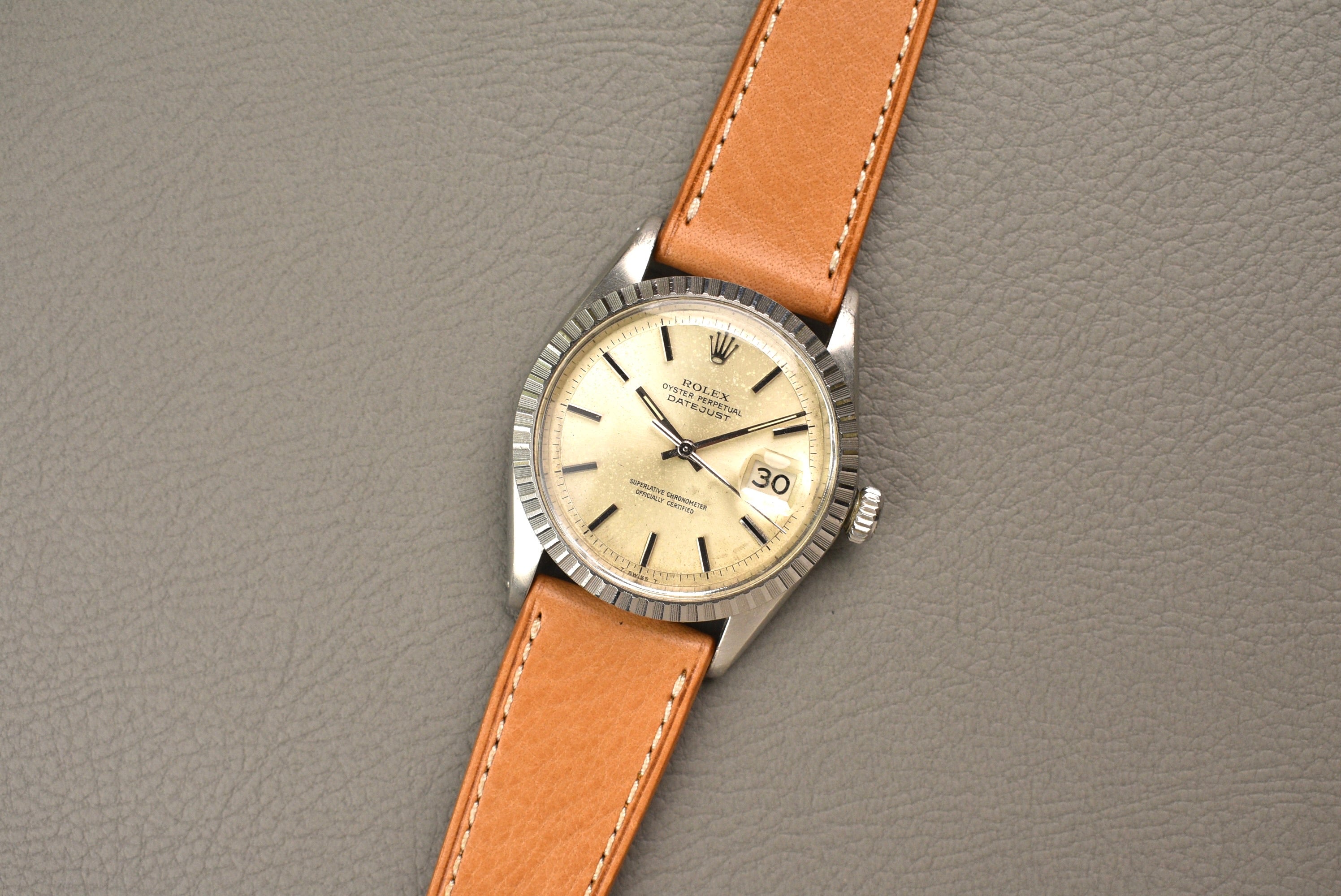 The 4-digit Datejust is a great start to any Rolex obsession or a perfect addition to a well-put-together collection. Featuring a pie pan dial, the 4-digit Datejust has a nice vintage feel to it while still showing a sense of sophistication. From two-tone Sigma dials to all steel blue dials, the 1601 and 1603 have many fun configurations. On top of that, the prices are great, and the 36mm case wears like a dream. It's always fun to find small differences in vintage Rolex. This specific one, comes cased with the reference 1601-3 before they had their own reference compared to the 1601.