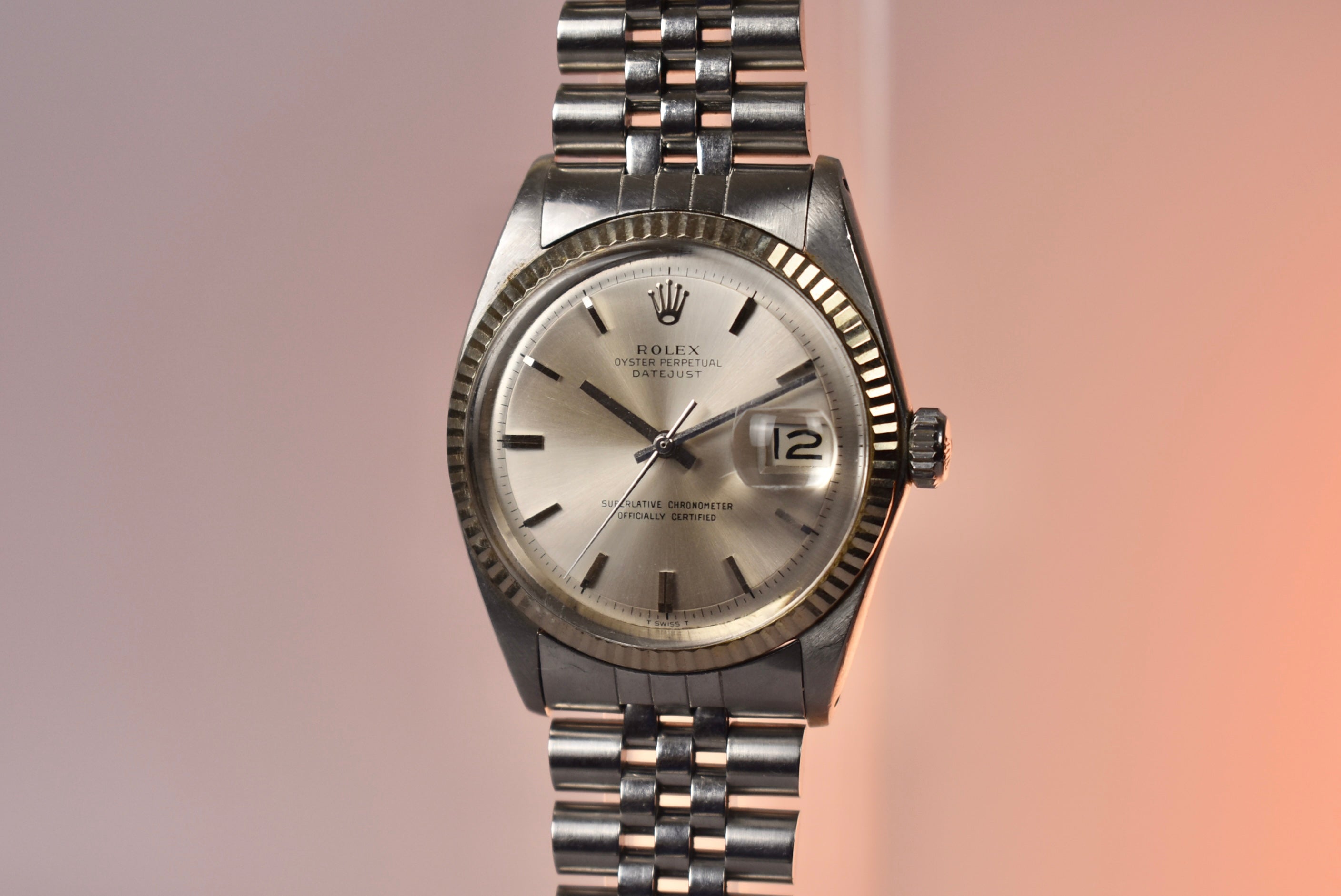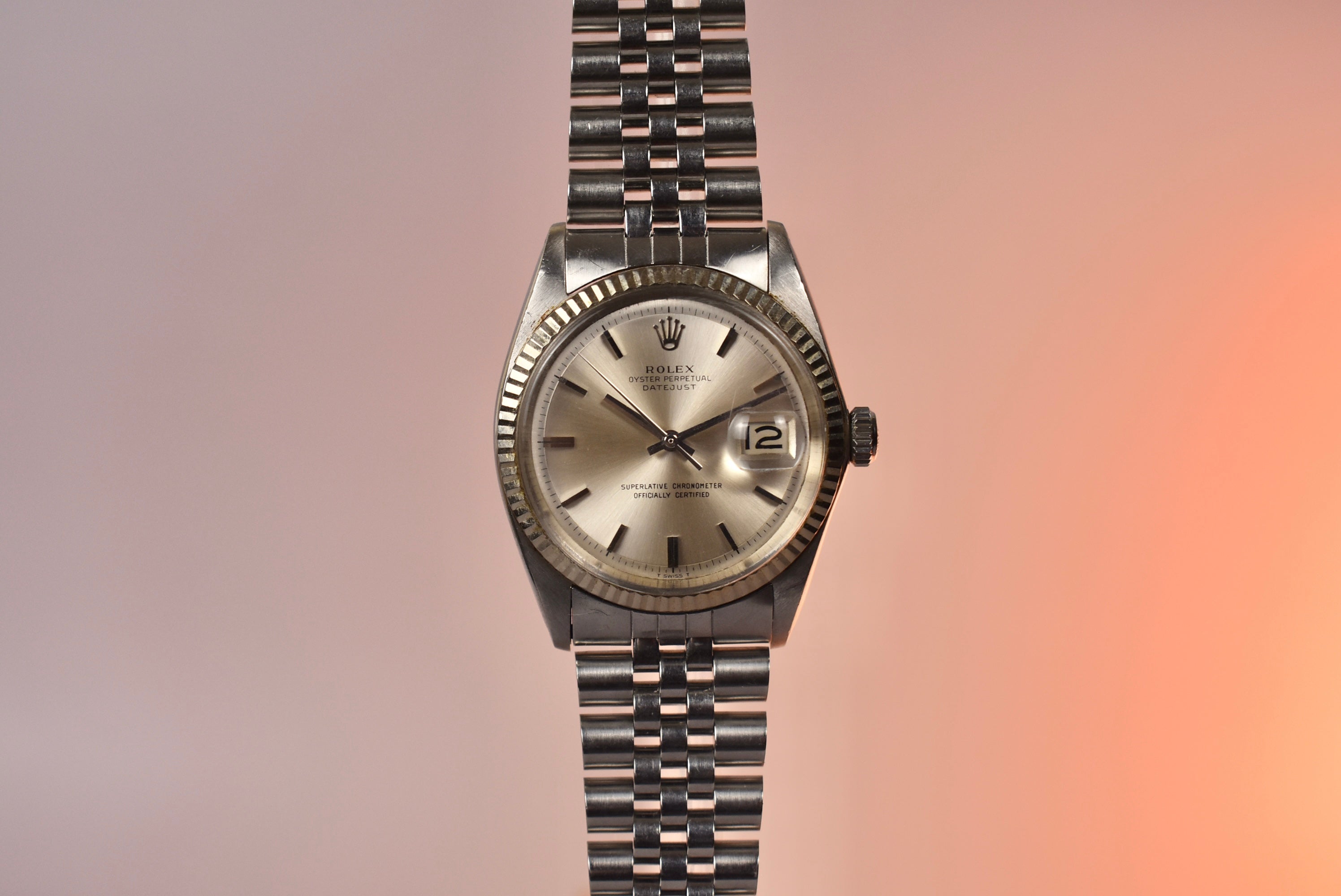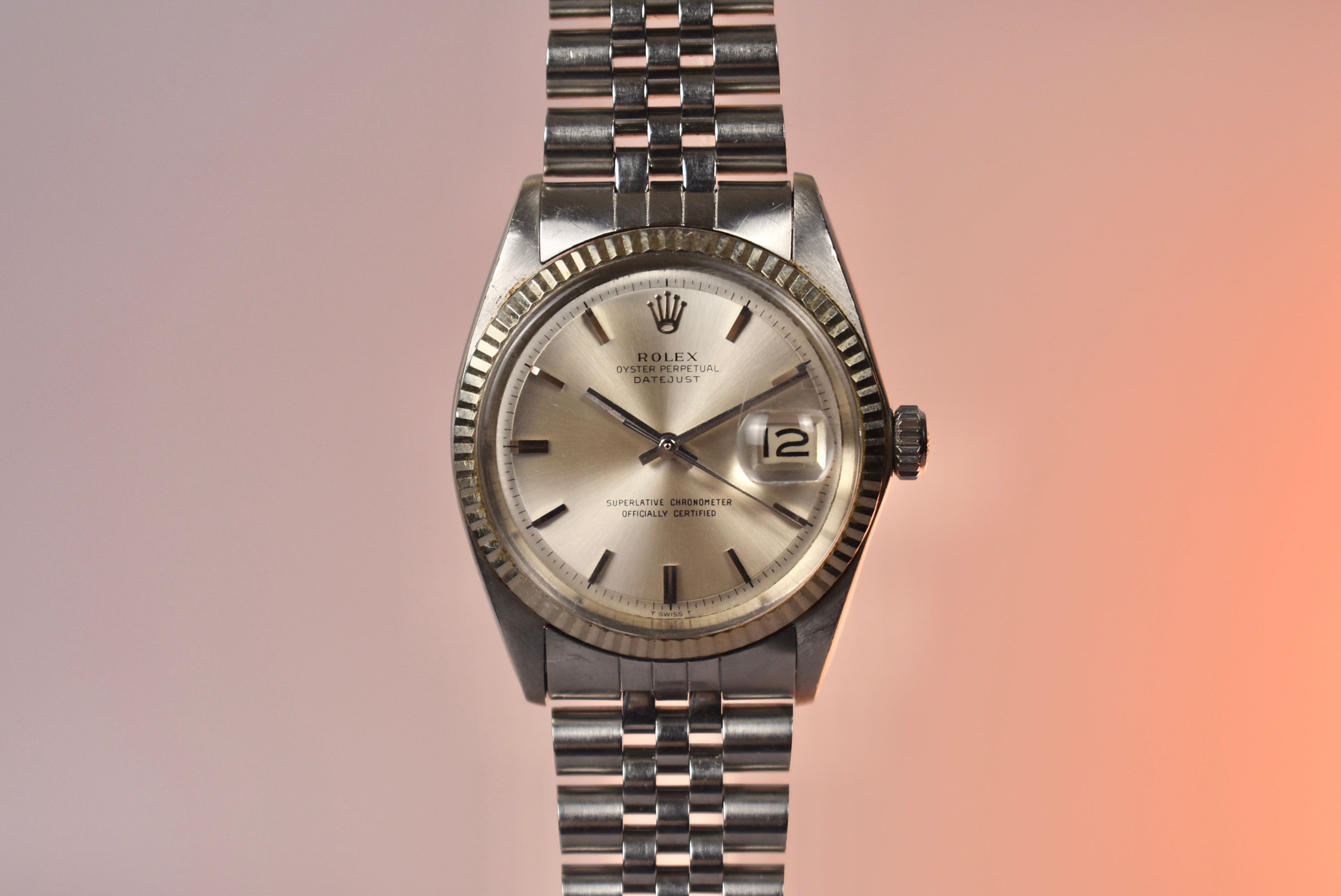 The 1601 is a great start to any Rolex obsession or even a perfect addition to a well put together collection. Featuring a pie pan dial, the 1601 has a nice vintage feel to it while still showing a sense of sophistication. From two tone sigma dials to all steel blue dials, the 1601 has so many fun configurations. On top of that, the prices are great and the 36mm case wears like a dream. This example features a simple silver dial with non-lume hands and hour markers. The hour markers, if you look closely, are also a bit more special then the normal stick markers you might find.