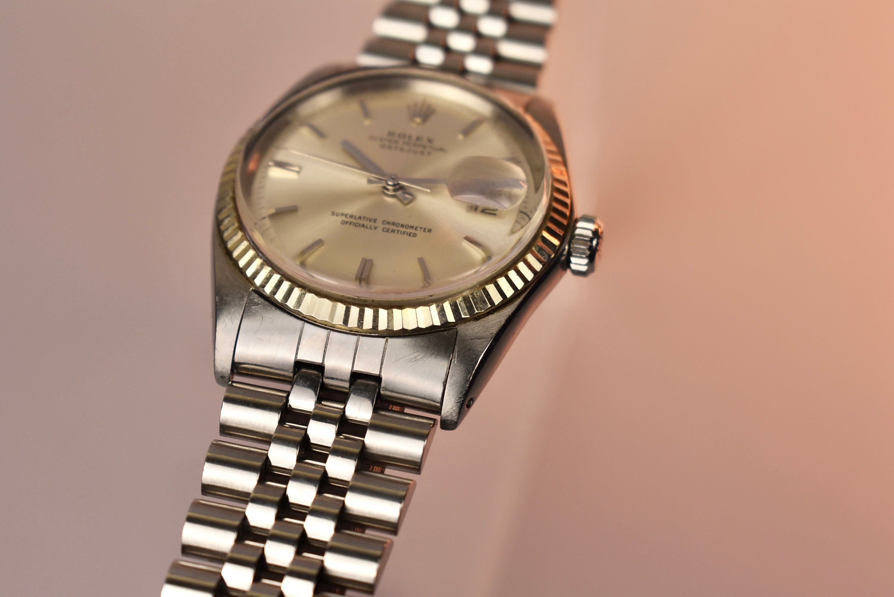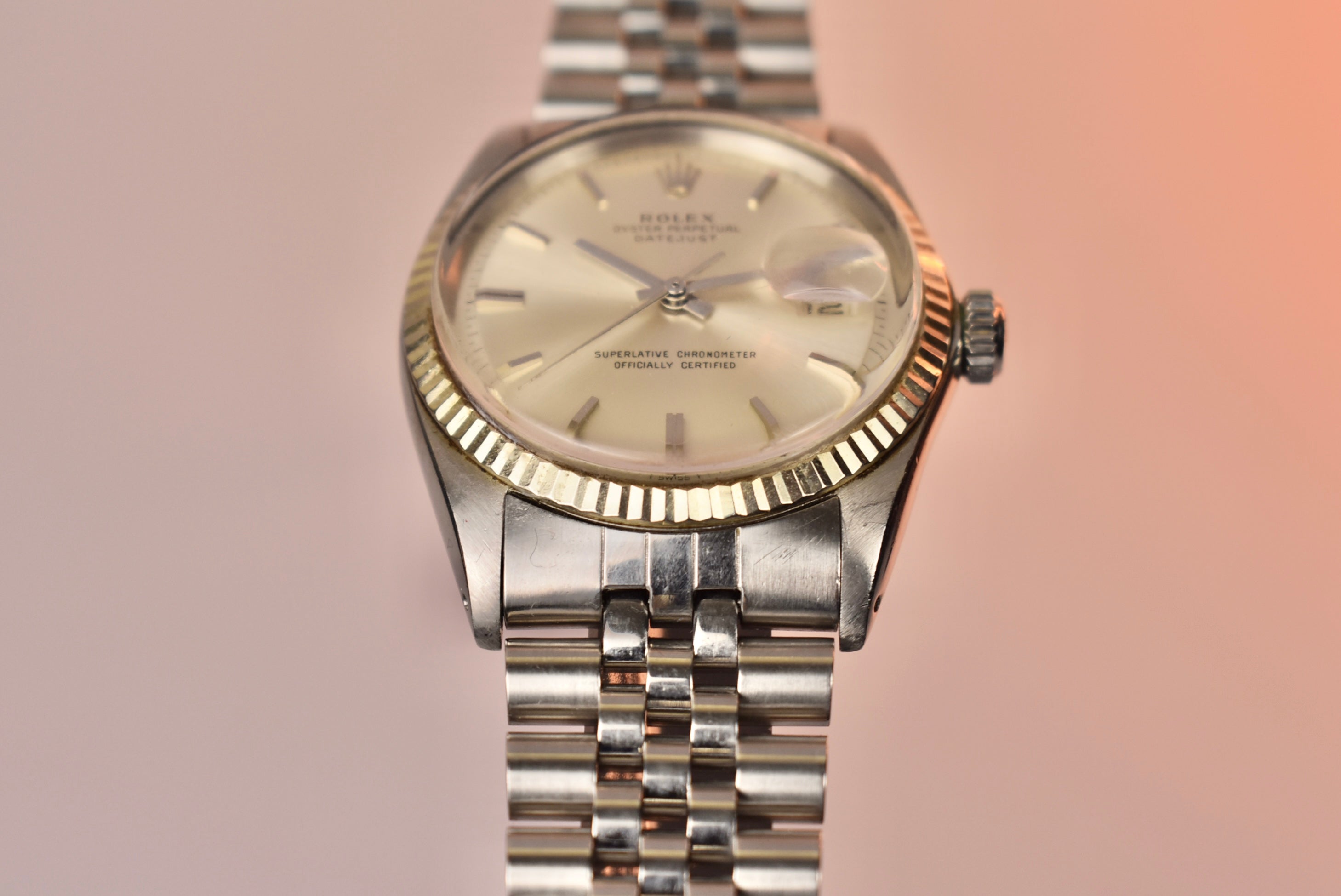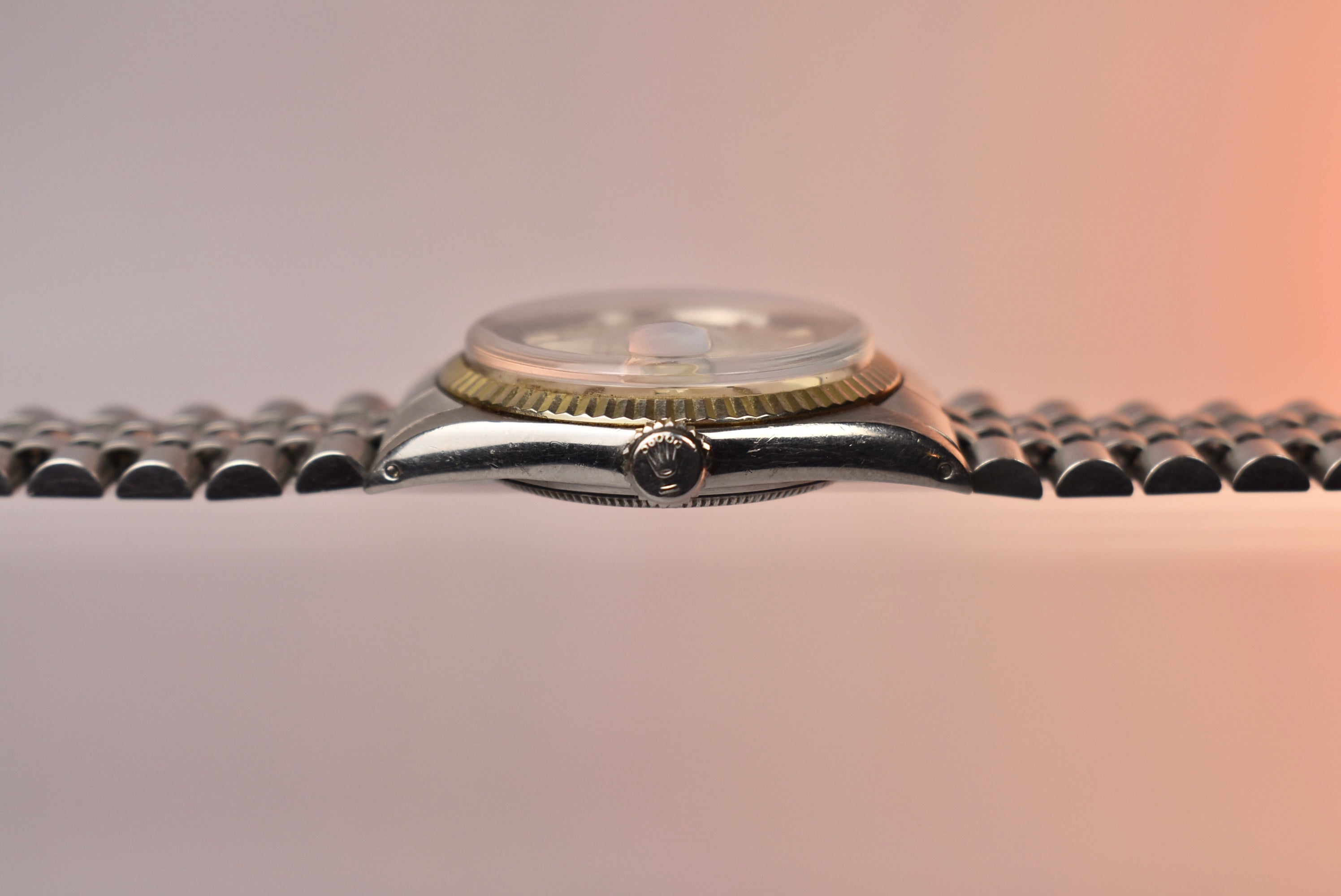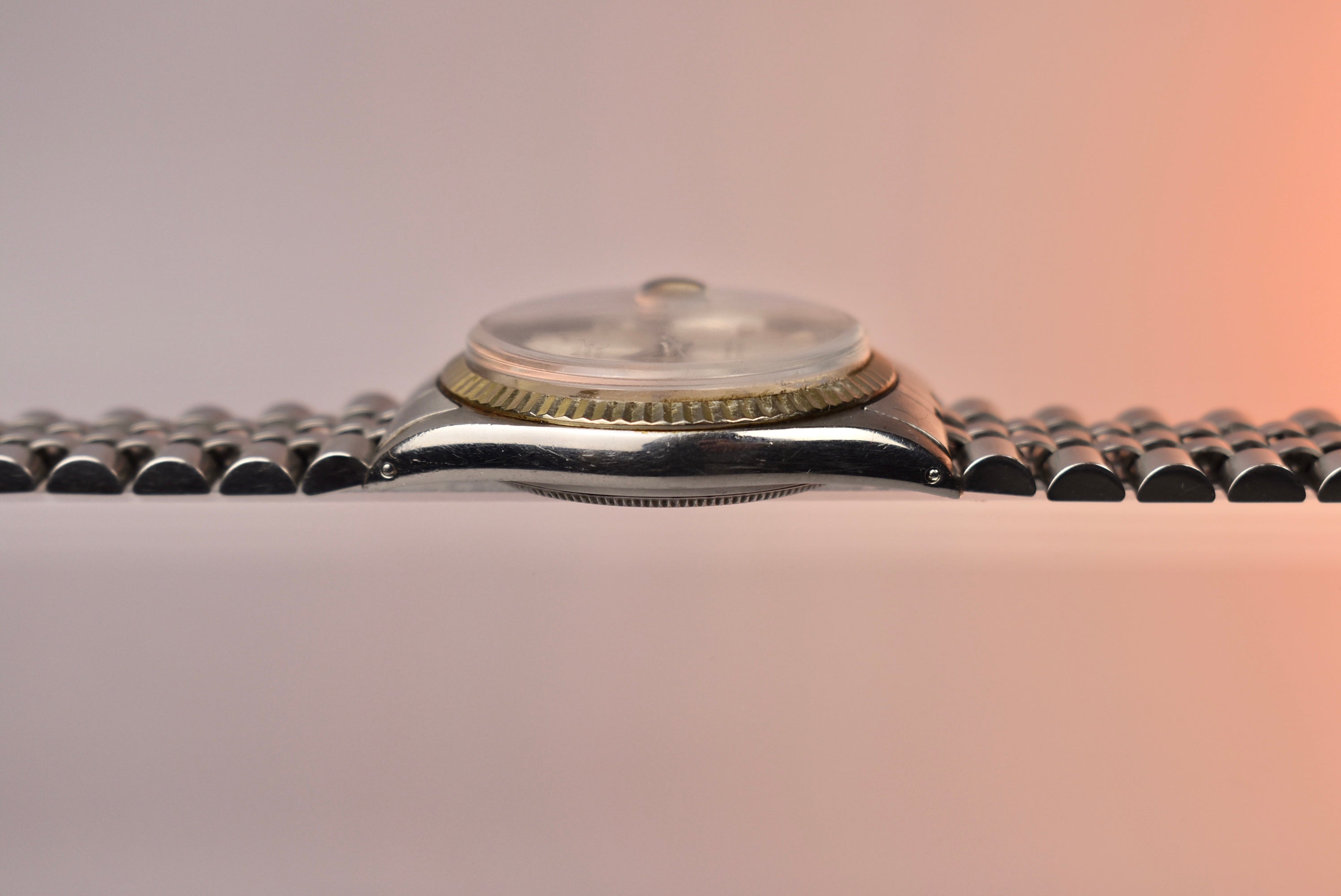 The 1601 is a great start to any Rolex obsession or even a perfect addition to a well put together collection. Featuring a pie pan dial, the 1601 has a nice vintage feel to it while still showing a sense of sophistication. From two tone sigma dials to all steel blue dials, the 1601 has so many fun configurations. On top of that, the prices are great and the 36mm case wears like a dream. This example features a simple silver dial with non-lume hands and hour markers. The hour markers, if you look closely, are also a bit more special then the normal stick markers you might find.