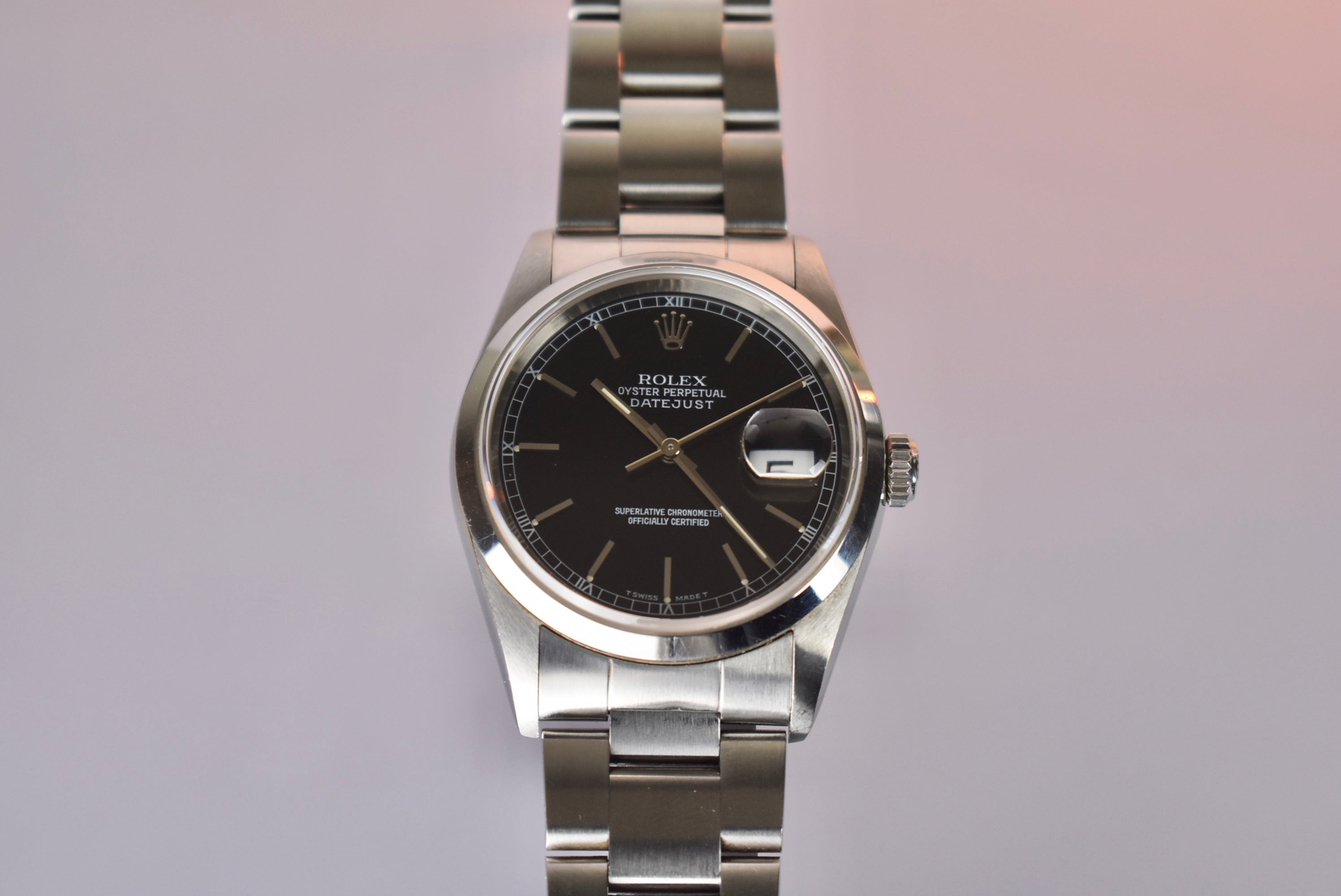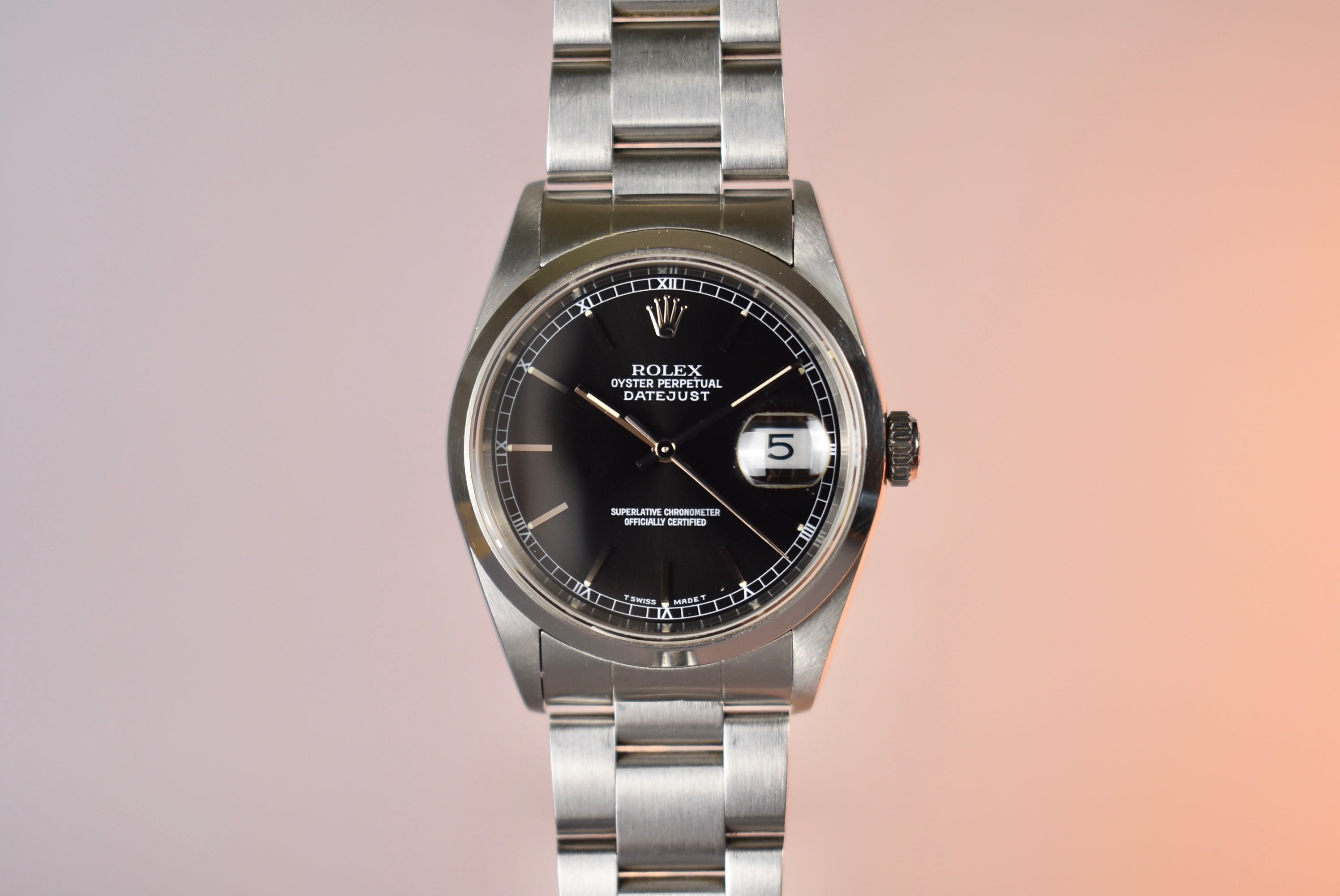 The new Oyster Perpetuals are awesome but if you’re looking for a similar, more affordable, model this is the one for you. A clean black dial with date makes this a great everyday piece..