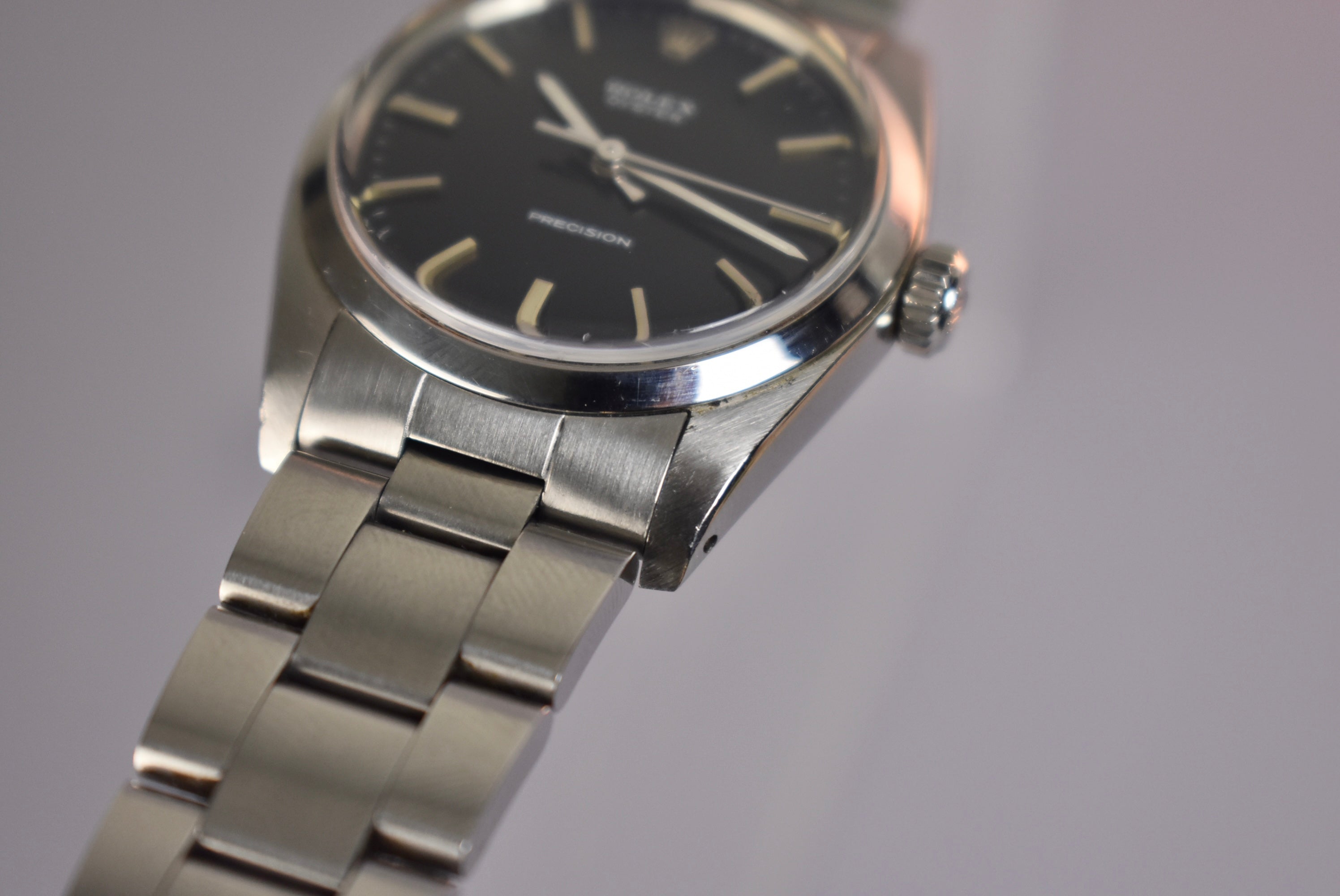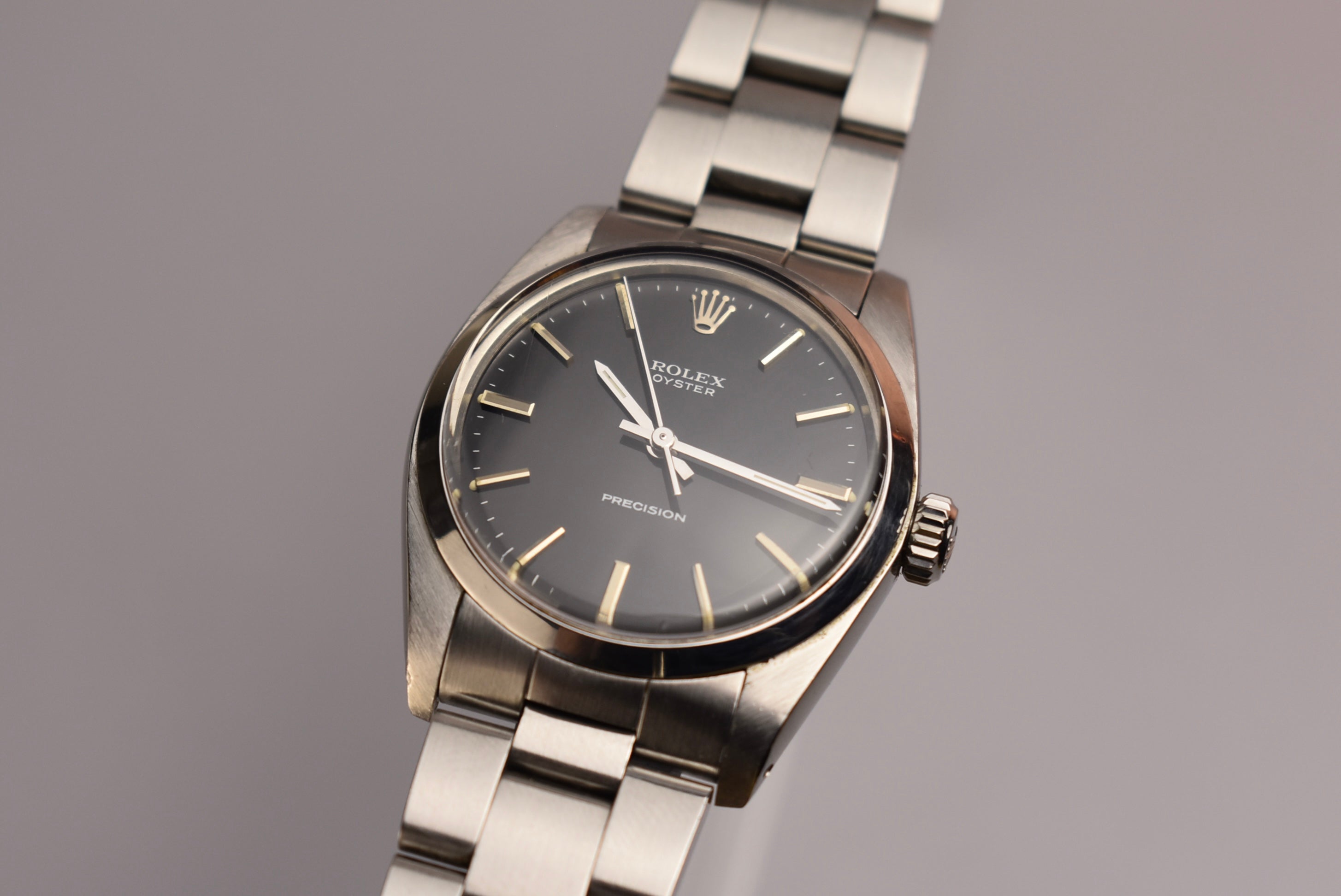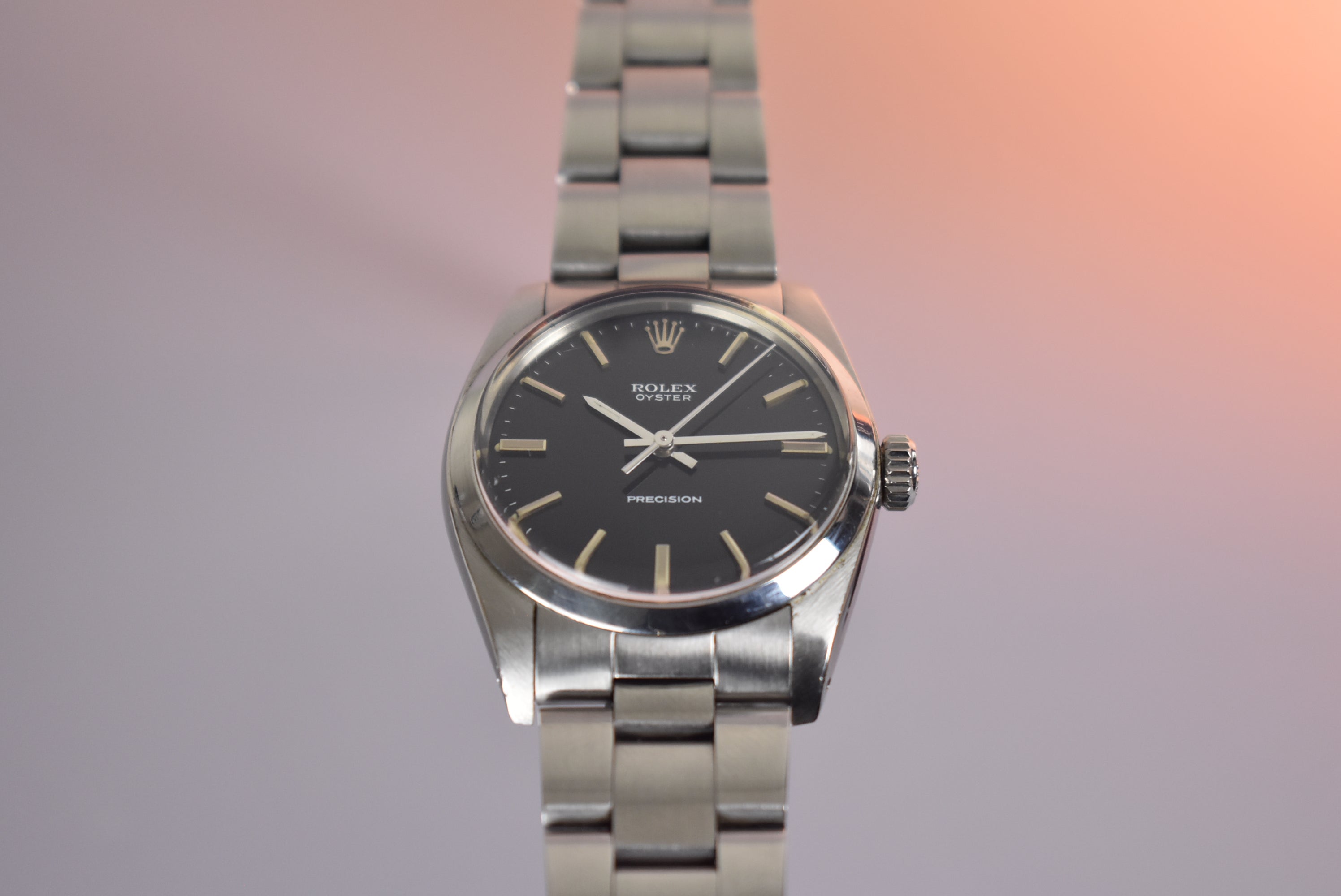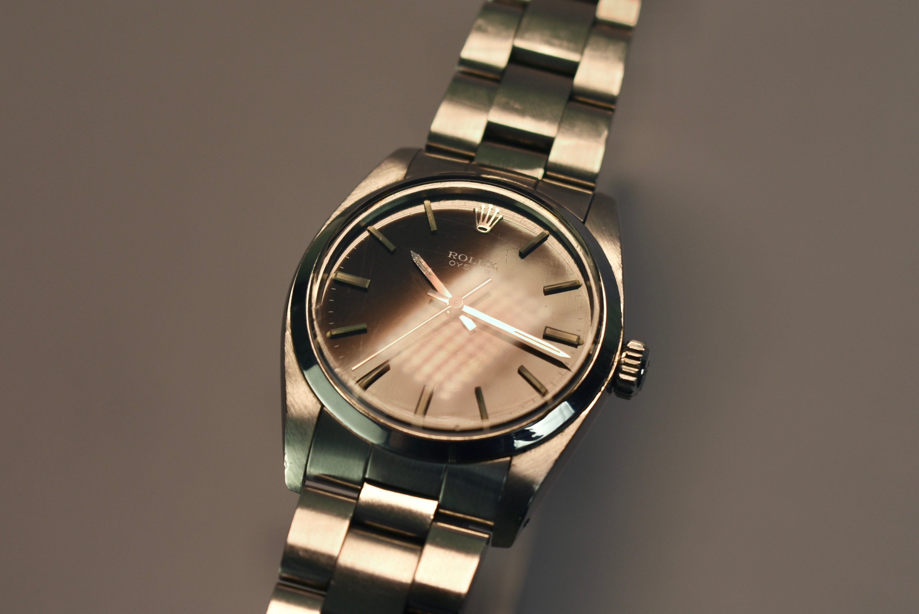 Dating back to the mid '80s, this 6426 was one of the last Rolex No-Date Oysters produced. This example features a super clean and rare gloss black dial. The case is still super sharp and the bracelet is tight. A lot of people shy away from the 34mm cases but i think they wear great for an average wrist. In my opinion, a smooth bezel 34mm is very comfortable and something about them make suede straps the perfect combo.