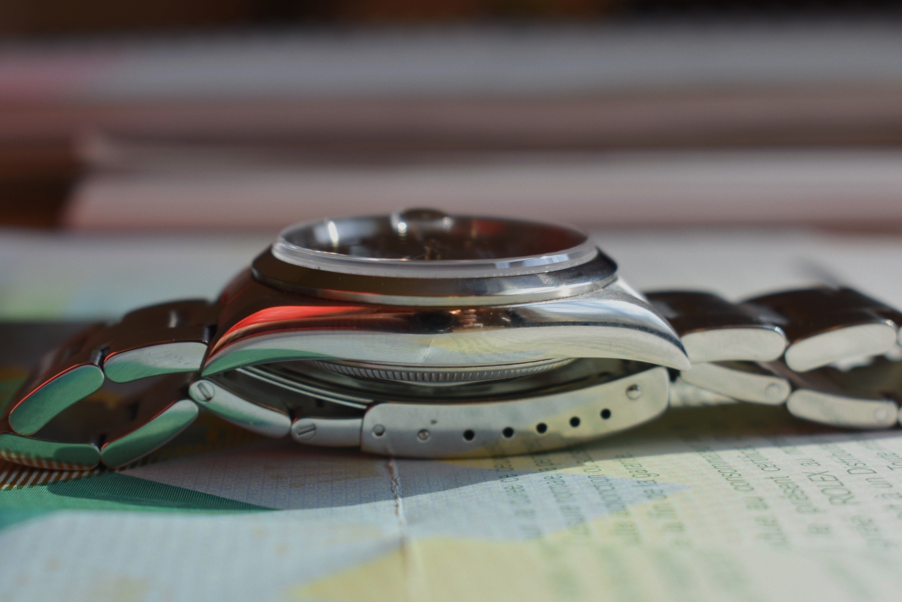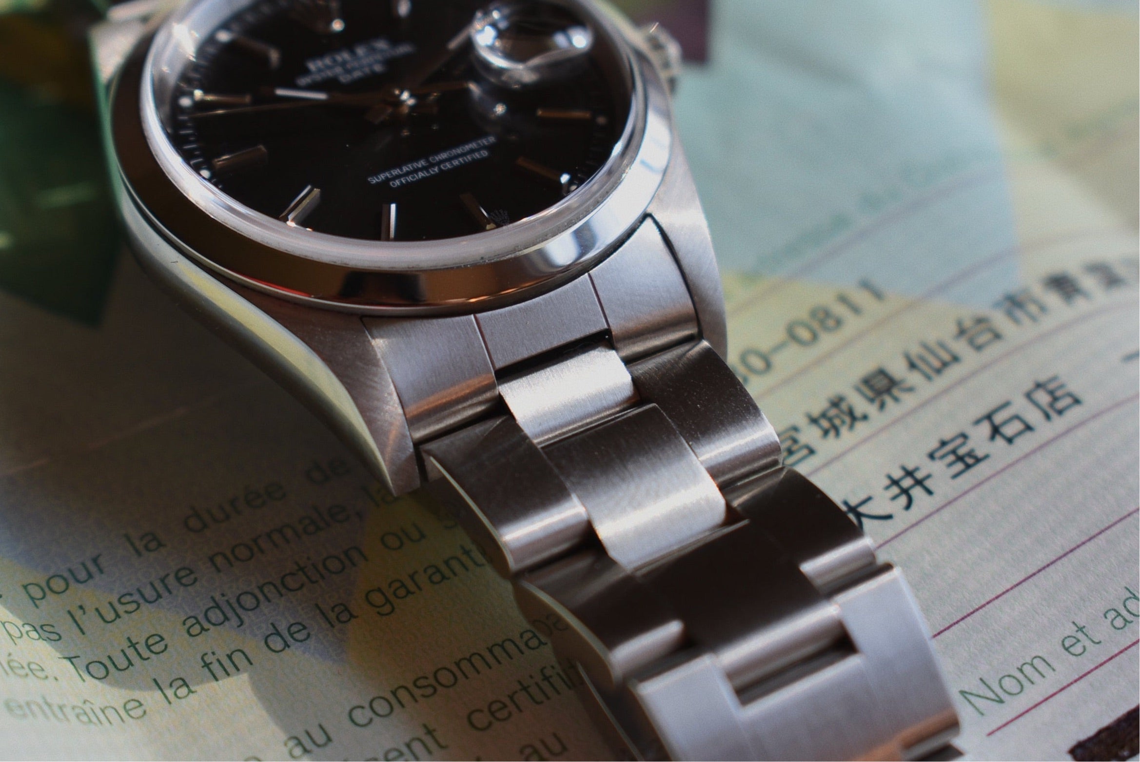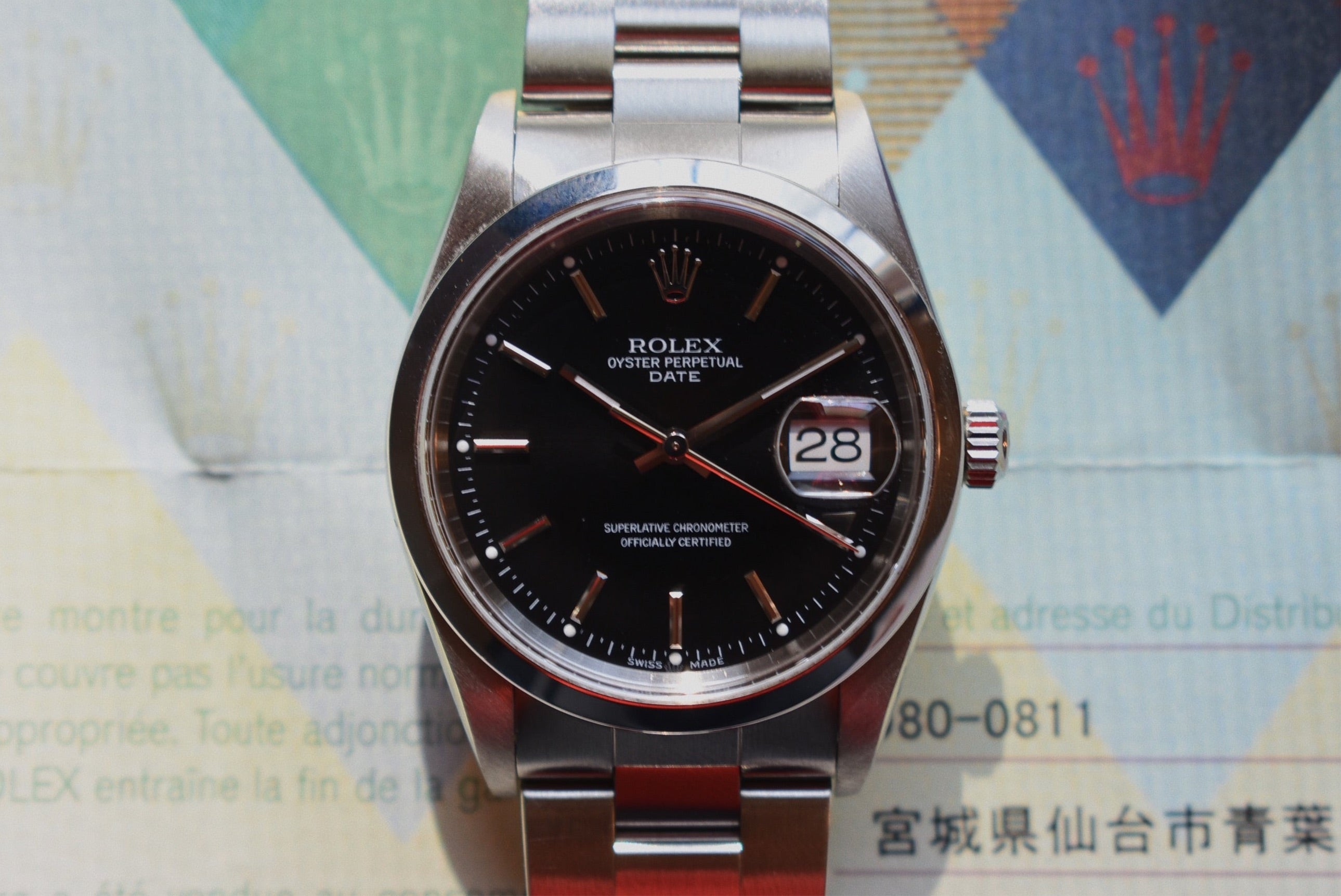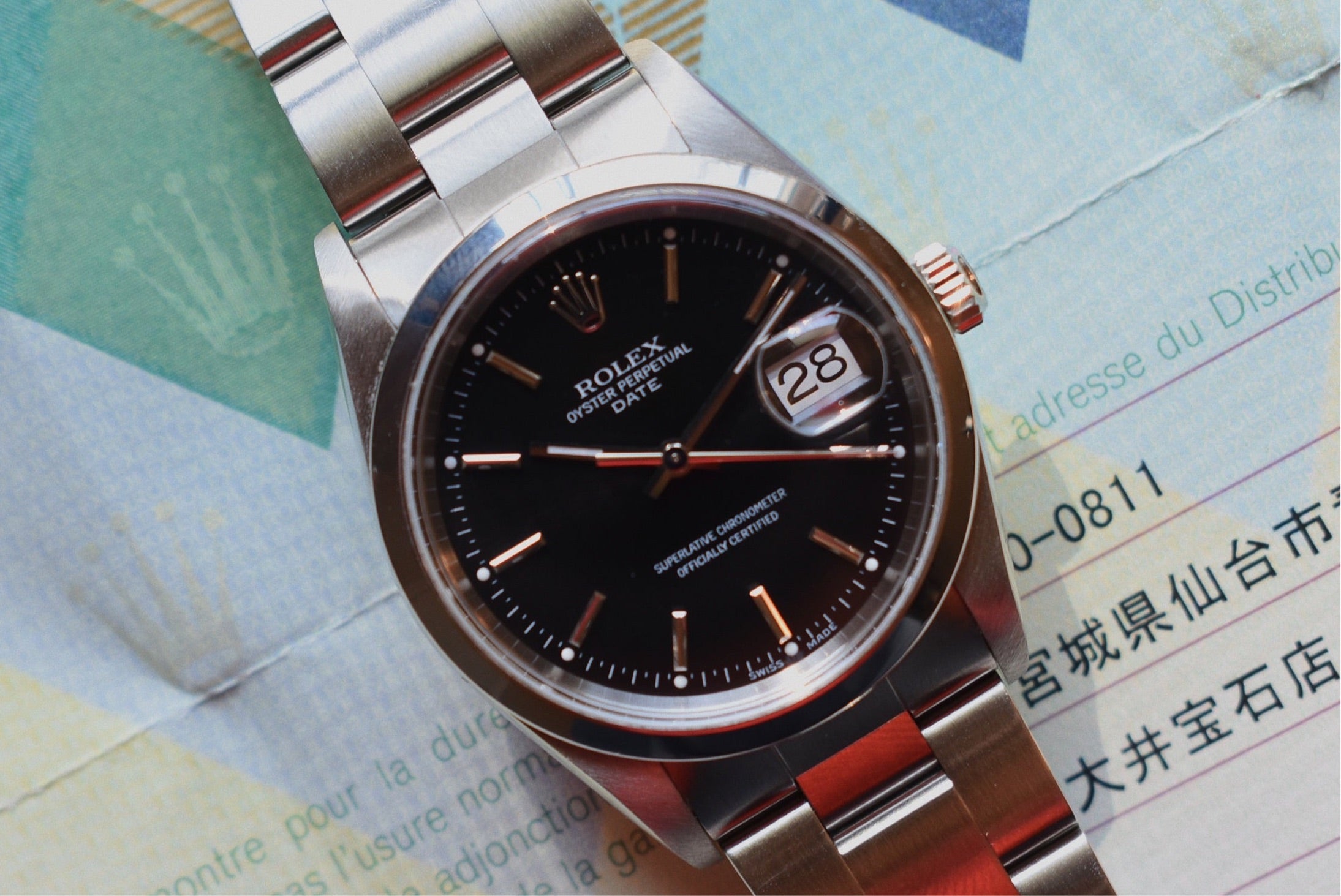 The new Oyster Perpetuals are awesome but if you’re looking for a smaller model this is the one for you. A clean black dial with date makes this a great everyday piece and this example comes with original paperwork.
