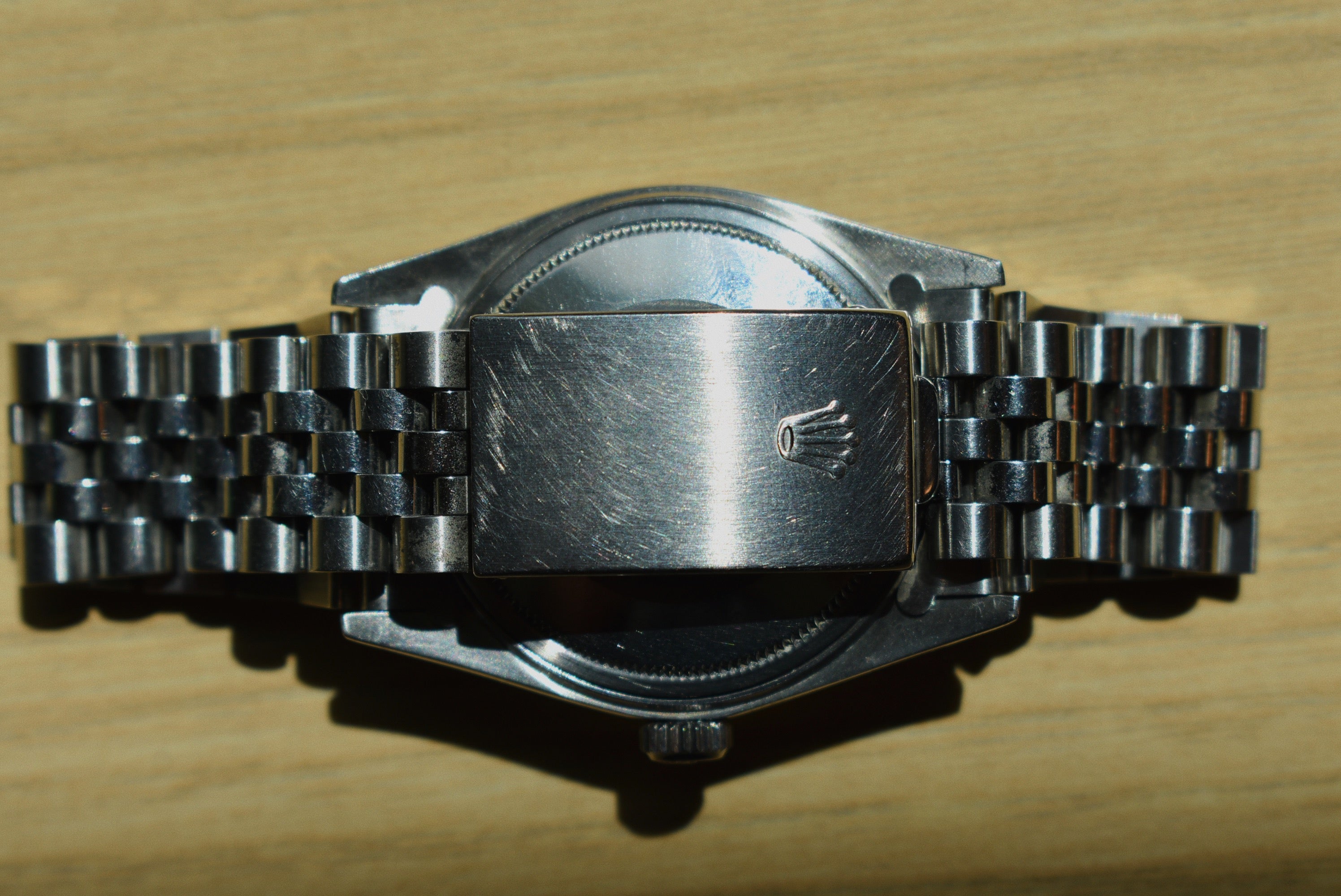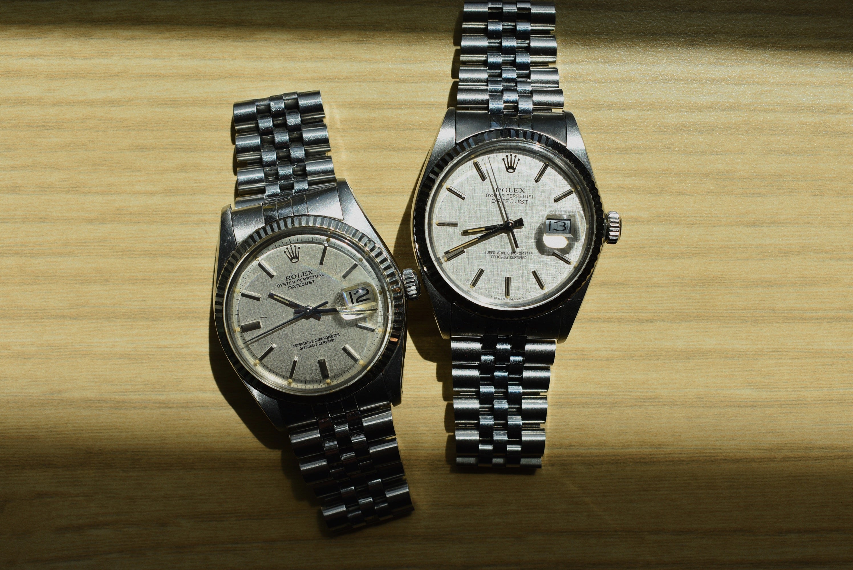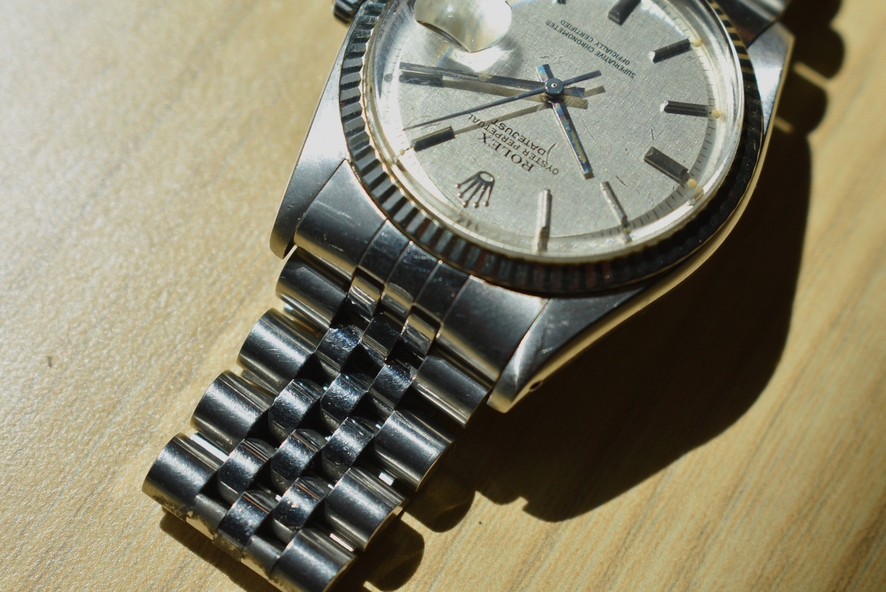 The beloved pie pan dial on the four digit Datejust will always be appreciated for its vintage charm. This feature a perfect linen dial on top of the pie pan style which makes it so much better. A fun fact, the pie pan linen dials catch the light so much better then the flat five digit Datejusts