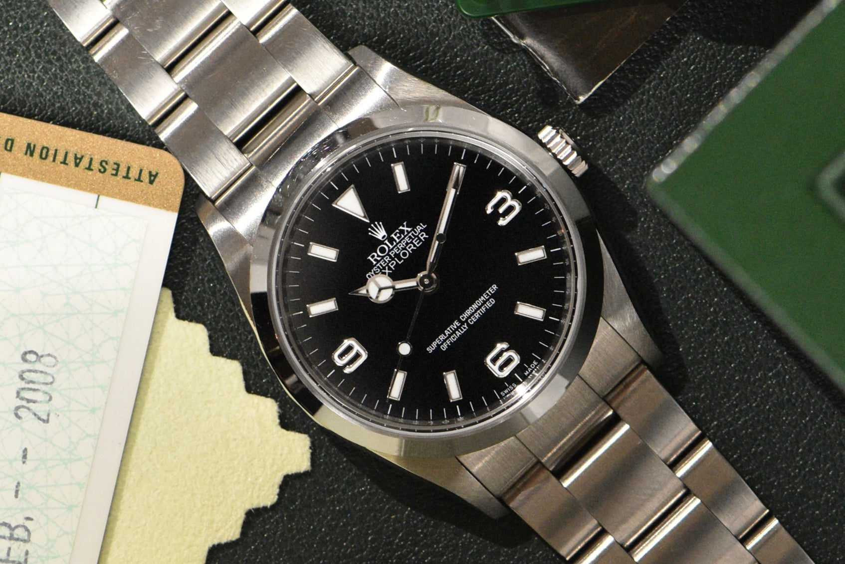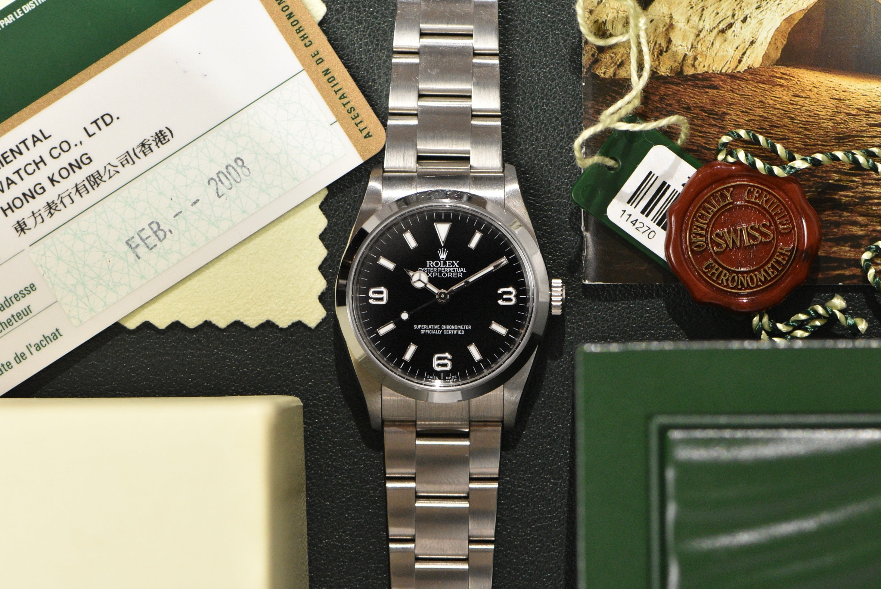 2007 Rolex Explorer 1 114270 Complete Set With Engraved Rehaut