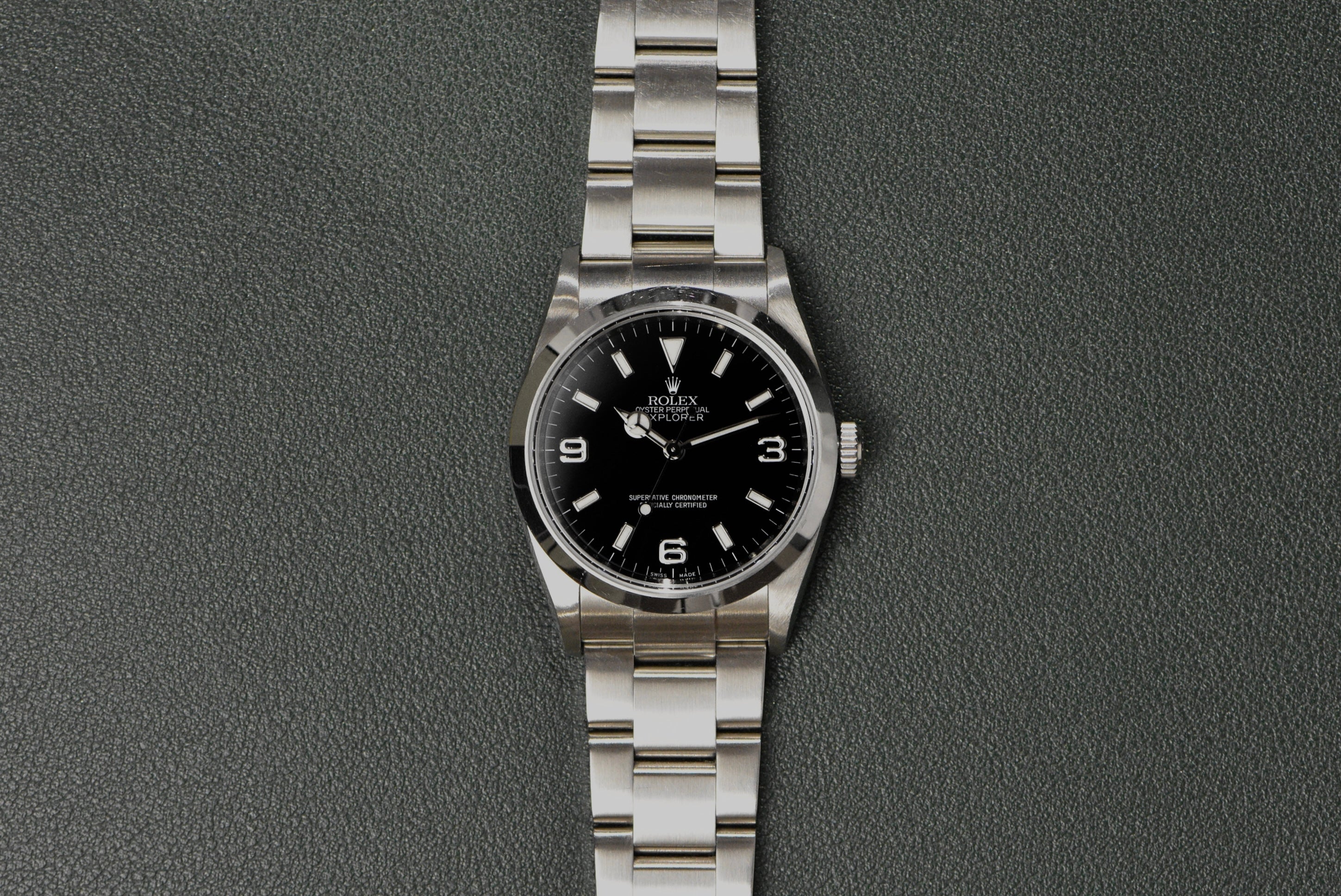 The Rolex Explorer is simple, but something about it feels so right when it’s on the wrist. Maybe its simplicity is so perfect that it feels just right. Whatever it is, all we know is we love it! A high gloss black dial that is easy to read, a smooth bezel, and its comfortable oyster bracelet make the Explorer 1 such an easy pick for a daily wearer. What we have here is a complete set 114270 with an engraved rehaut and dated card which is rare.