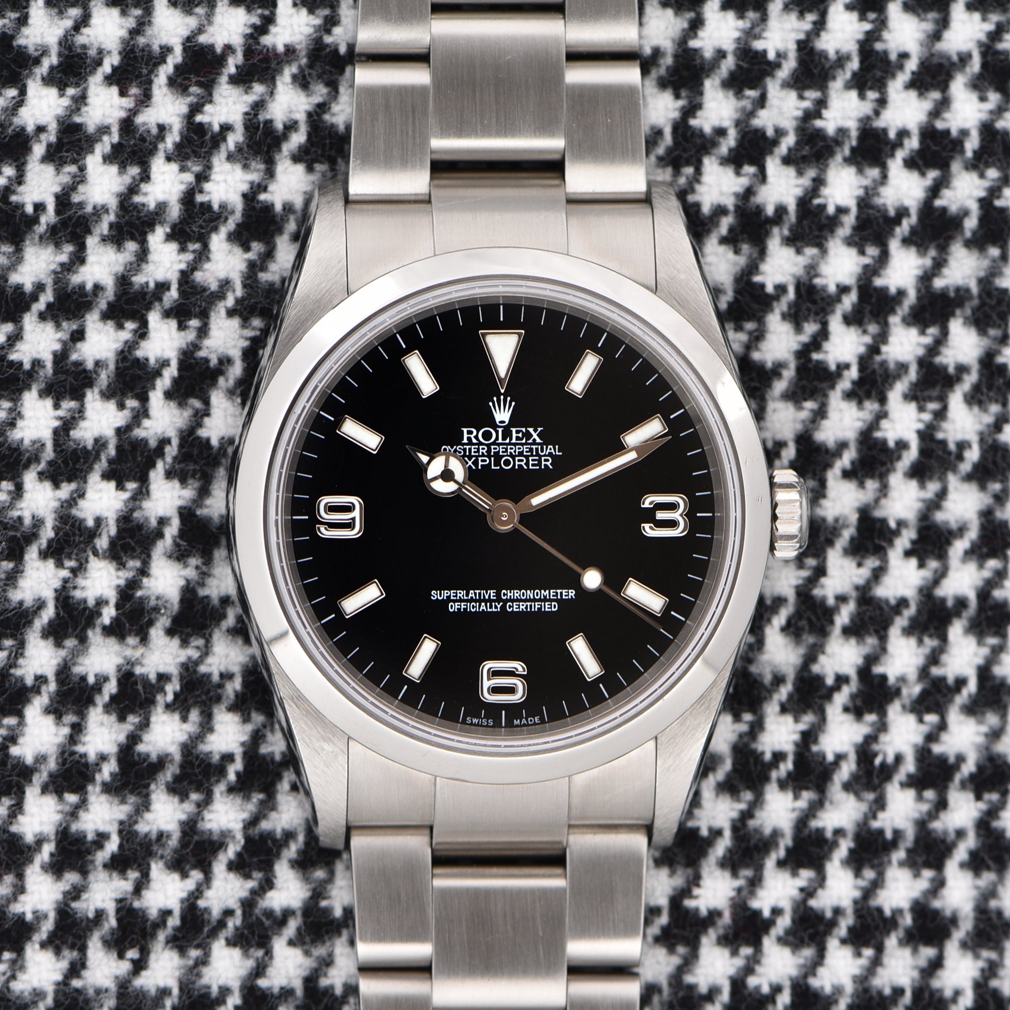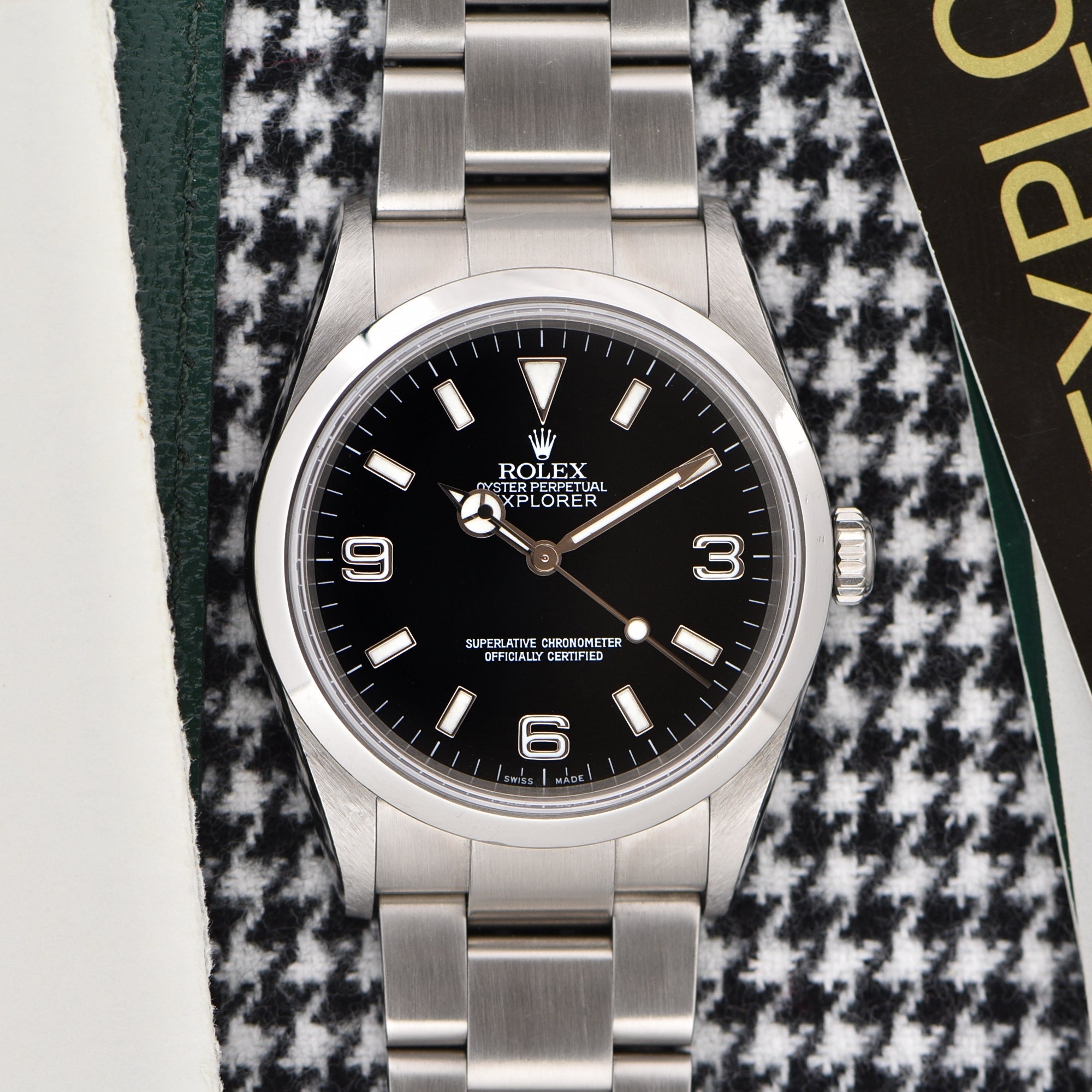 Towards the end of the 1980s, Rolex introduced the next generation Explorer, the reference 14720. This watch replaced acrylic crystal with scratch-resistant sapphire glass, giving it a more modern feel on the wrist. The dial replaced painted numerals with white gold numbers filled with luminous material, initially tritium, and then luminova for lume. The reference 114720 was introduced in 2000, powered by the 3000 series movement.