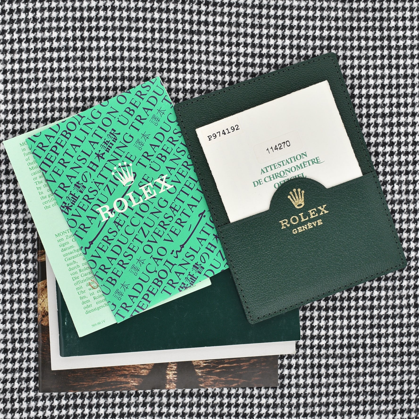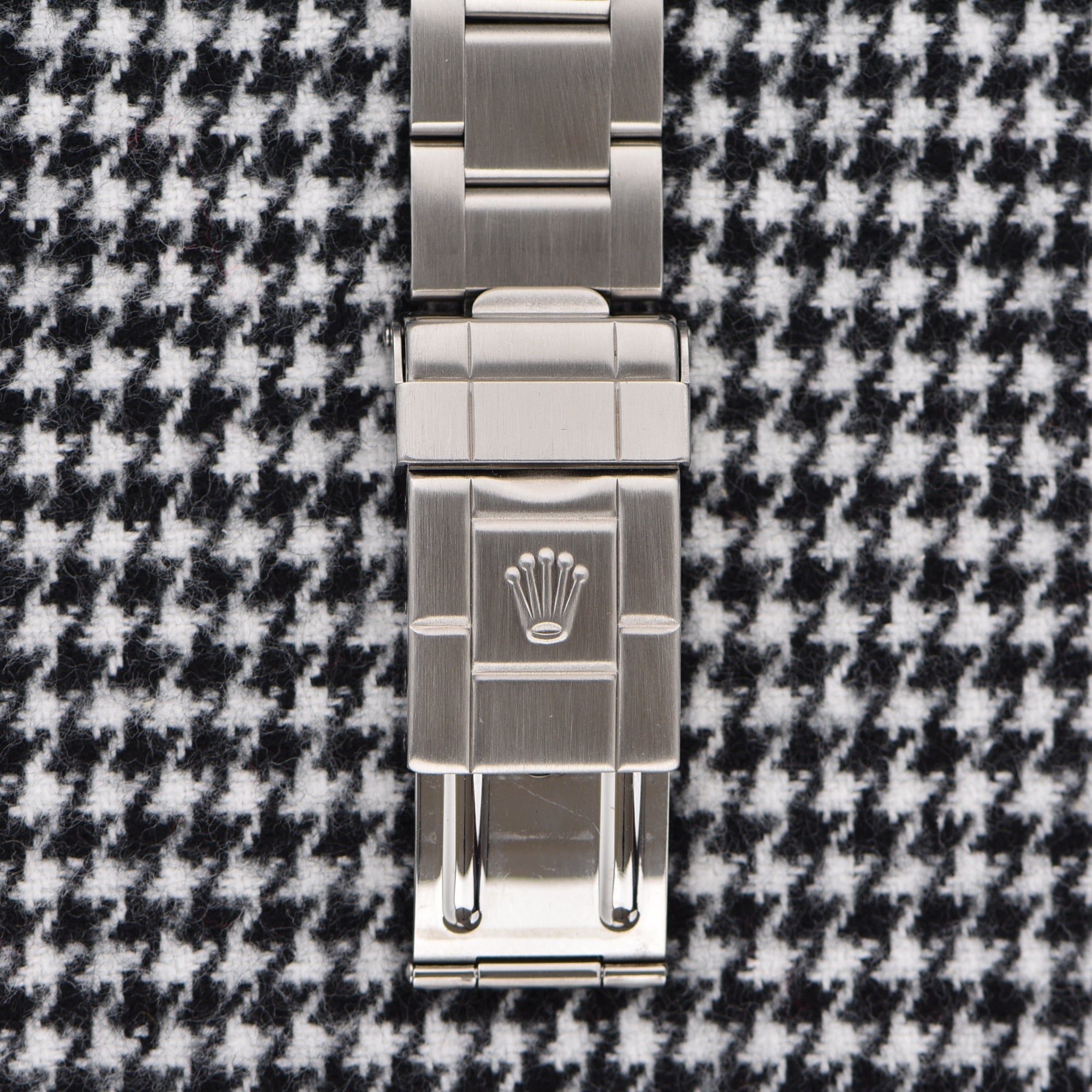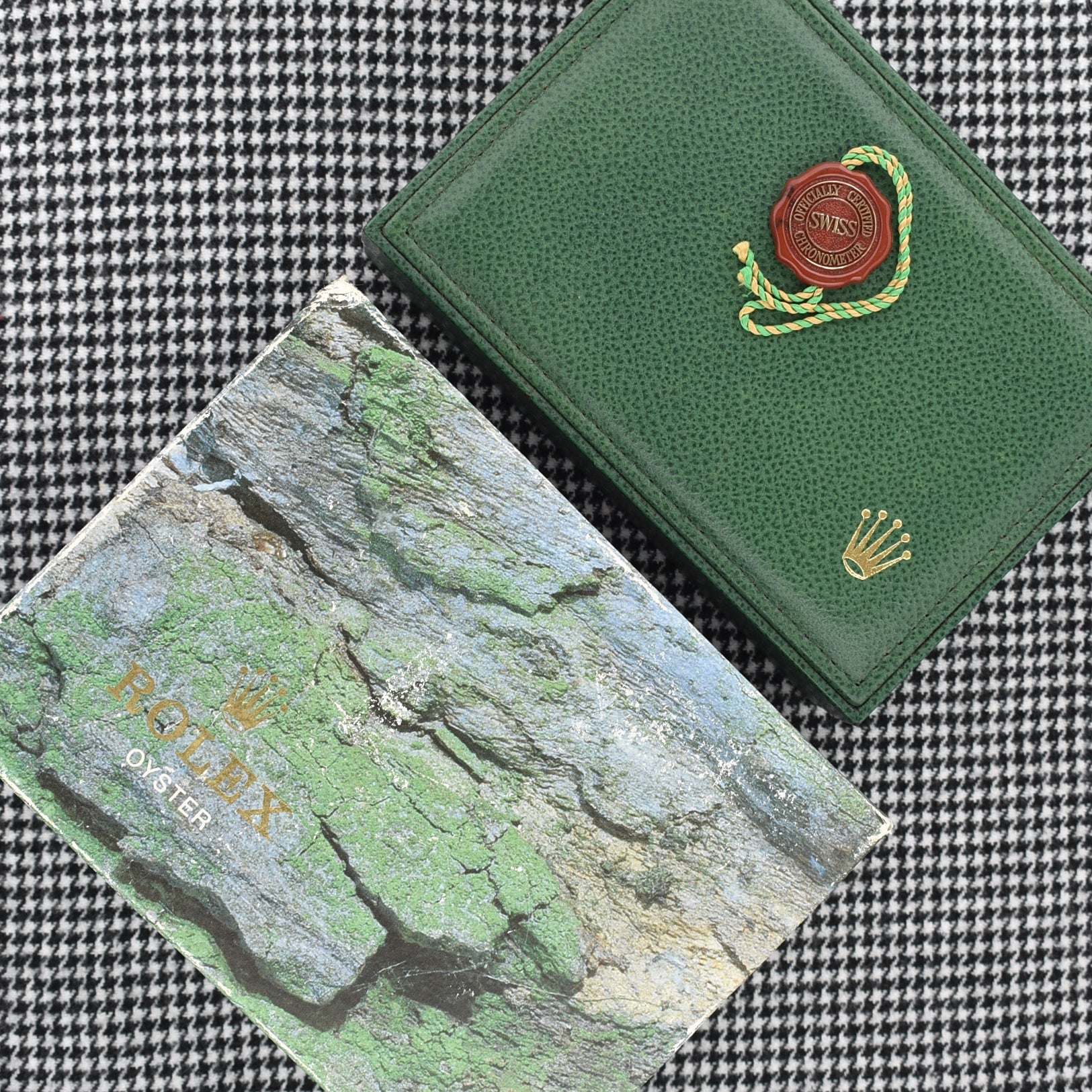 The watch has signs of a light polish but still has nice and even lugs. The bracelet is large with very little wear. The watch has its original logo stamped crystal. The watch comes with all the booklets, papers and inner/outer box including the red hangtag.