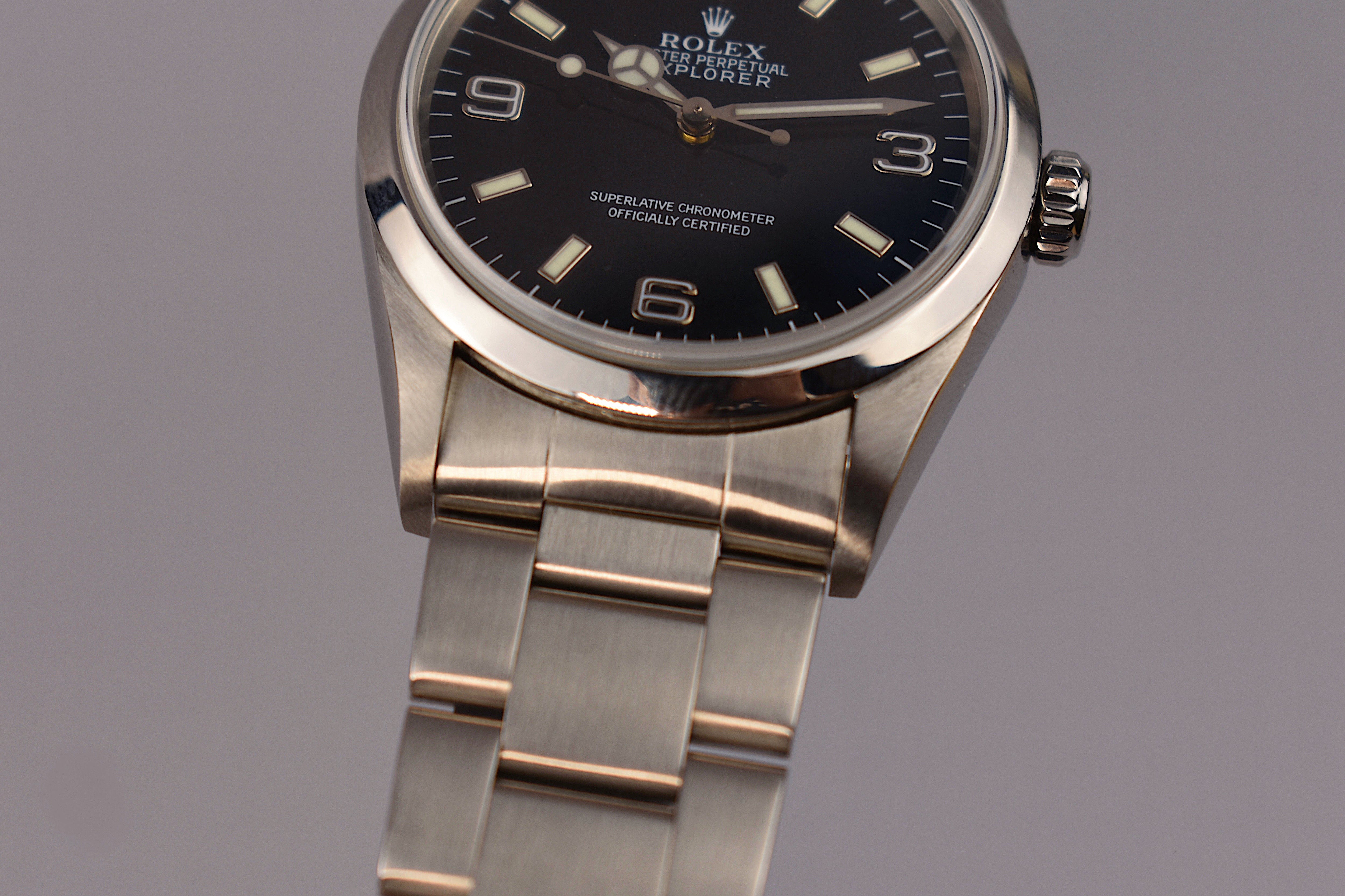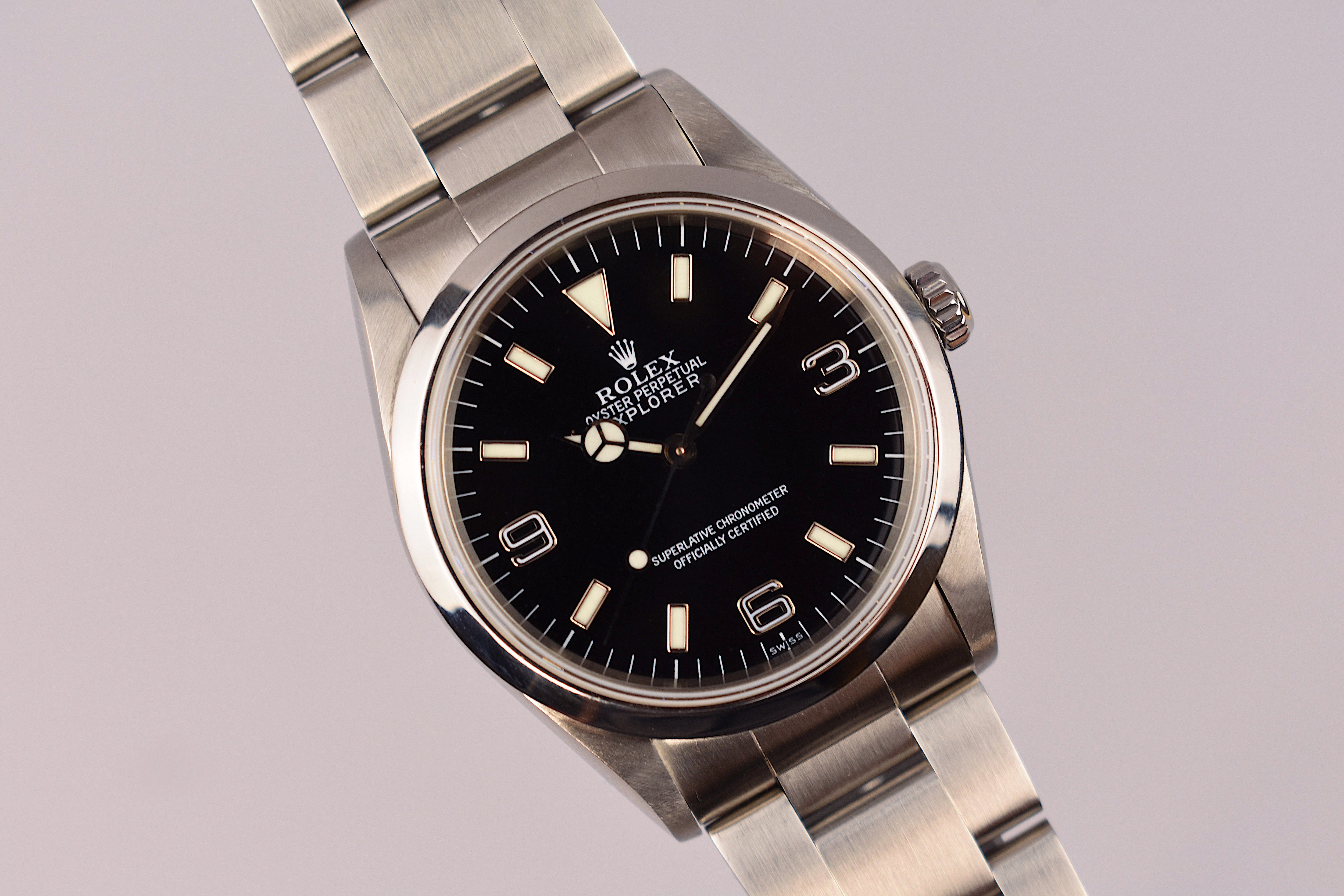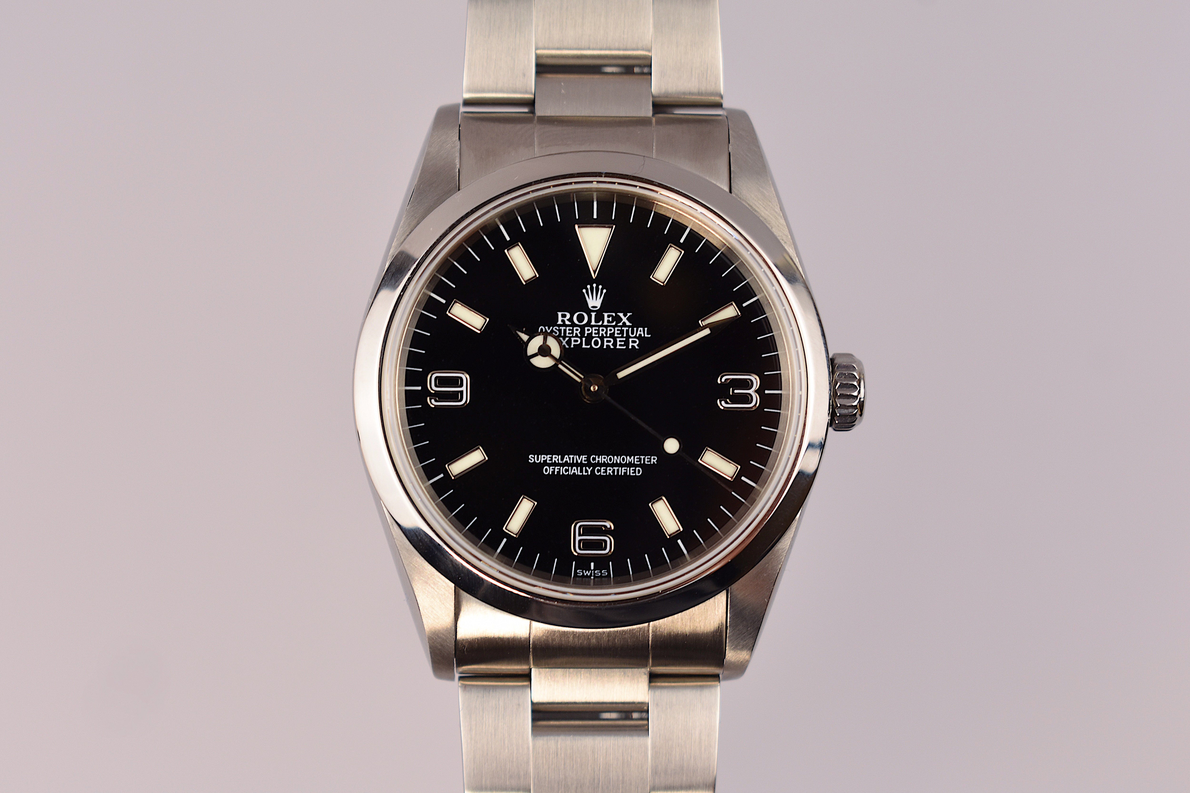 The Rolex Explorer is simple, but something about it feels so right when it’s on the wrist. Maybe it’s simplicity is so perfect that it feels just right. Whatever it is, all we know is we love it! This 114270 features a collectible “Swiss-only” dial.