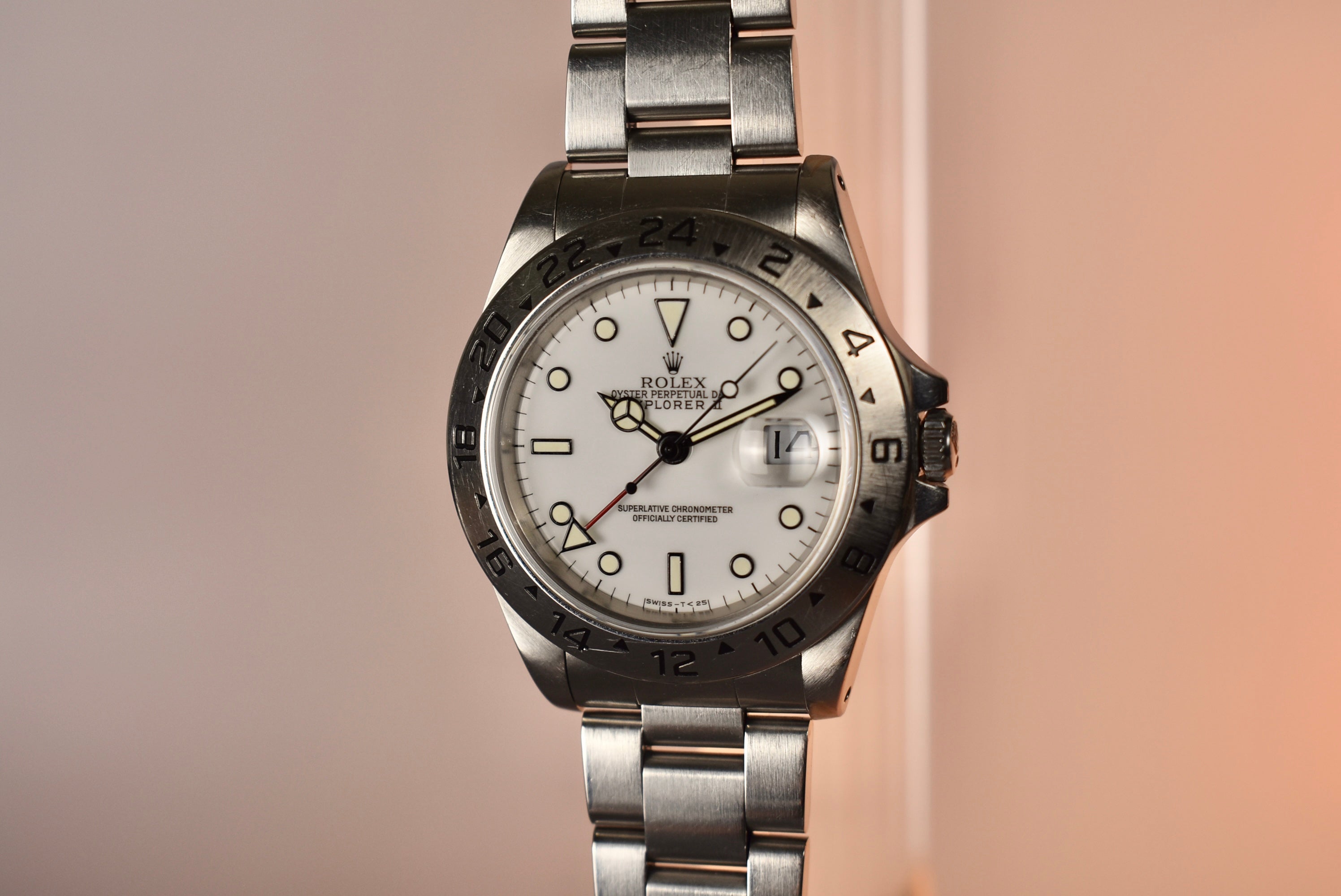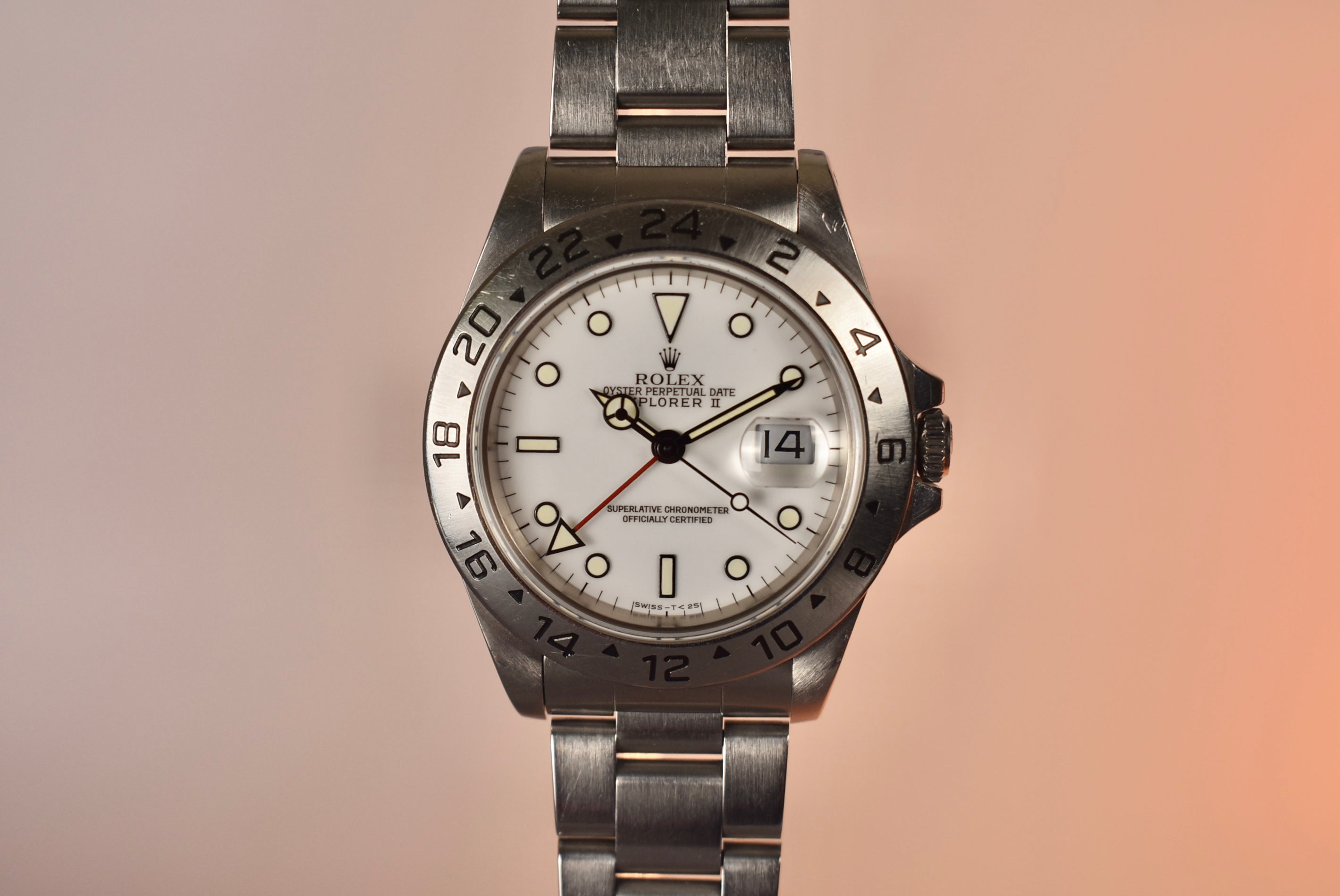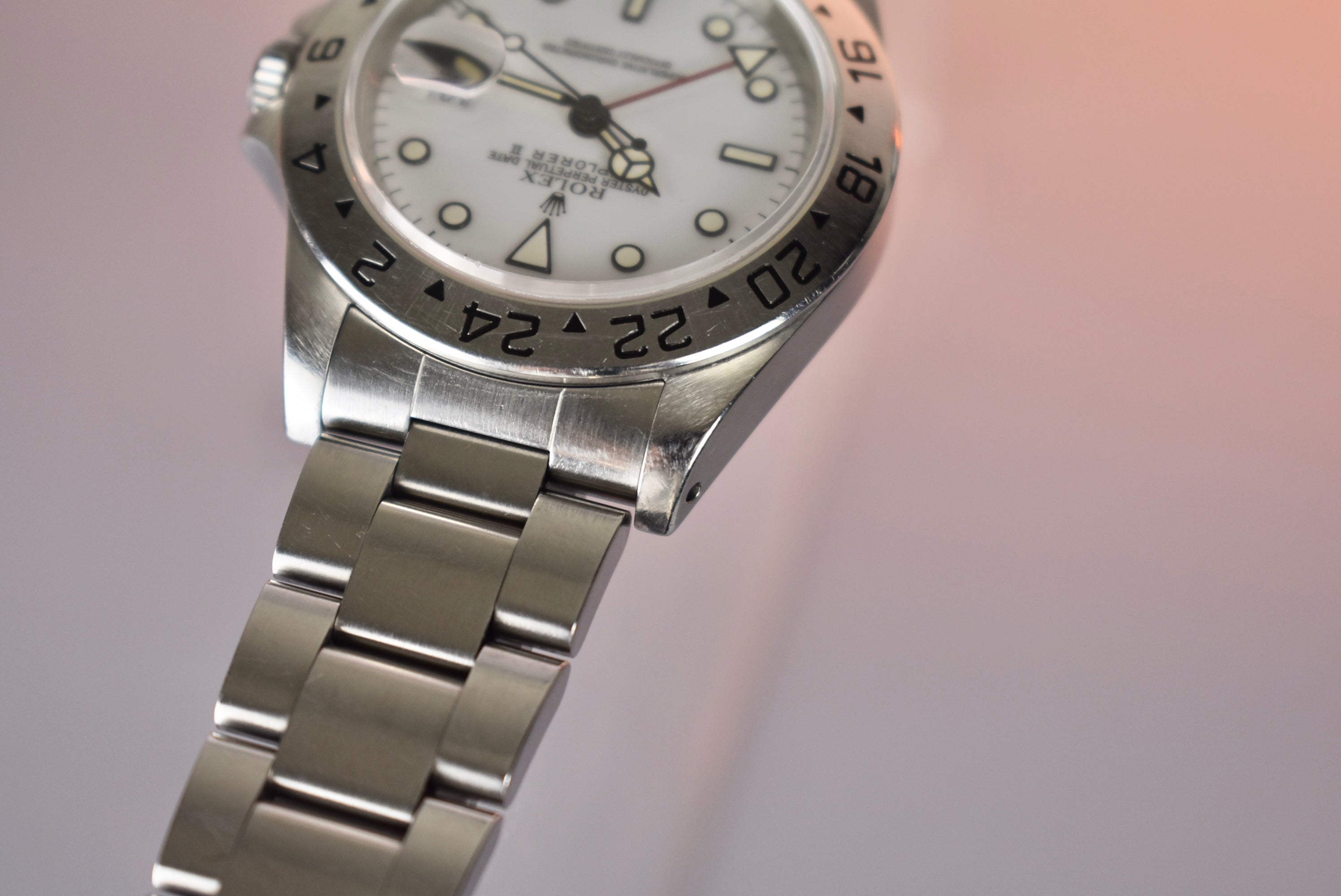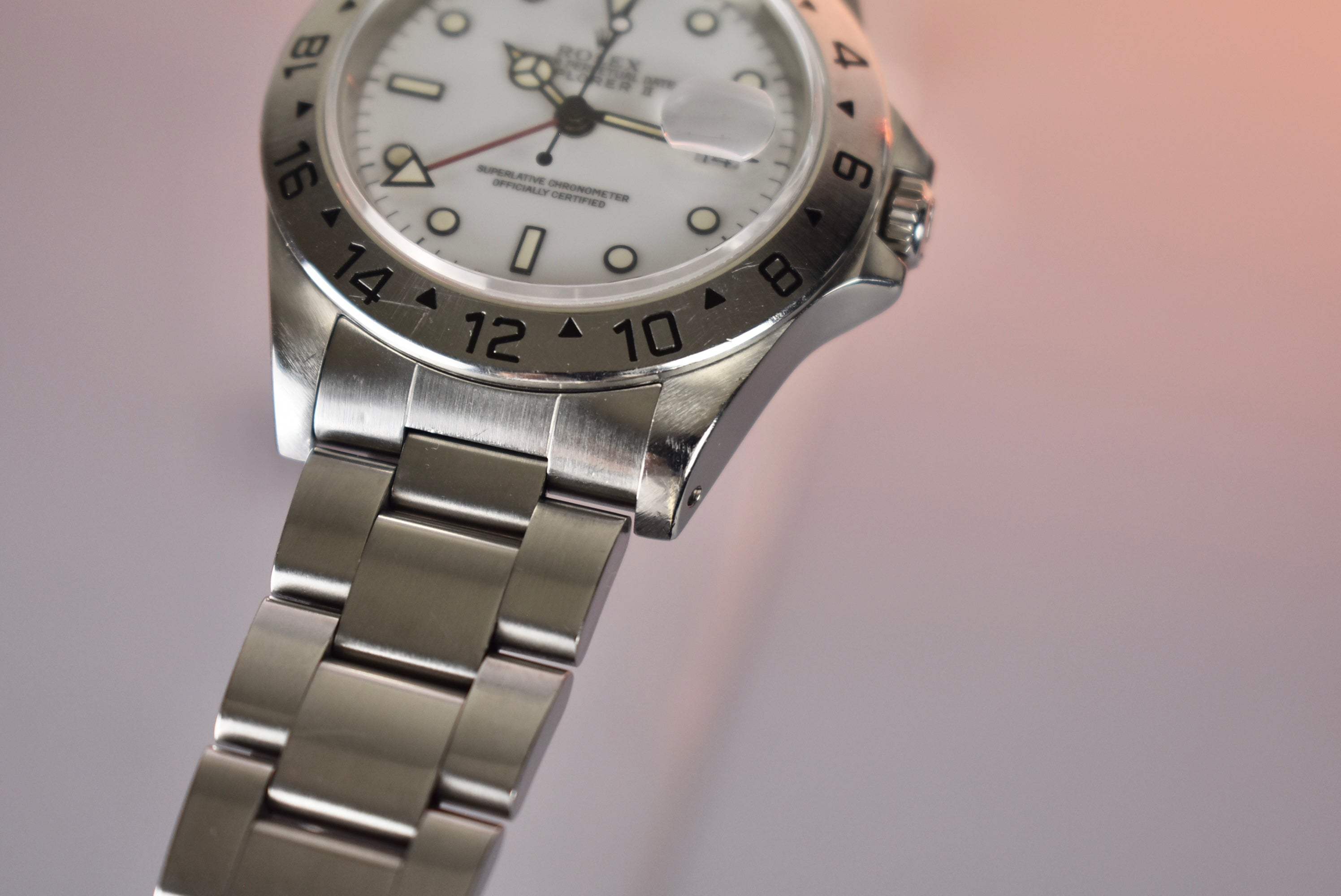 A historic Rolex sport model with a GMT function that can be had for under $10k still. This is one of the best “bang for your buck” Rolex’s on the market at the moment. A sleek white dial with a red GMT hand and a perfect case size makes this watch such an easy wearer. This specific example comes with a tritium dial which has lume that had started to gain a light custard color.