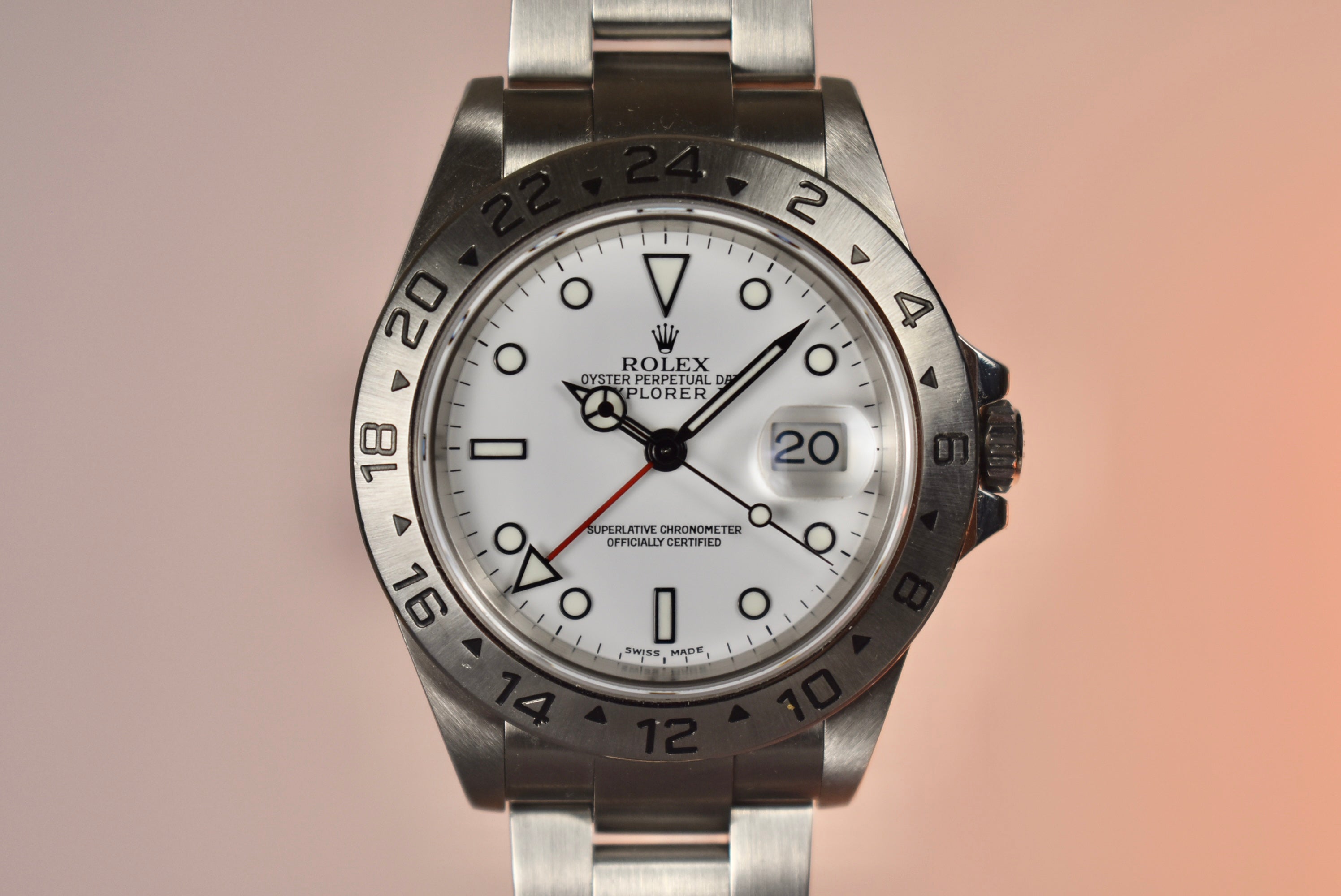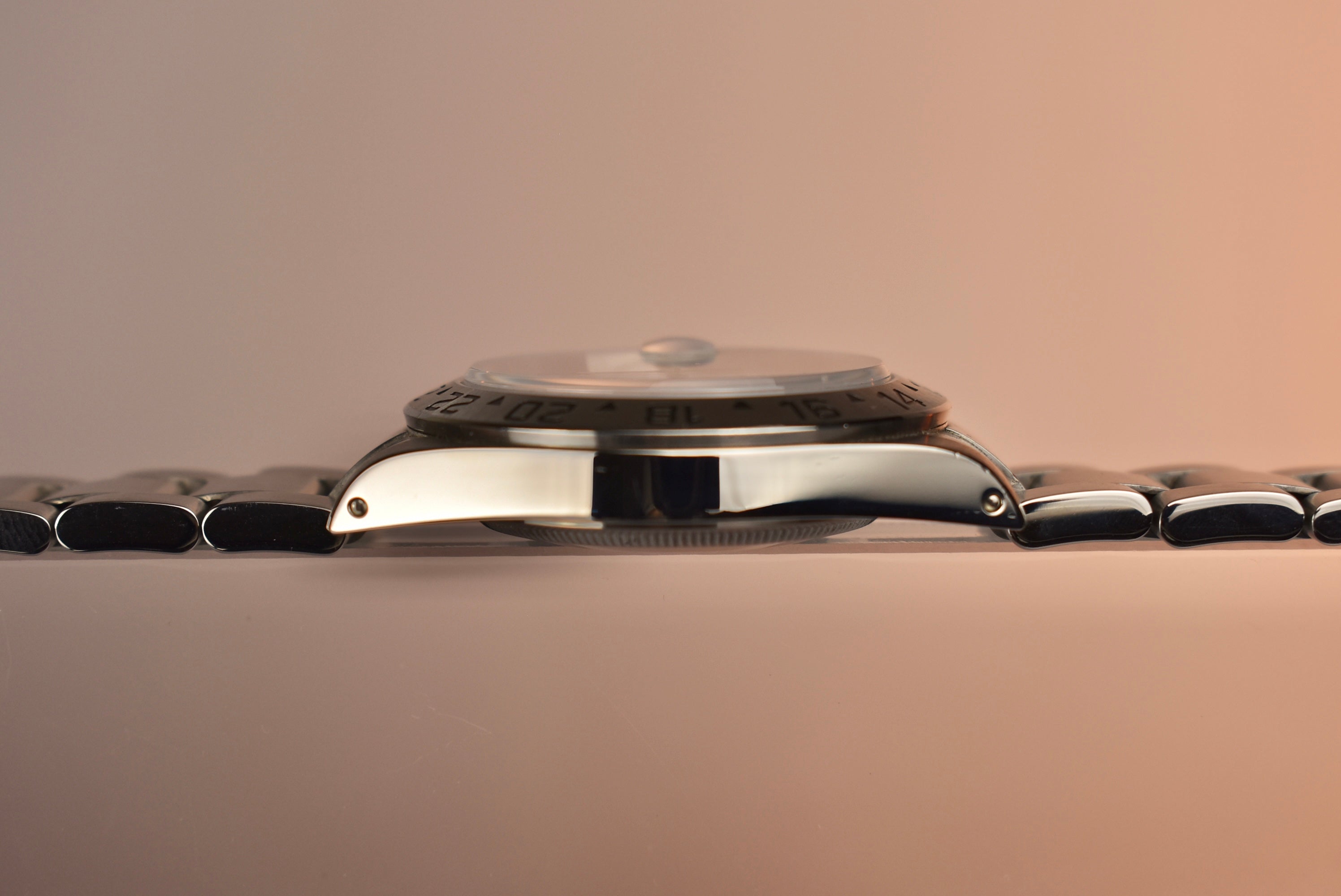 A historic Rolex sport model with a GMT function that can be had for under $10k still. This is one of the best “bang for your buck” Rolex’s on the market at the moment. A sleek white dial with a red GMT hand and a perfect case size makes this watch such an easy wearer. This specific example comes unpolished with a super sharp case, it also comes with its book, booklets and Rolex Service papers.